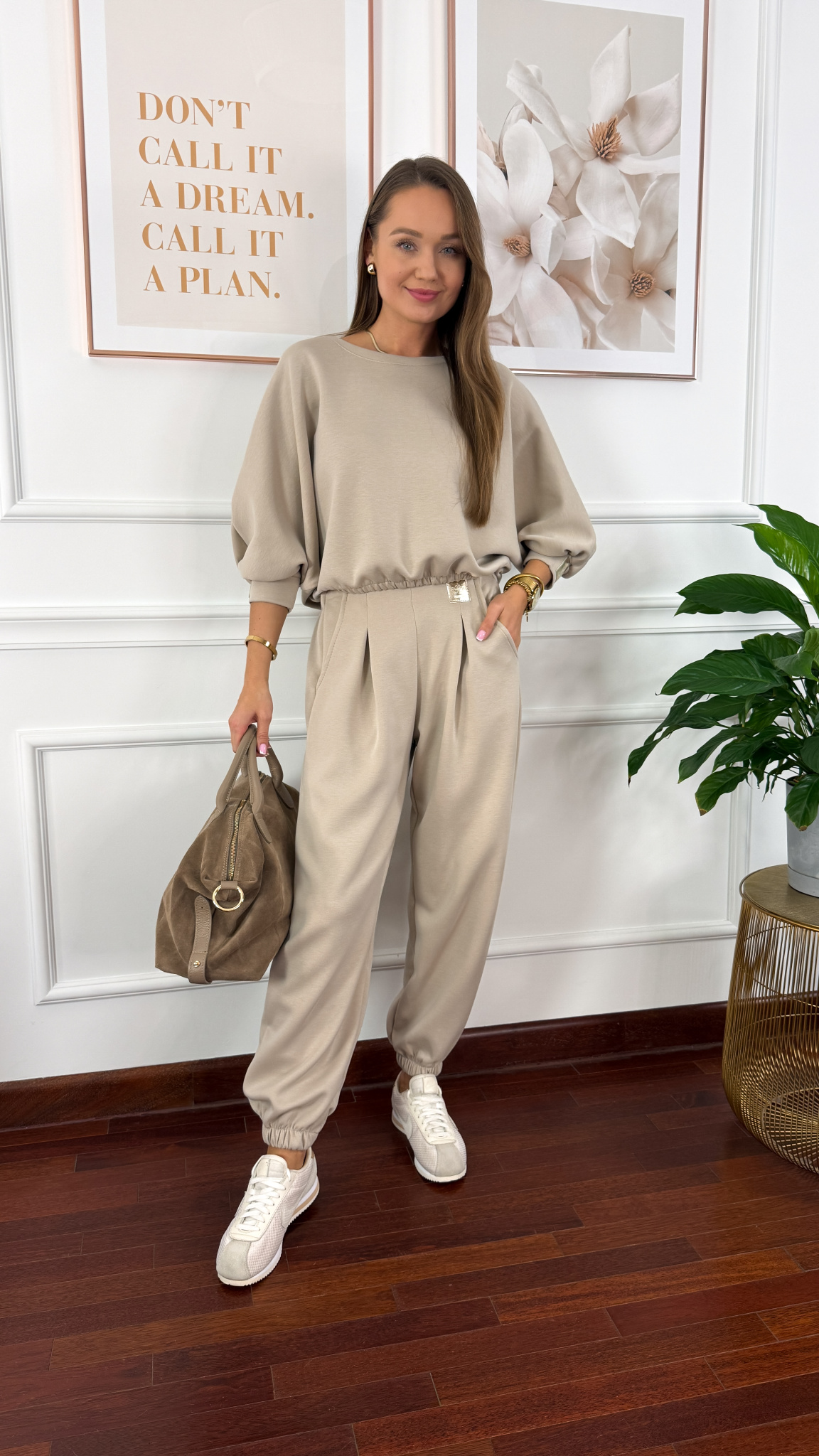 Nowy Obecnie brak na stanie One size Powiadom mnie o dostępności. Wiskozowy komplet dresowy Paula beżowy 199,99 zł