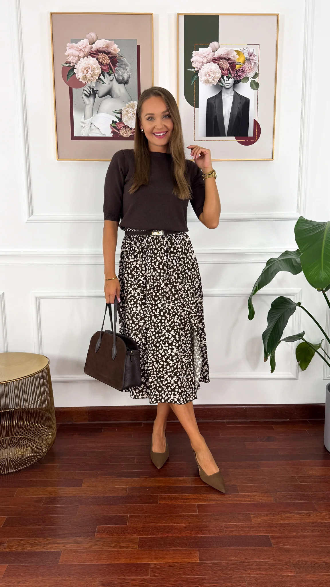 Wiskozowa spódnica Dani czekoladowa w liście