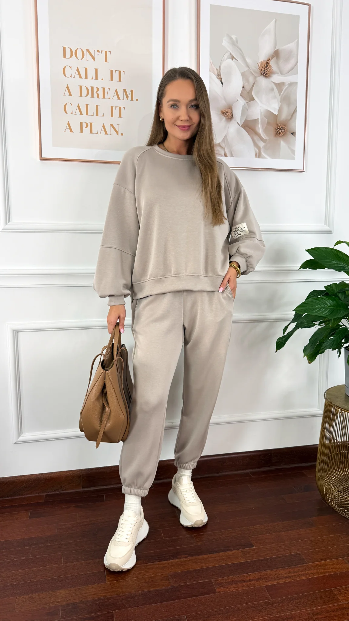 Wiskozowy komplet dresowy Tilda beżowy