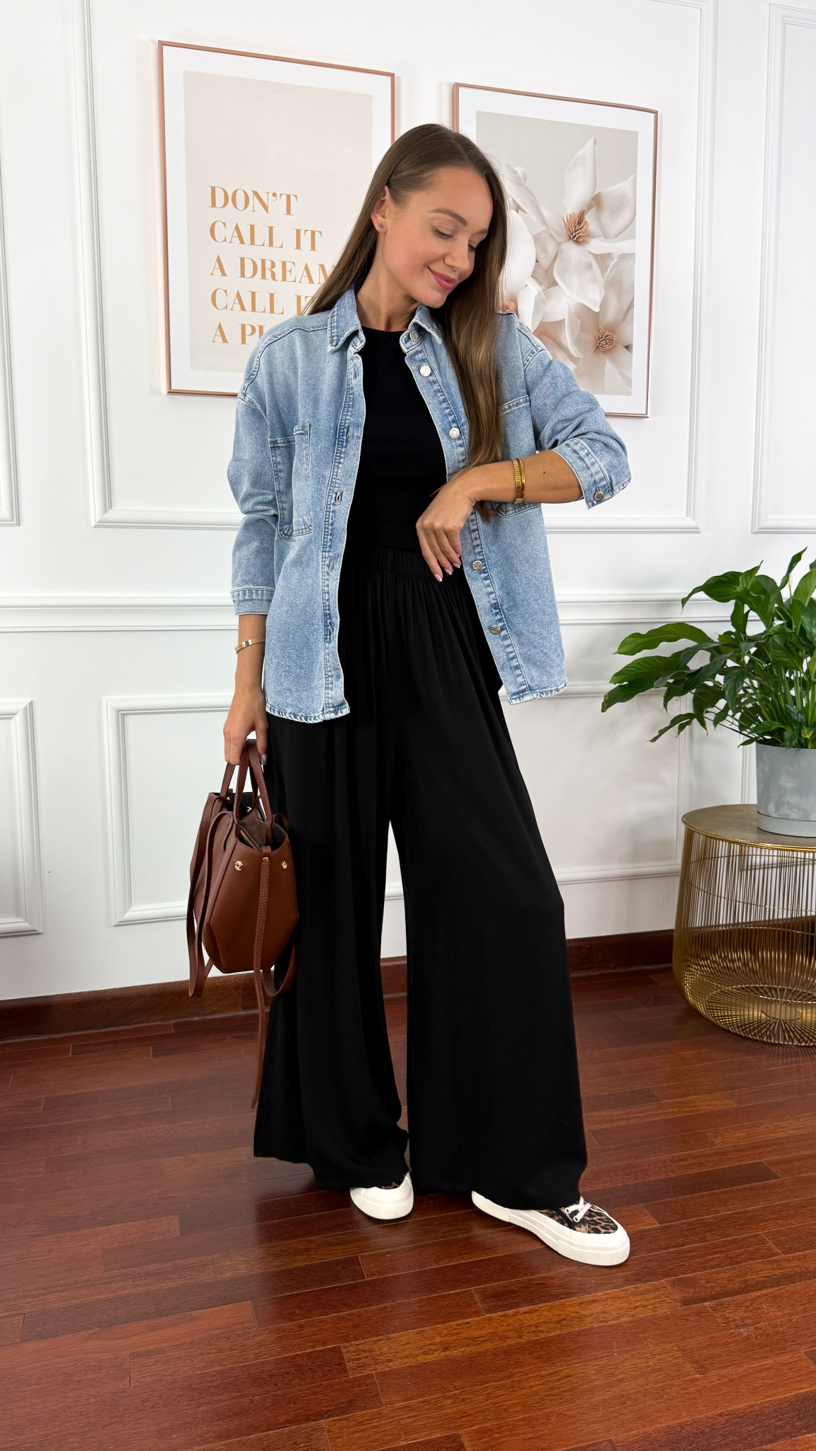 Obecnie brak na stanie One size Powiadom mnie o dostępności. Wiskozowe szerokie spodnie Loren czarne 109,99 zł