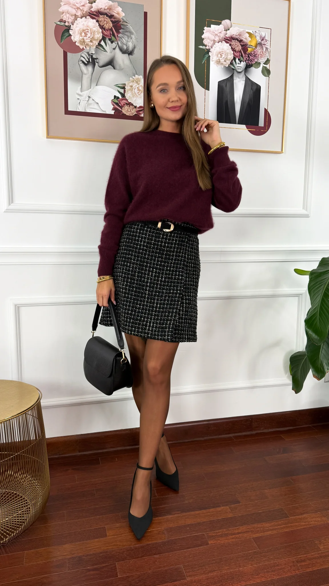 Obecnie brak na stanie One size Powiadom mnie o dostępności. Wiskozowa spódnica Petra burgundowa 149,99 zł