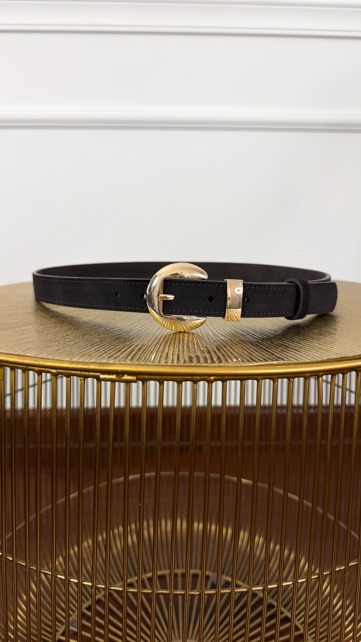 Obecnie brak na stanie 80 90 100 Powiadom mnie o dostępności. Pasek skórzany Stacy czarny-złoty 69,99 zł