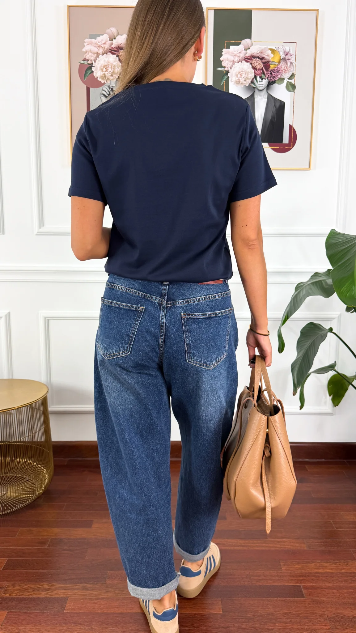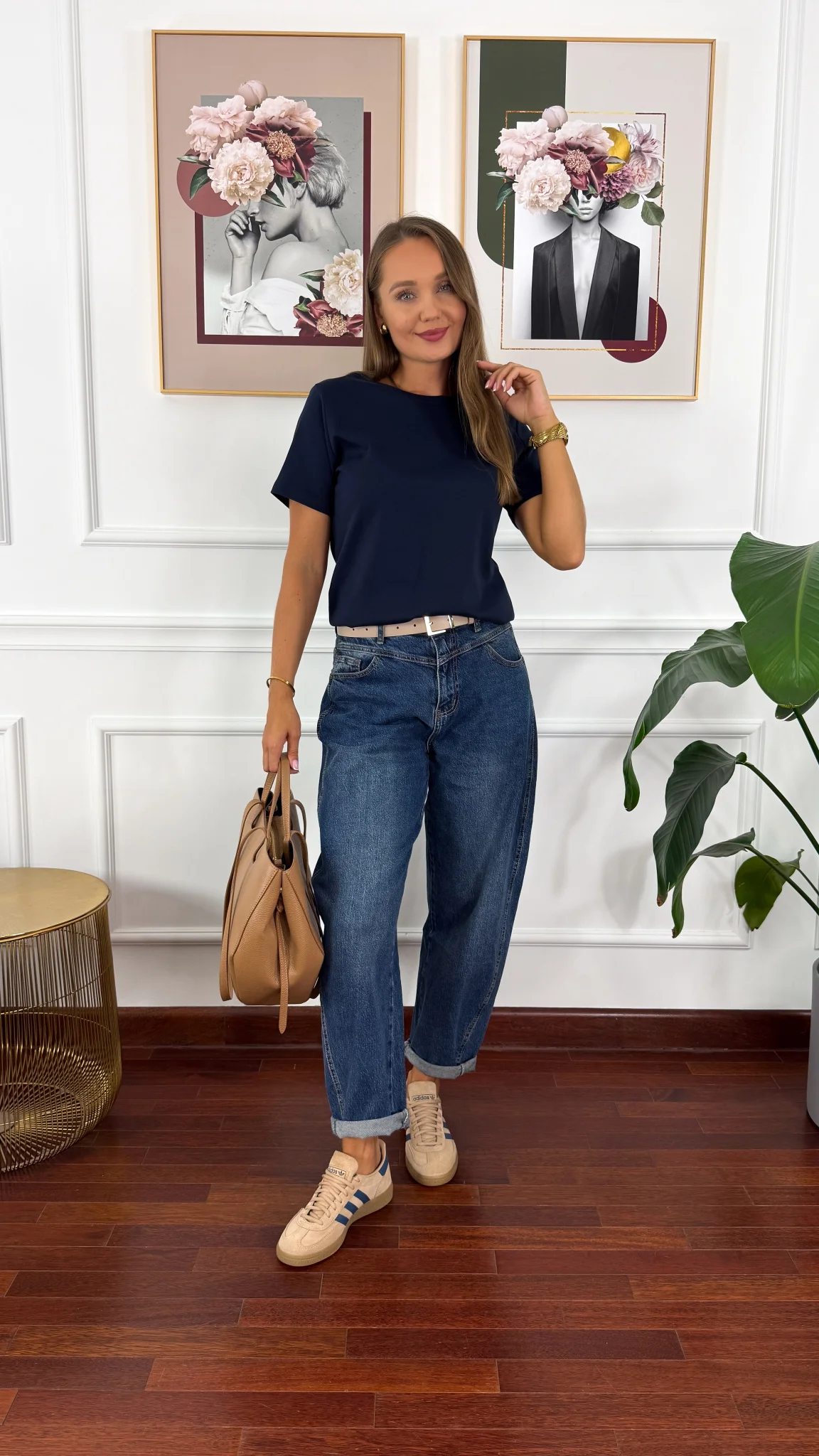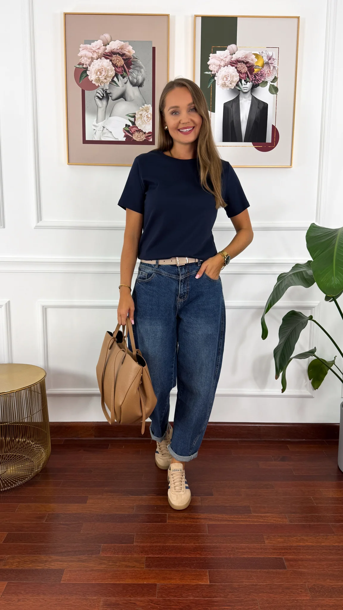 Model sprawdzi się na sylwetkę w rozmiarze od S do L. Basicowy t-shirt z okrągłym dekoltem.