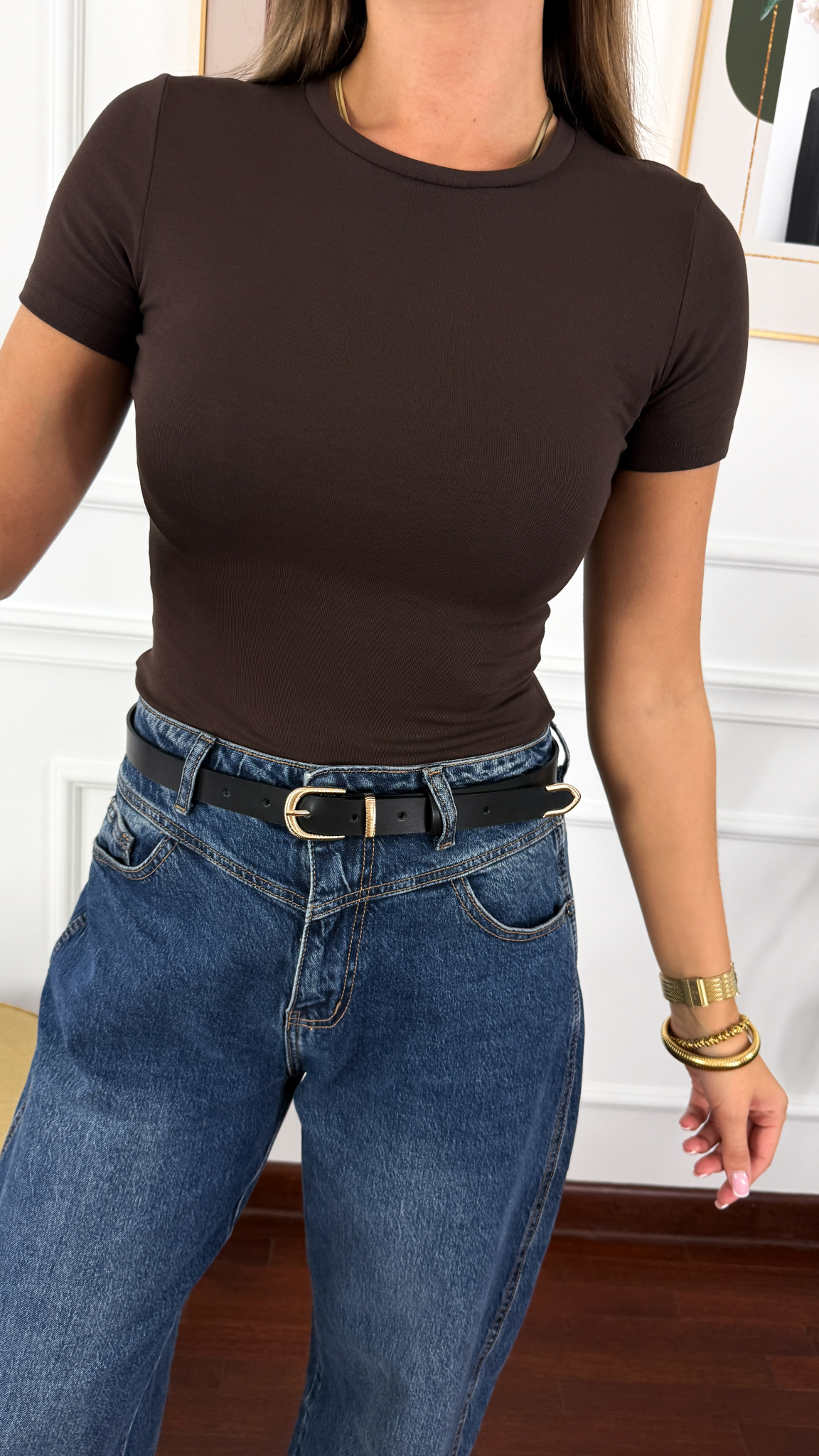 Bluzka sprawdzi się na sylwetkę od S do L. Bawełniana basicowa bluzka z krótkim rękawem z okrągłym dekoldem.