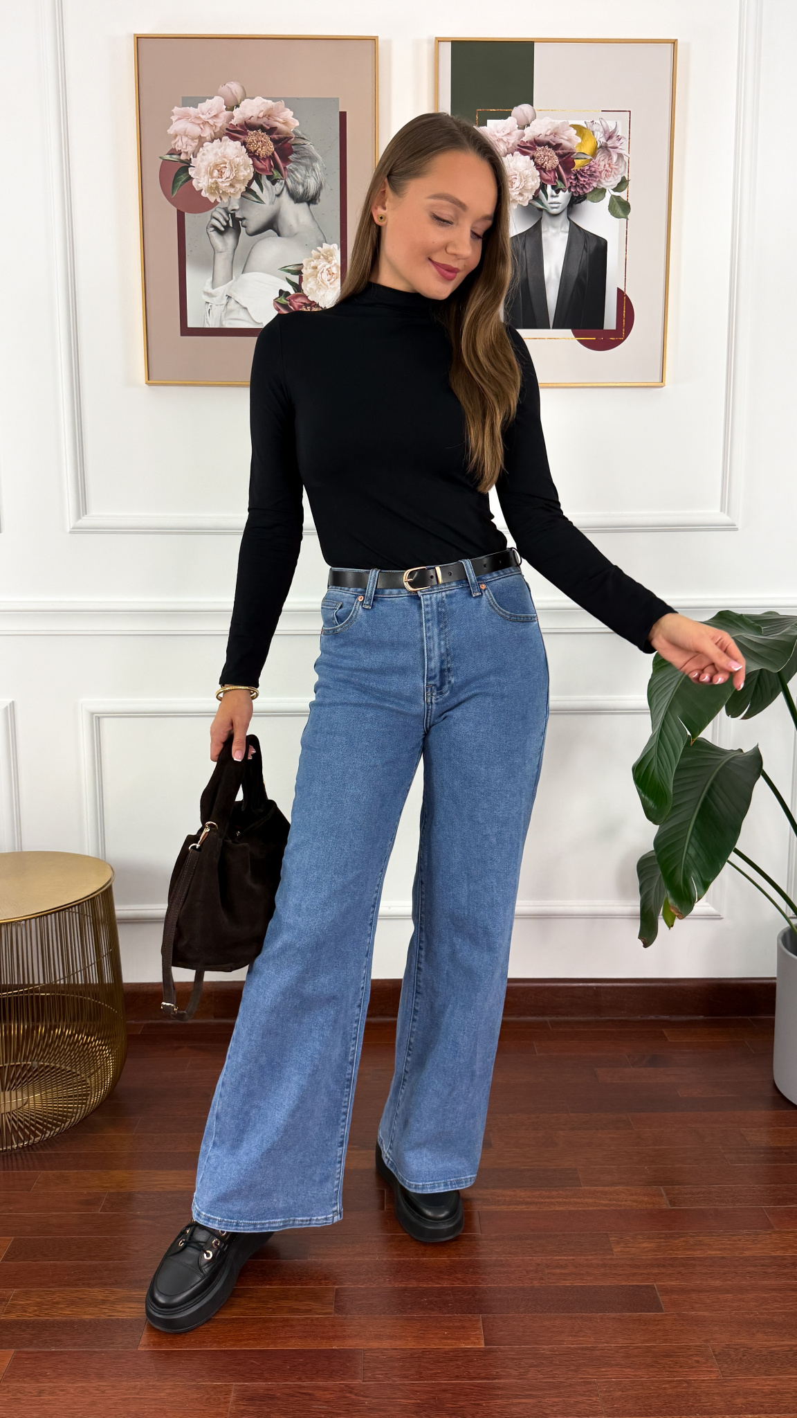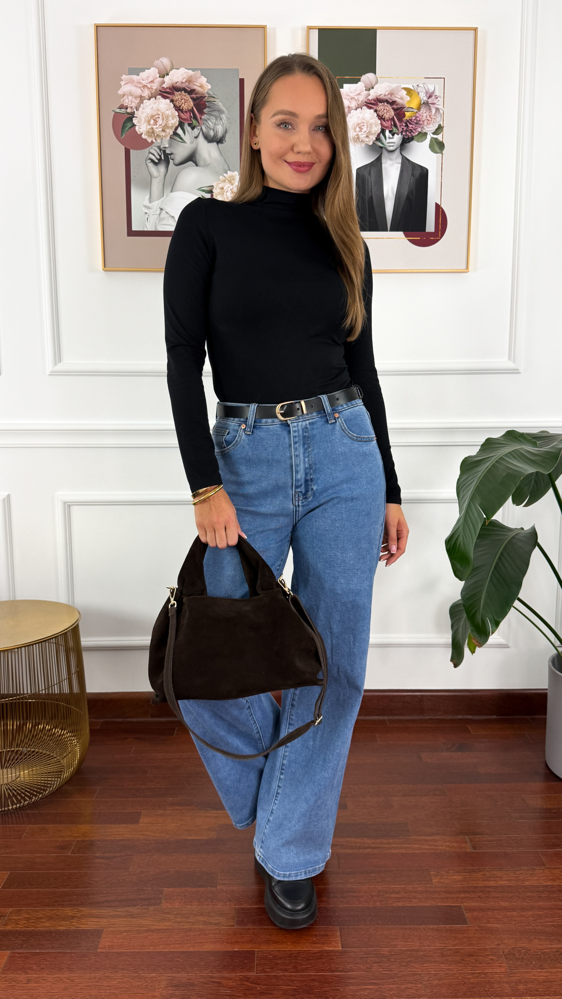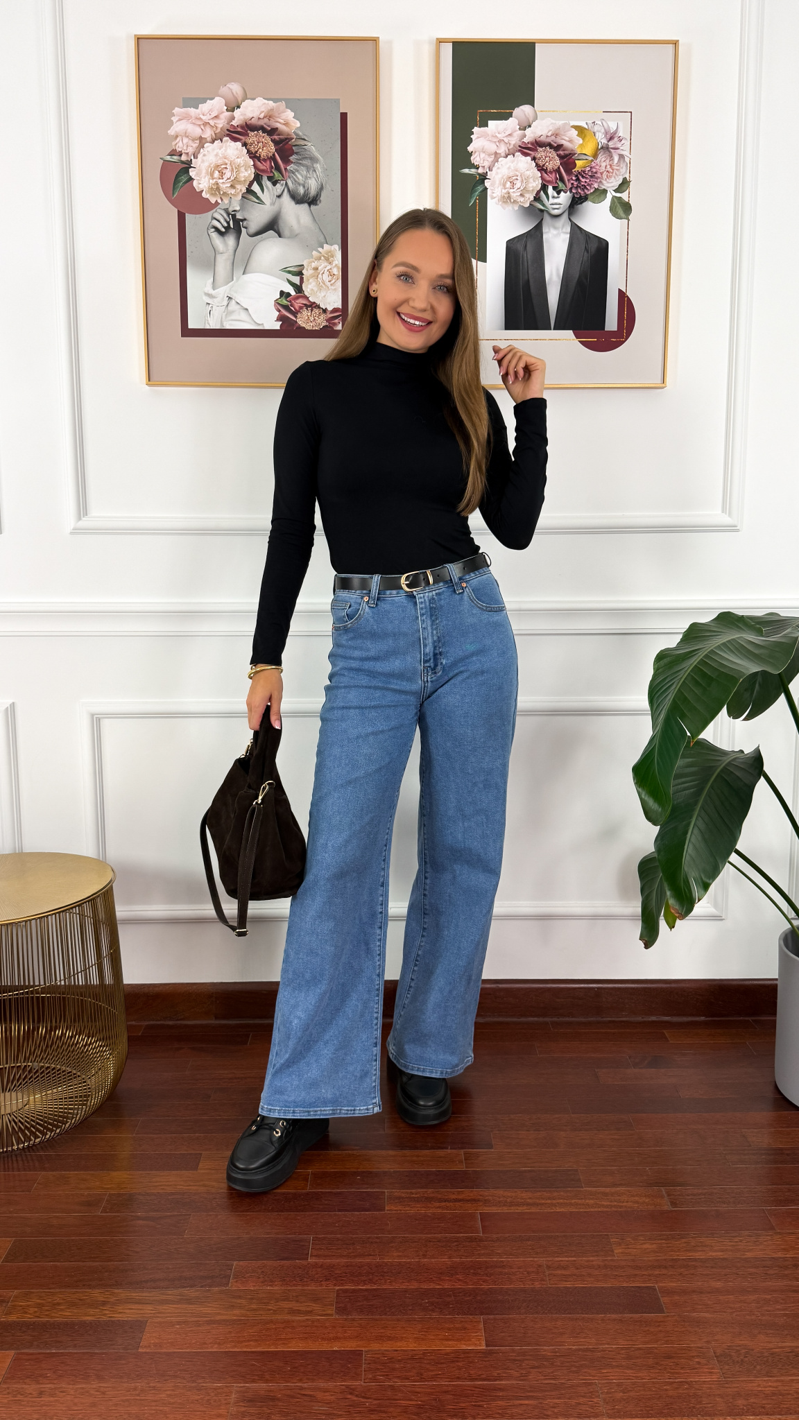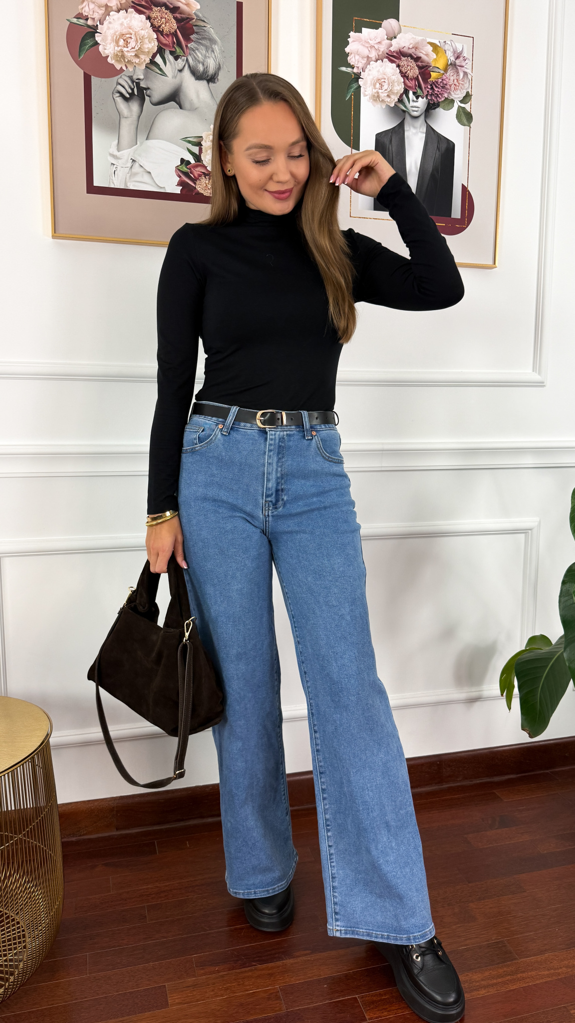 Bluzka sprawdzi się na sylwetkę od S/M do L/XL. Wiskozowa basicowa bluzka z długim rękawem. Posiada półgolf oraz jest wykonana z przyjemnego lejącego się materiału.