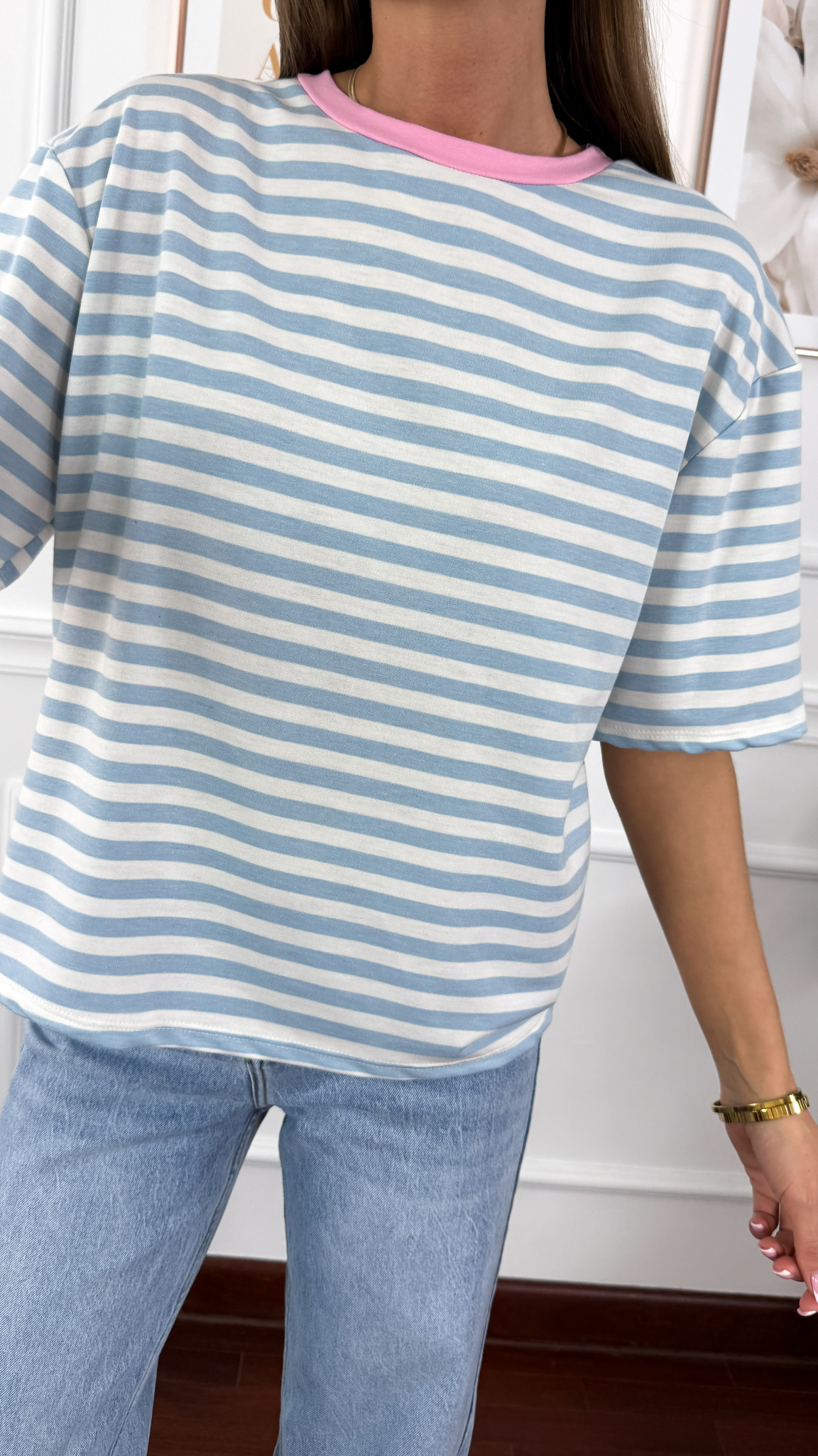 Wiskozowy T-shirt Dana paski błekitny
