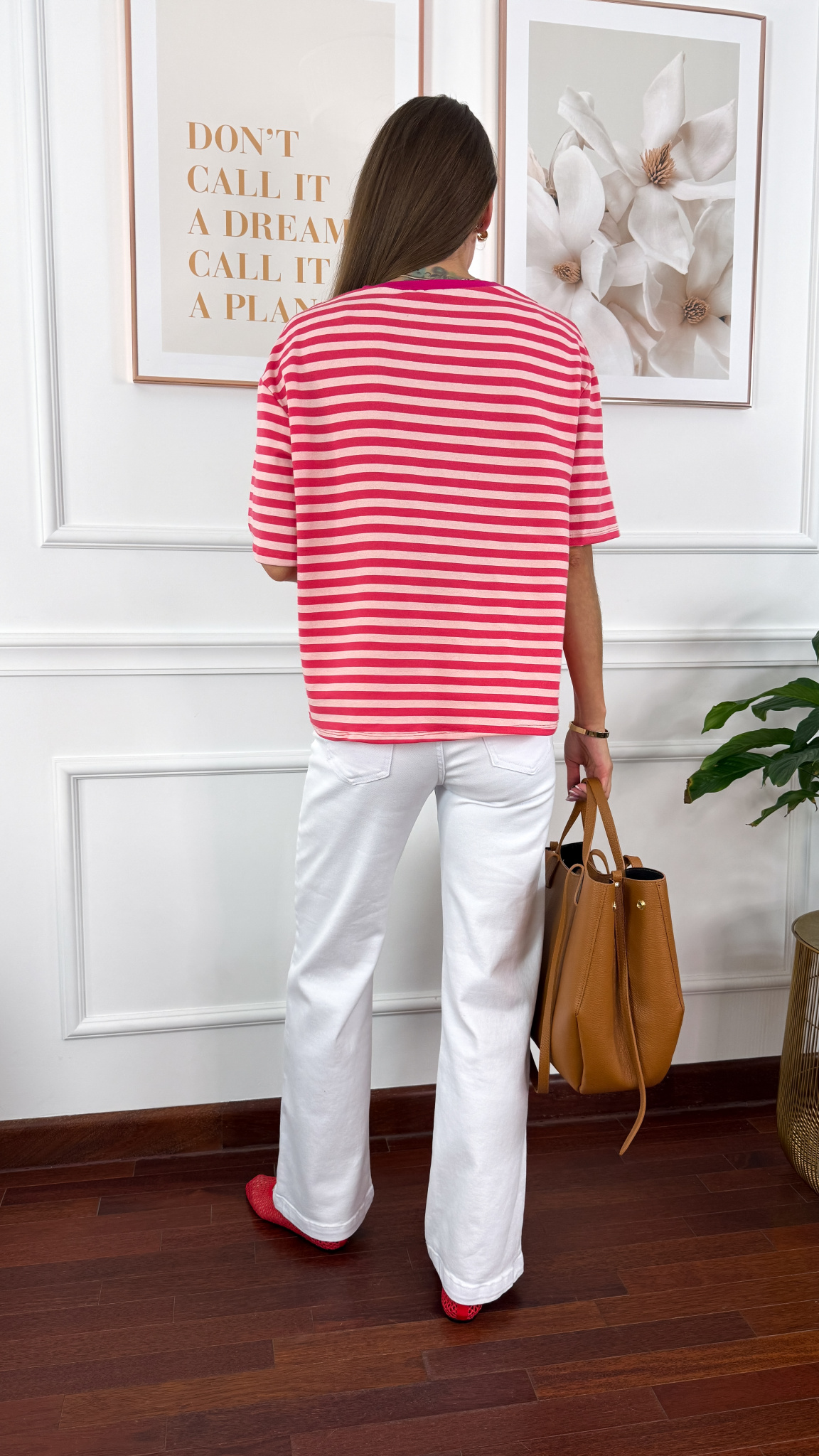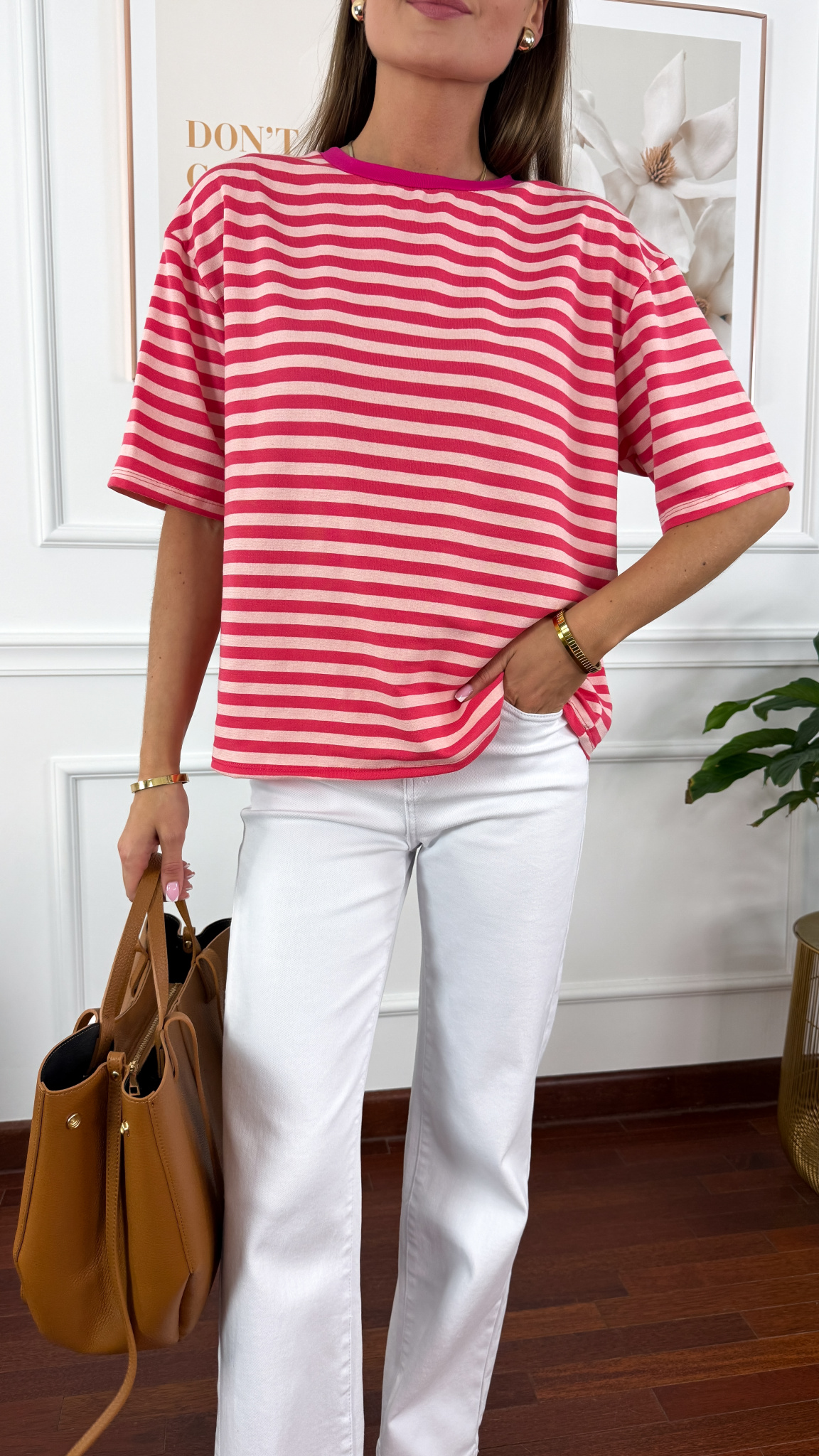 Wiskozowy T-shirt Dana paski różowy