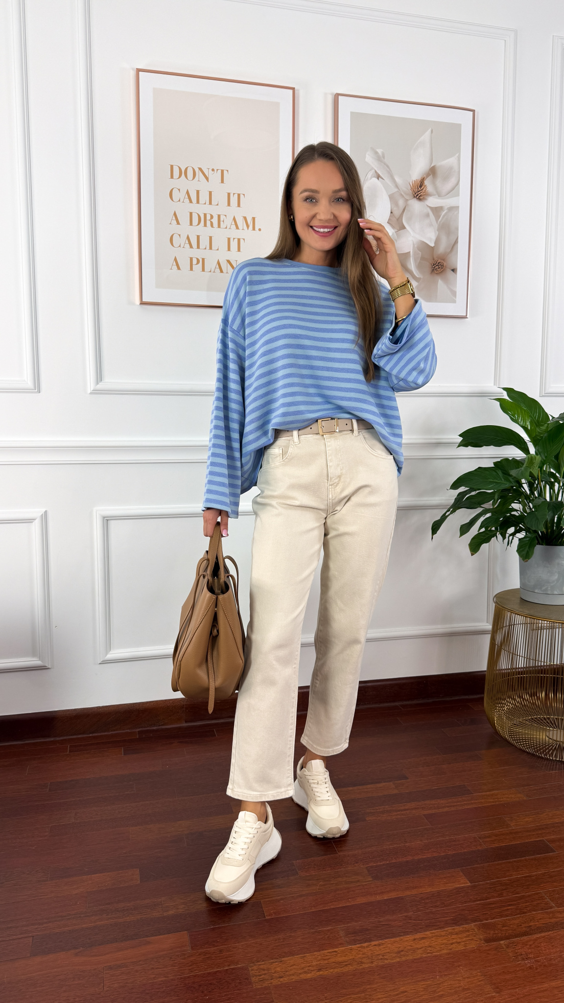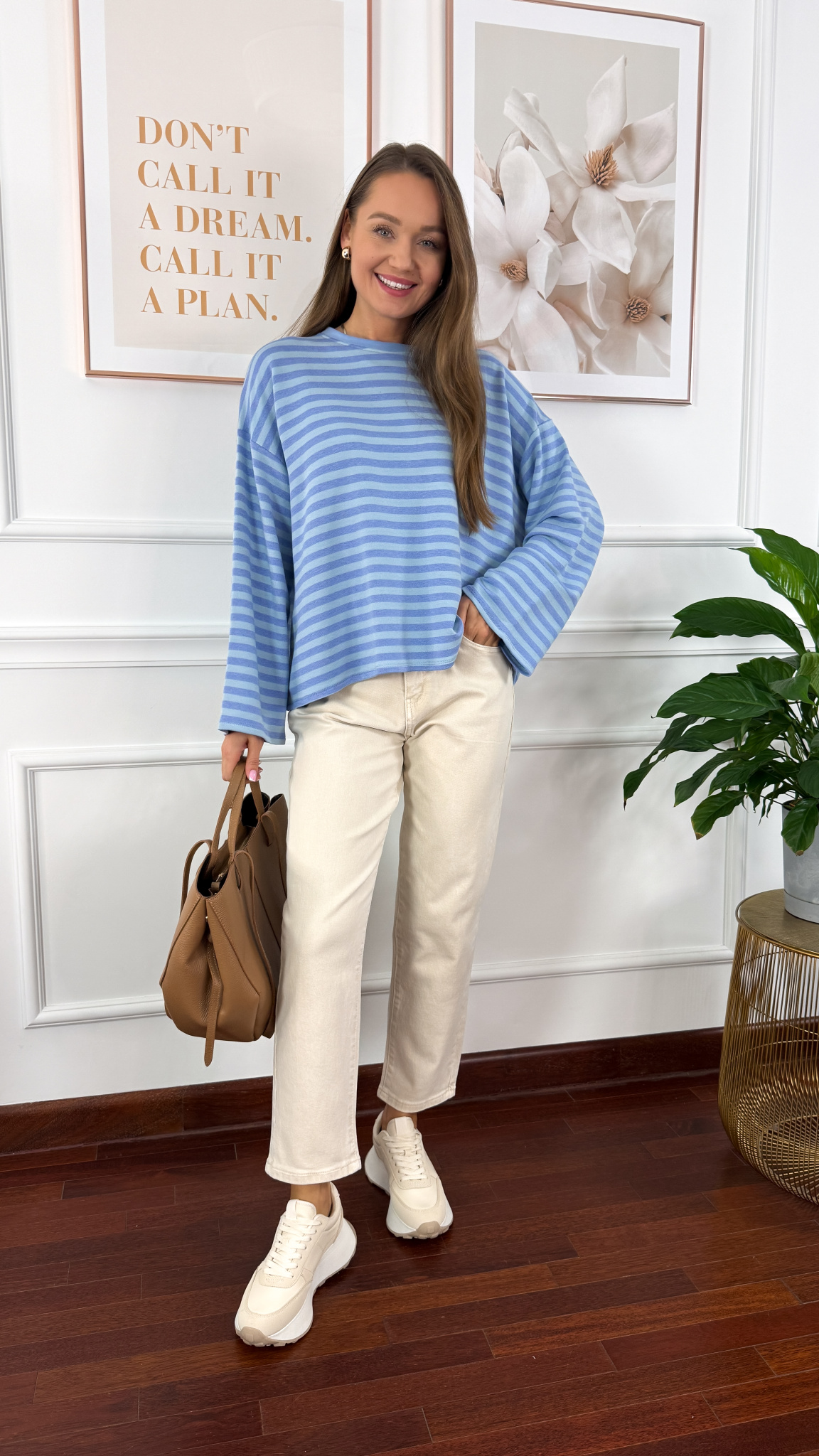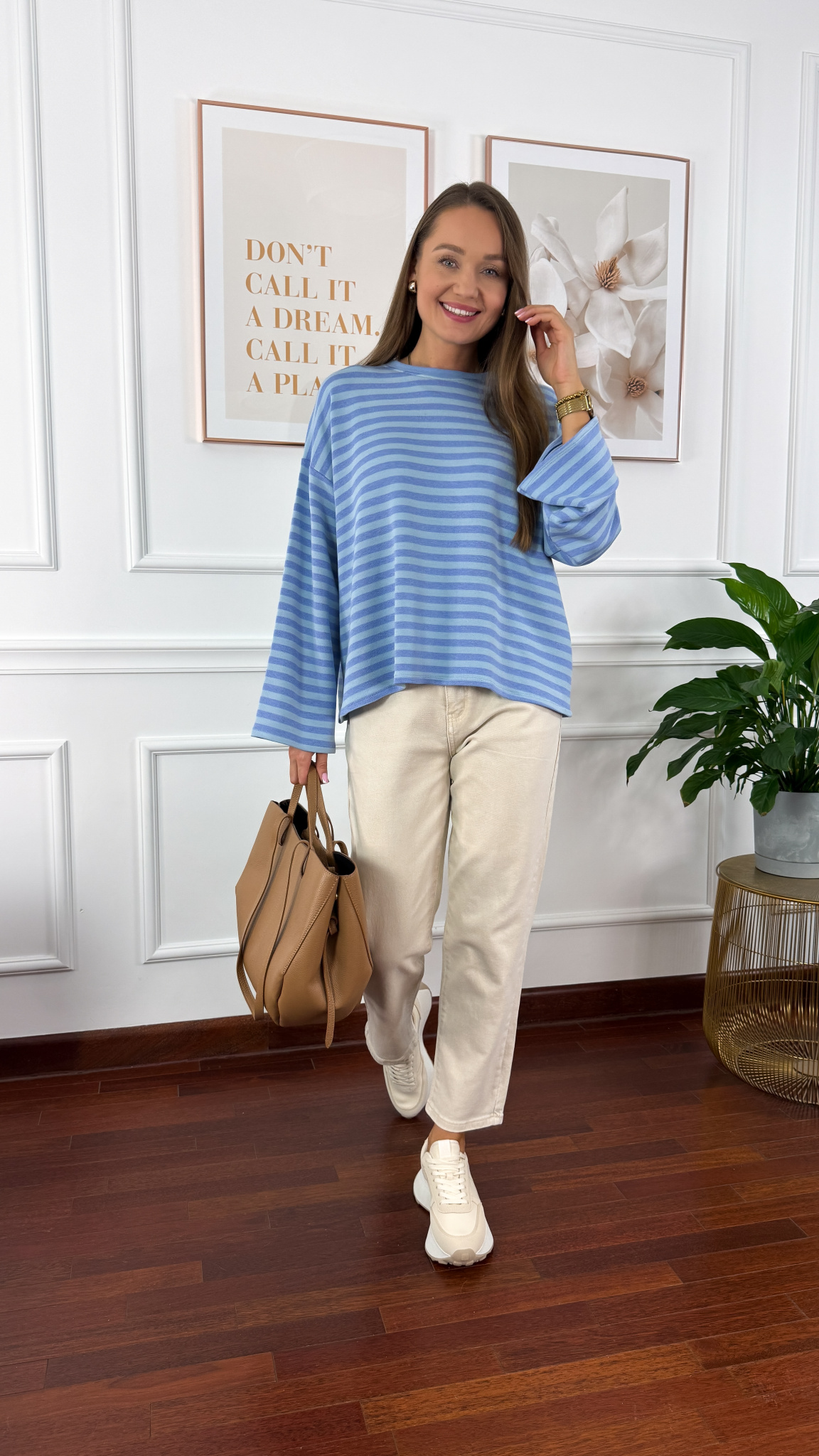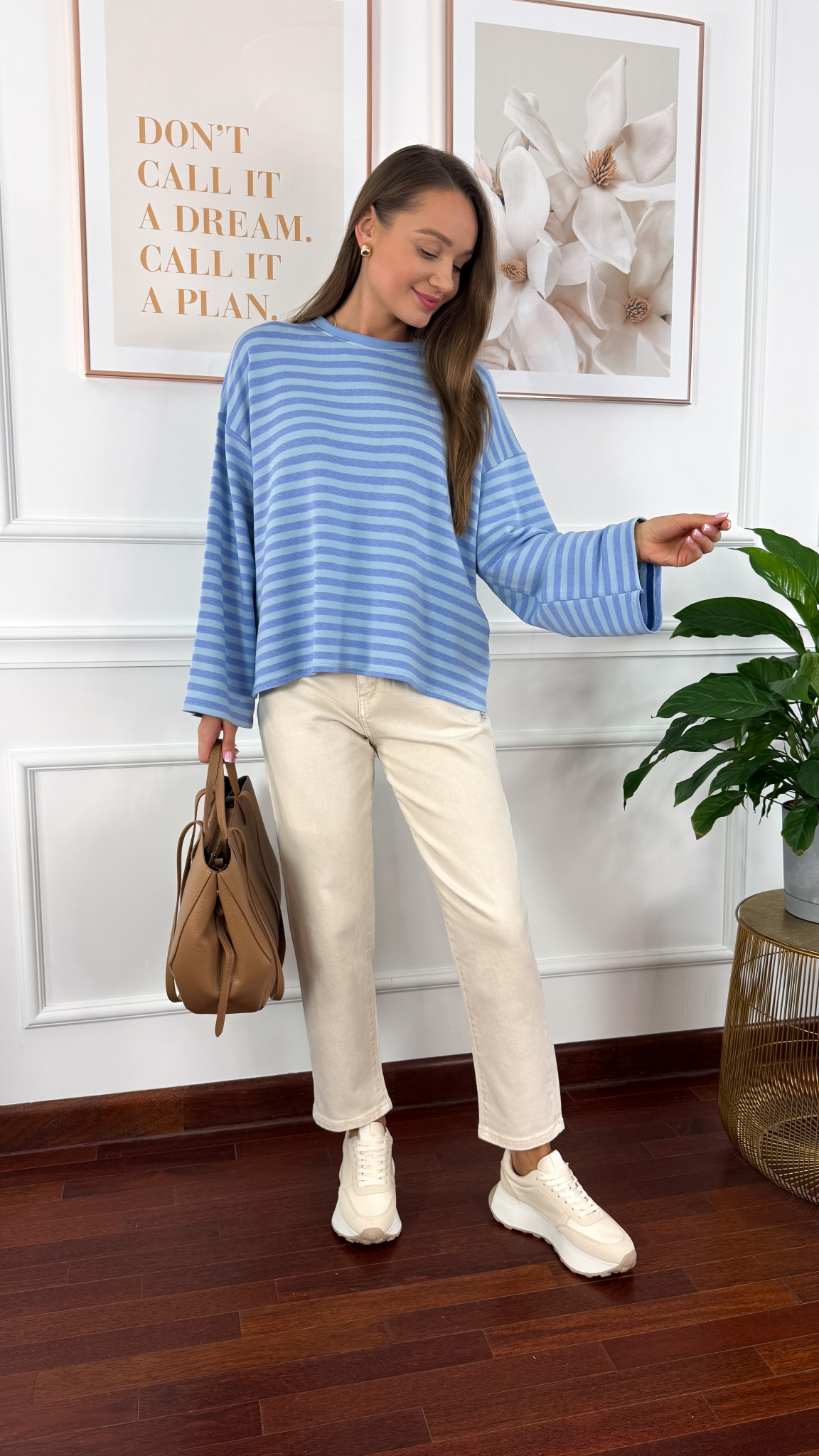 Bluza sprawdzi się na sylwetkę w rozmiarze od S do XL. Oversizowa bluza z okrągłym dekoltem i rozszerzanymi rękawami.