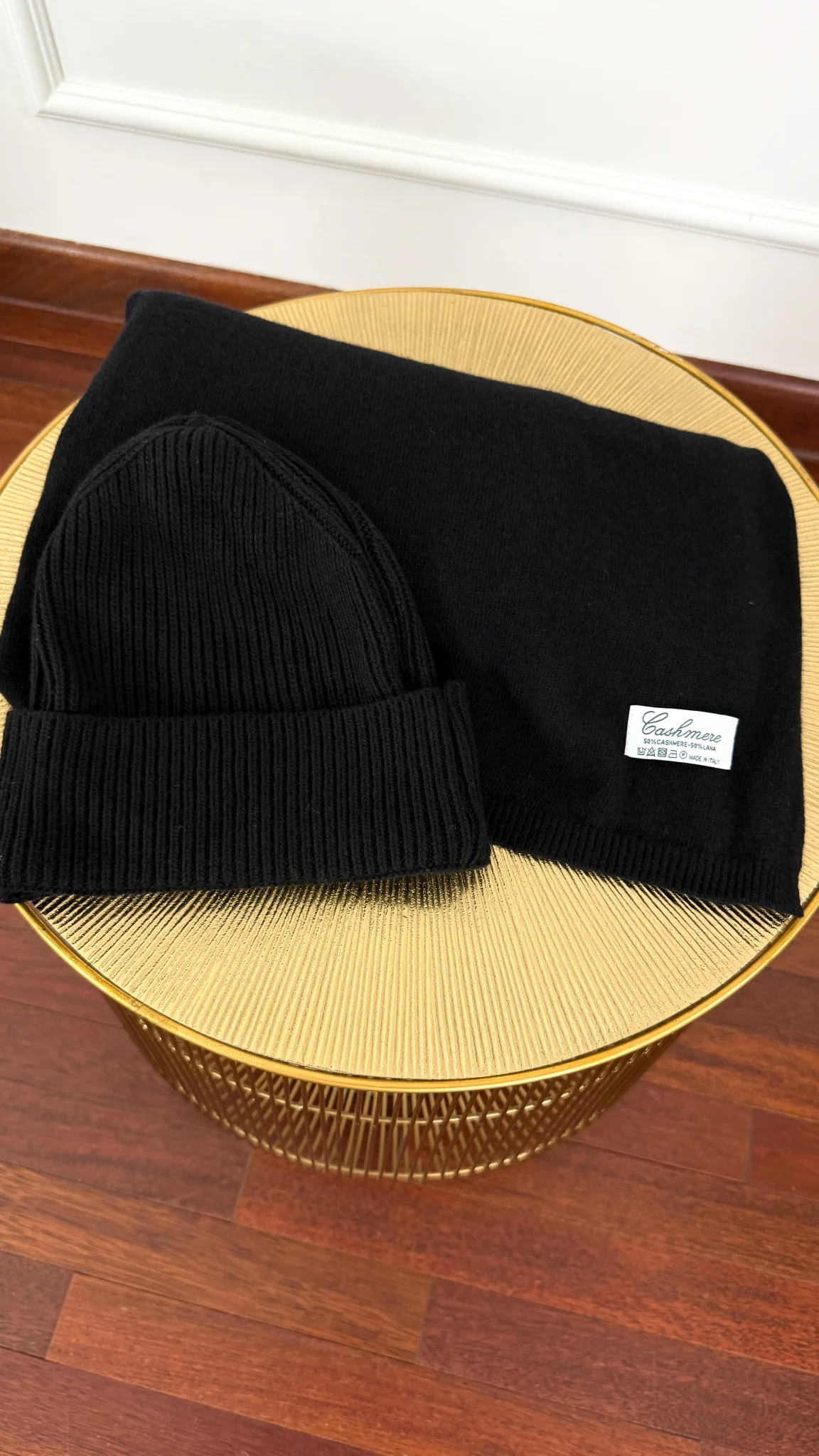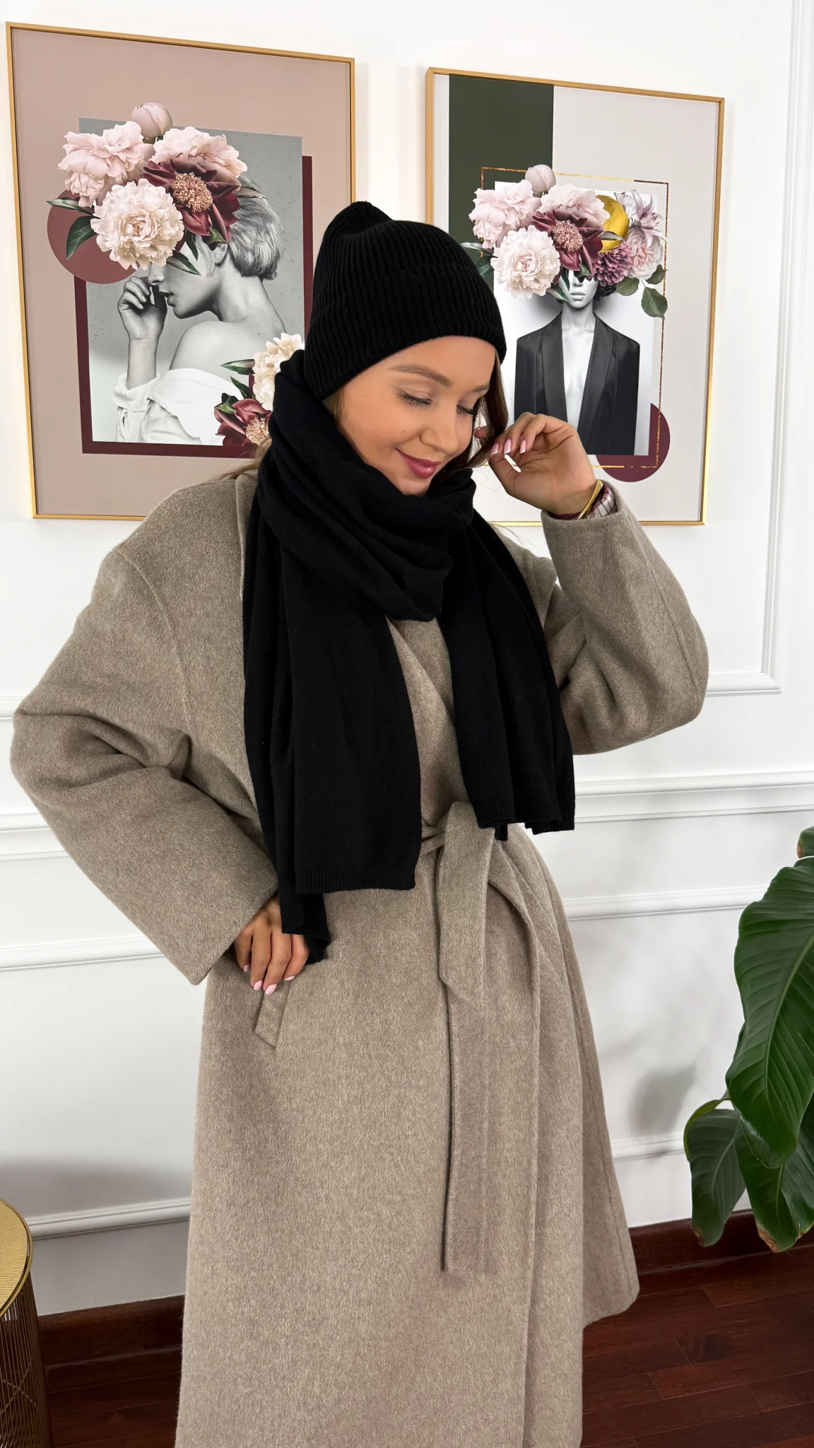 Kaszmirowo-wełniany komplet czapka i szal Winter czarny