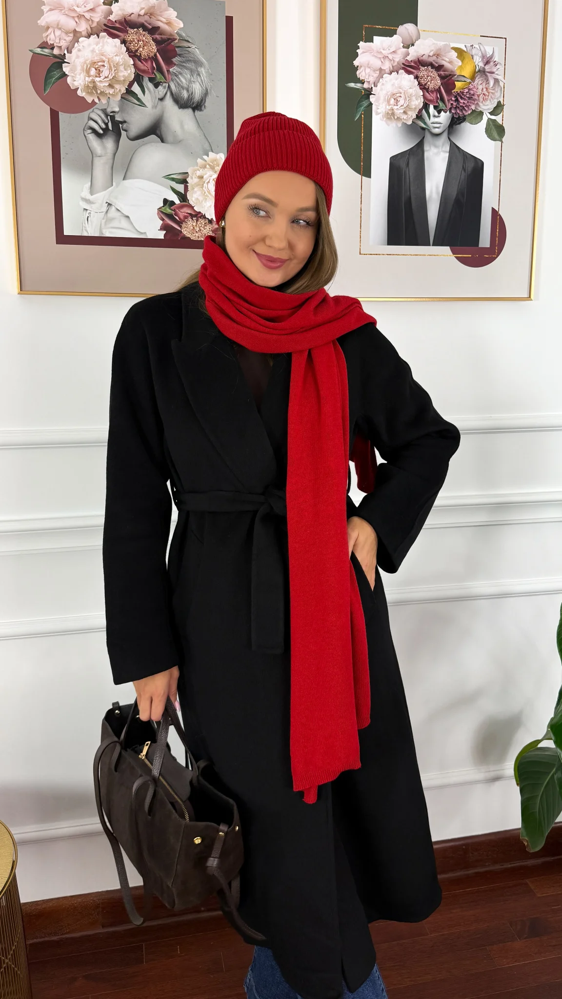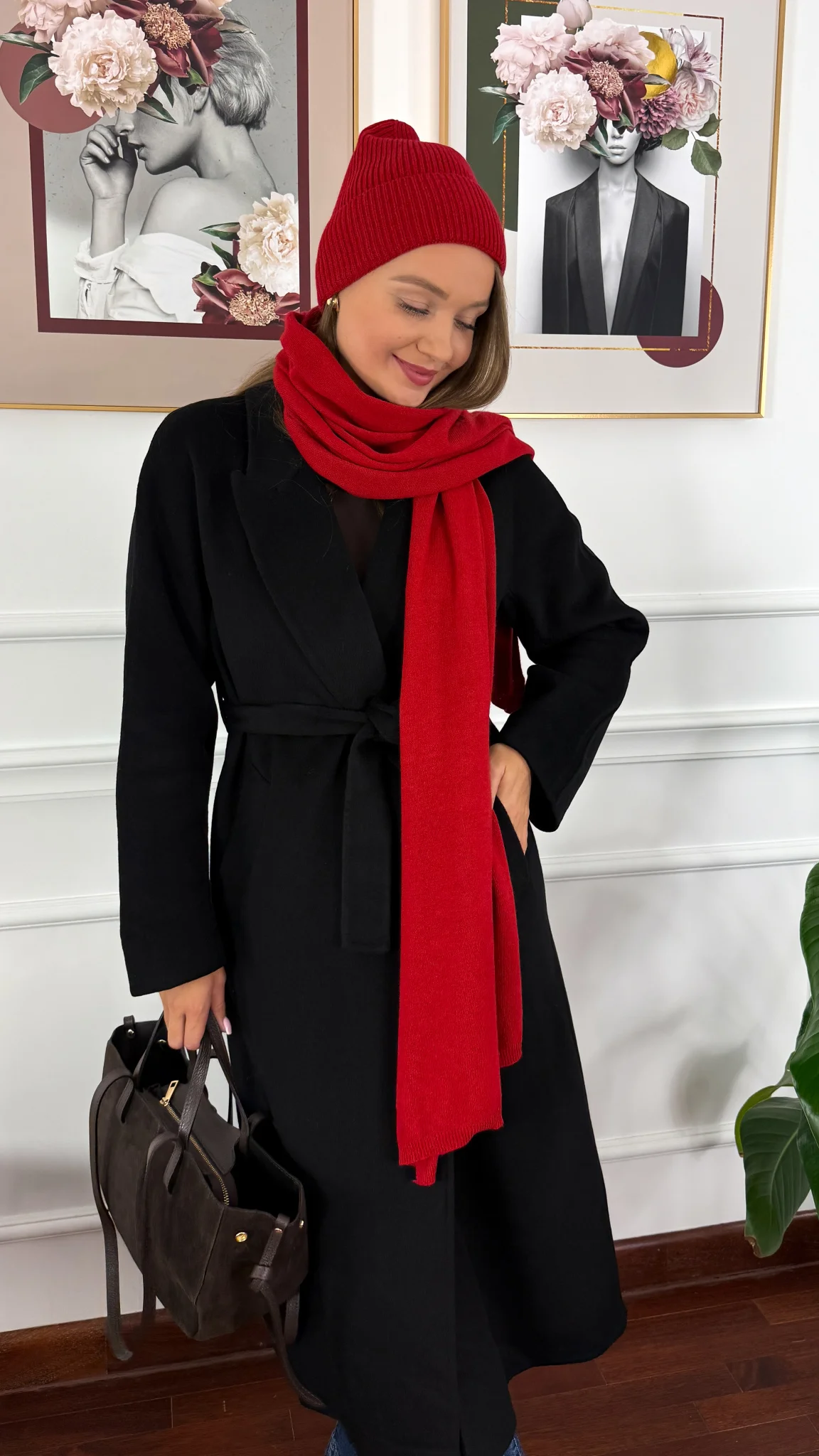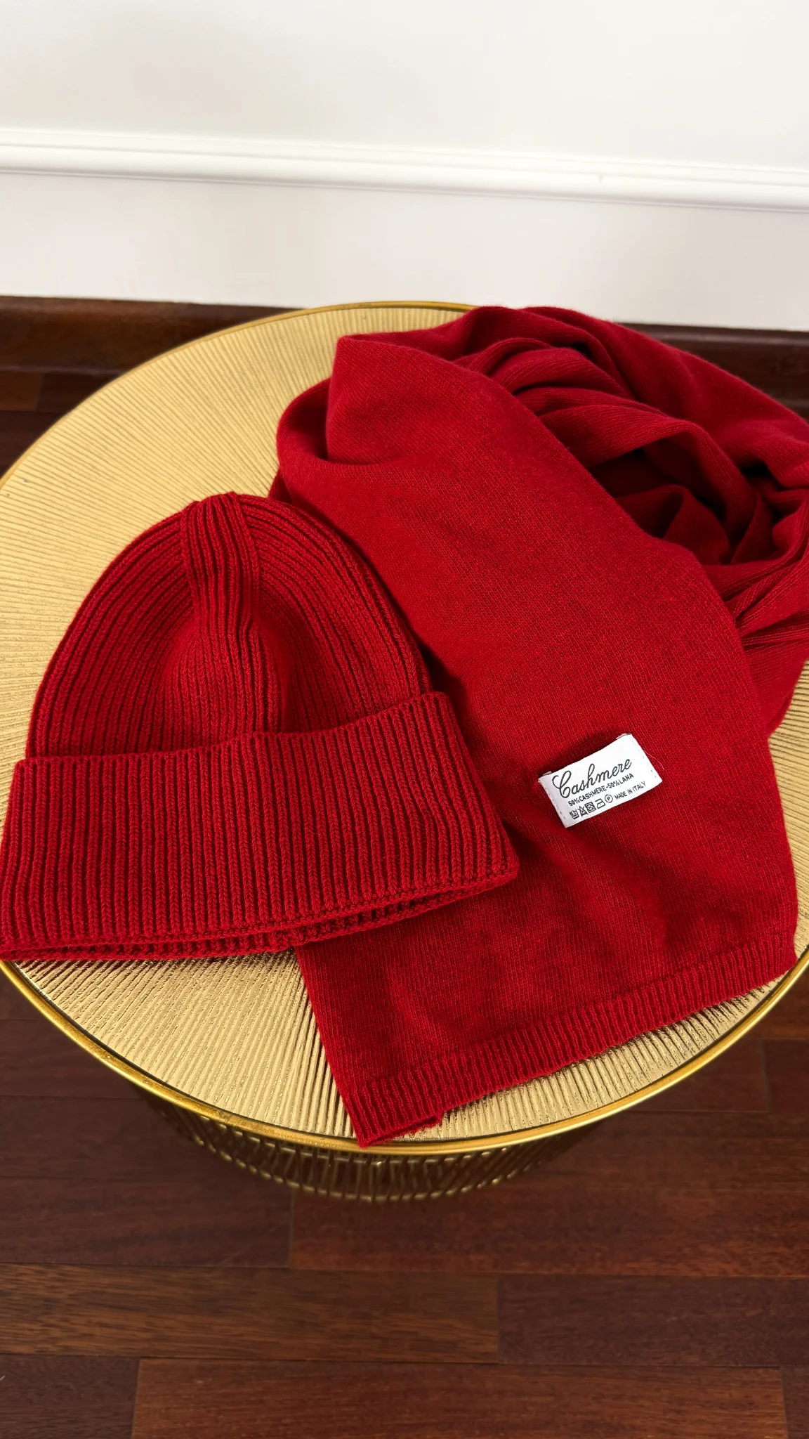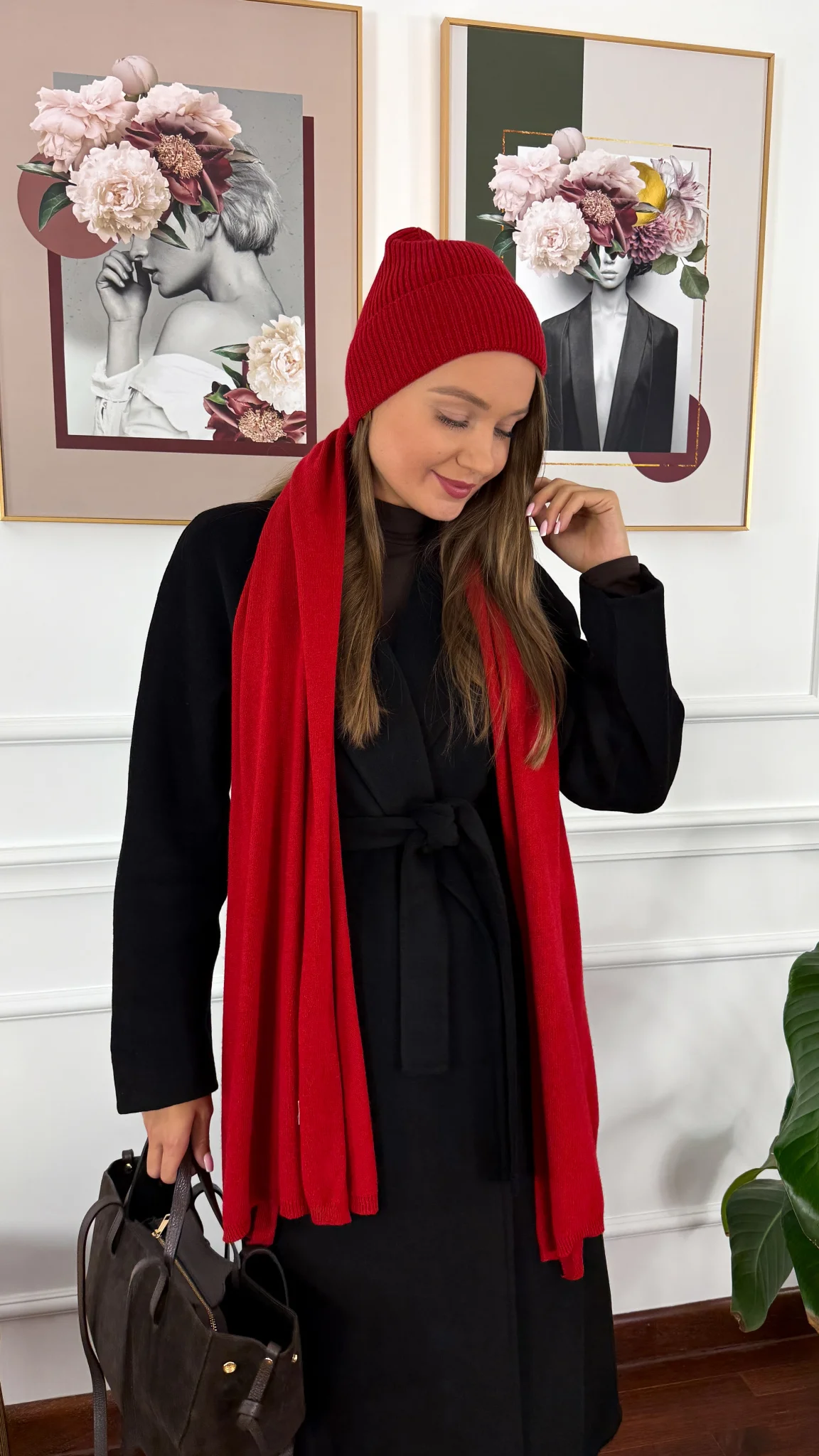 Kaszmirowo-wełniany komplet czapka i szal Winter bordowy