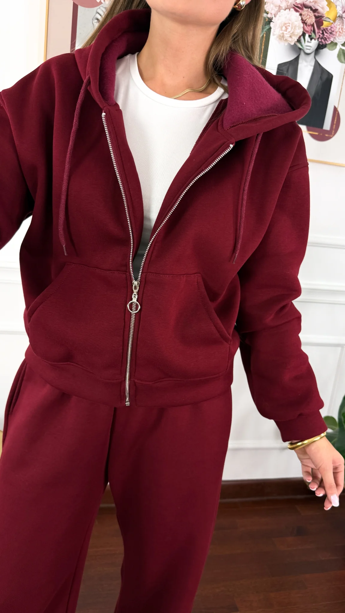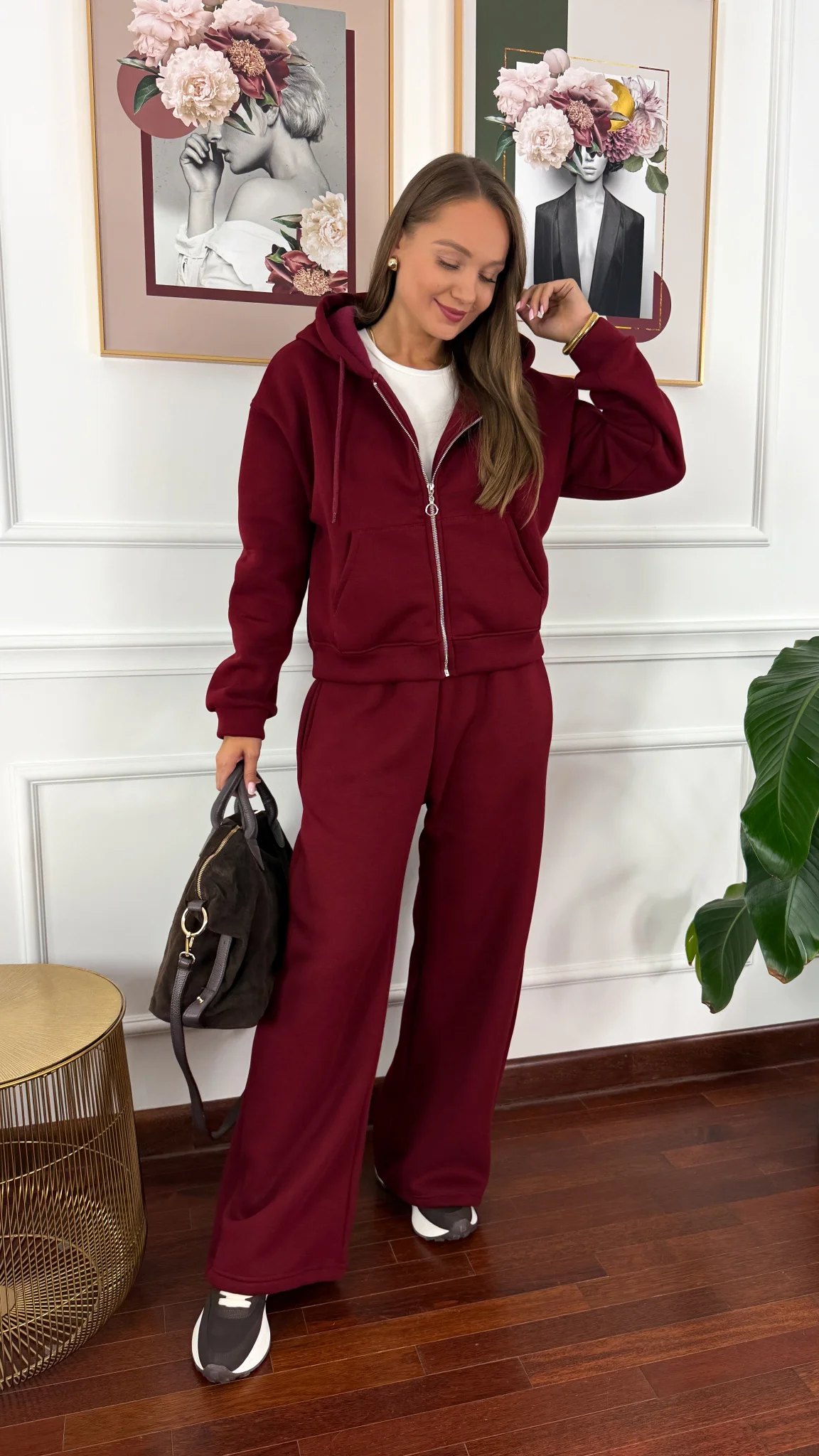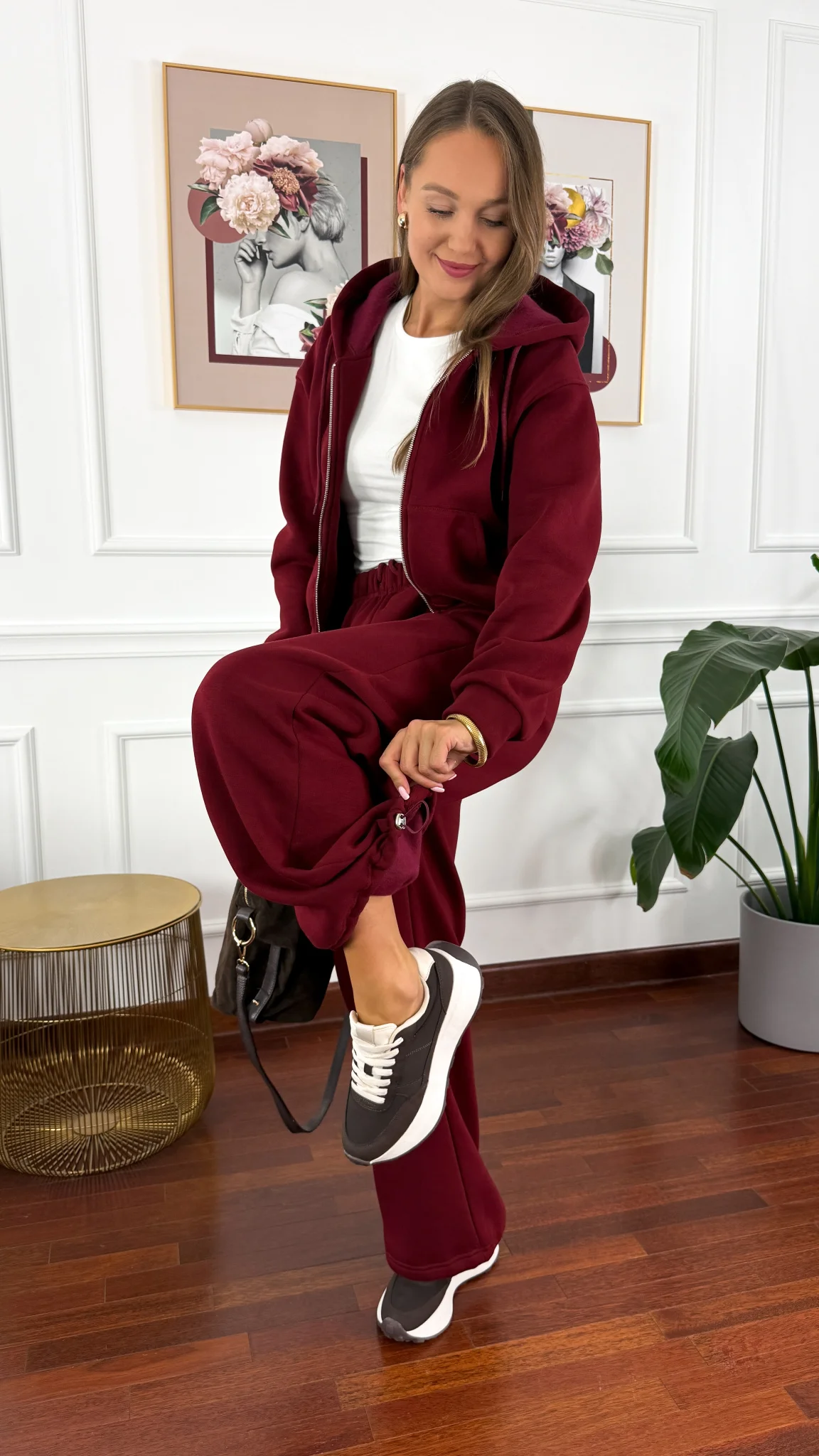 Bawełniany komplet dresowy Elodie burgundowy