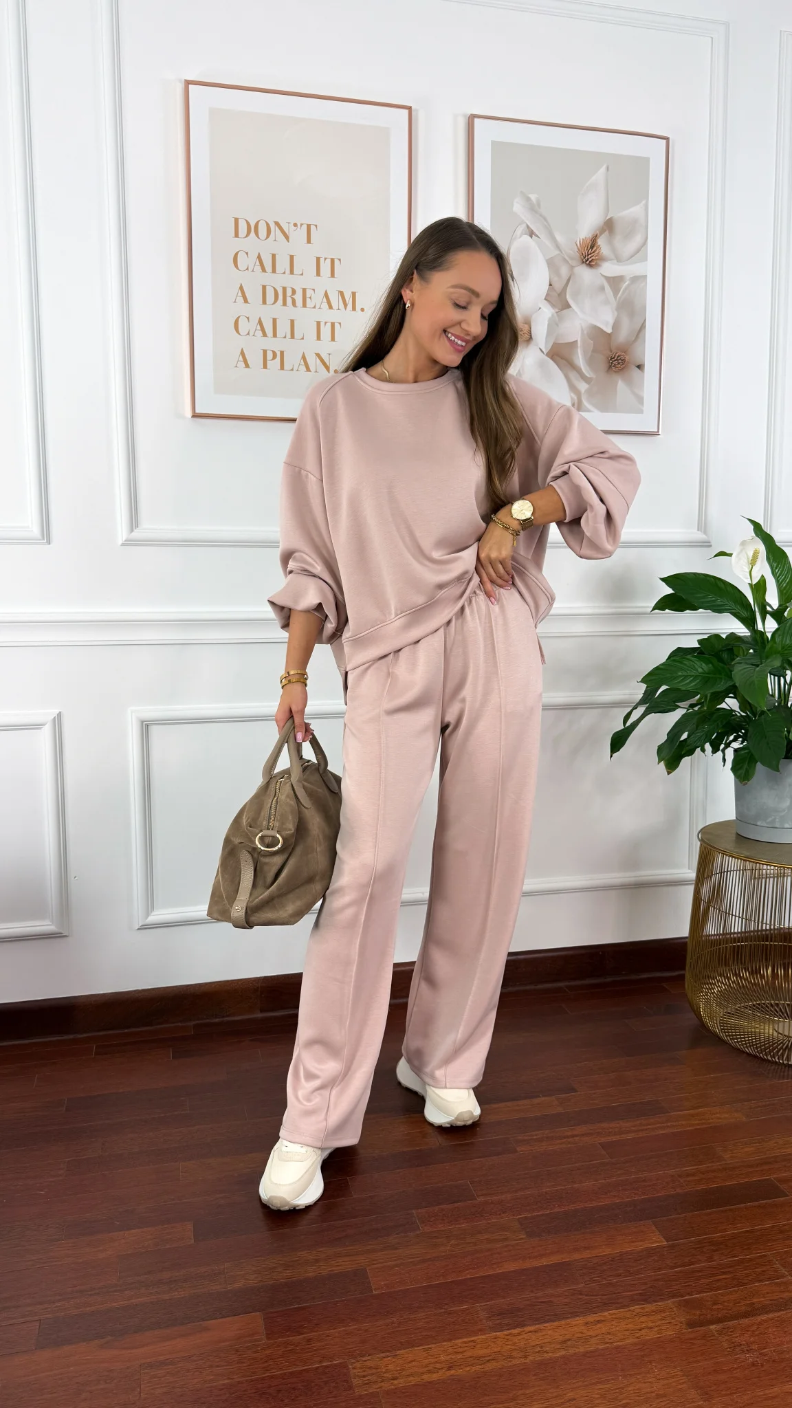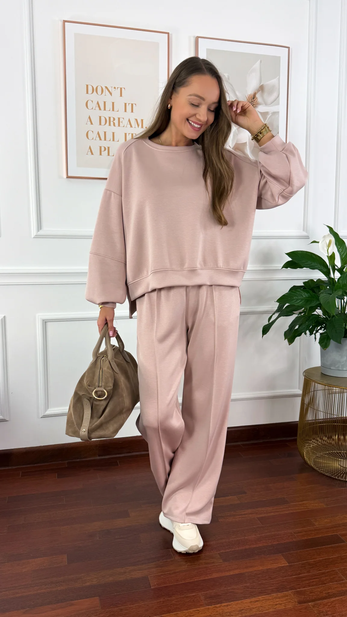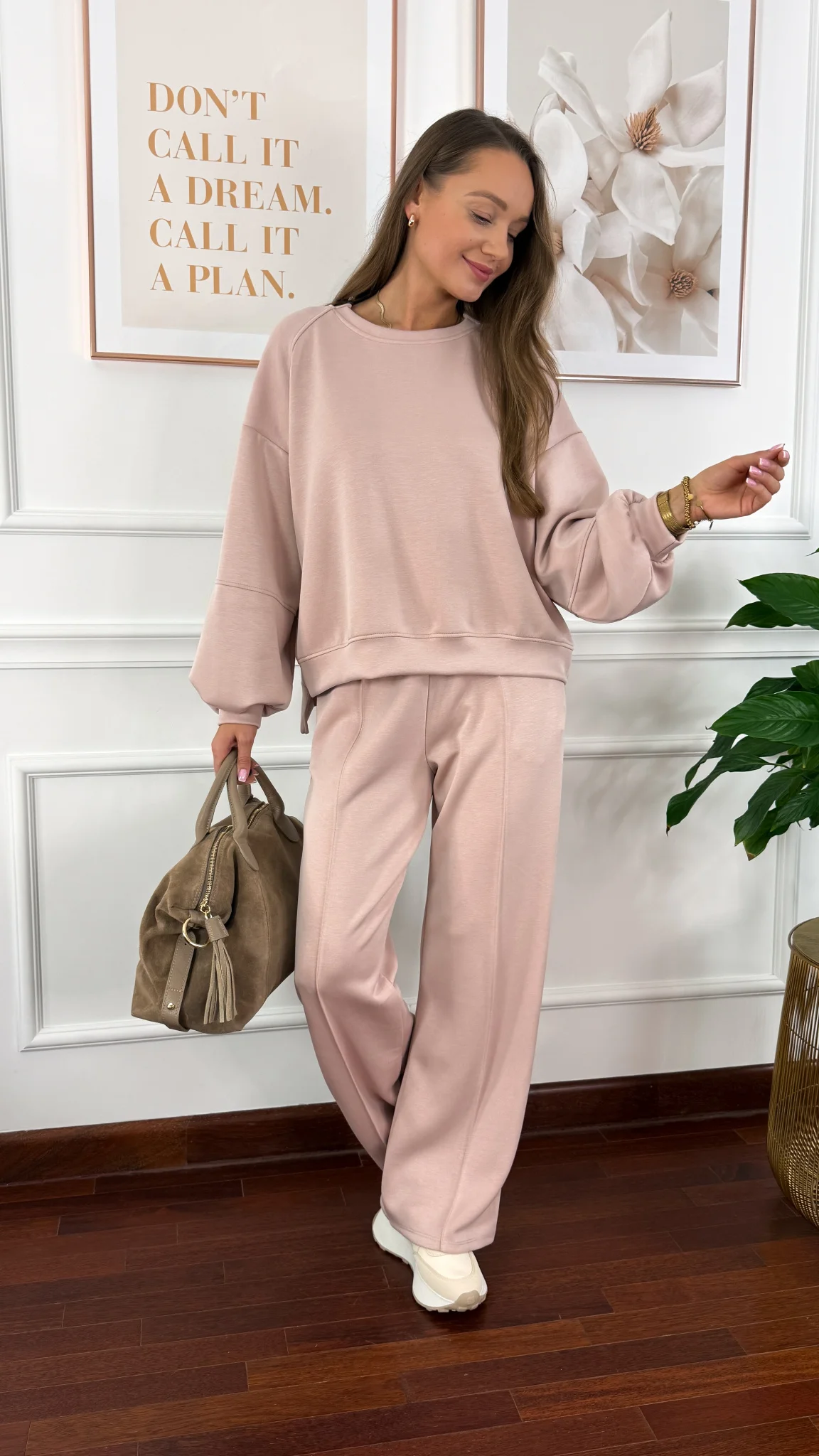 Wiskozowy komplet dresowy Adel pudrowy róż