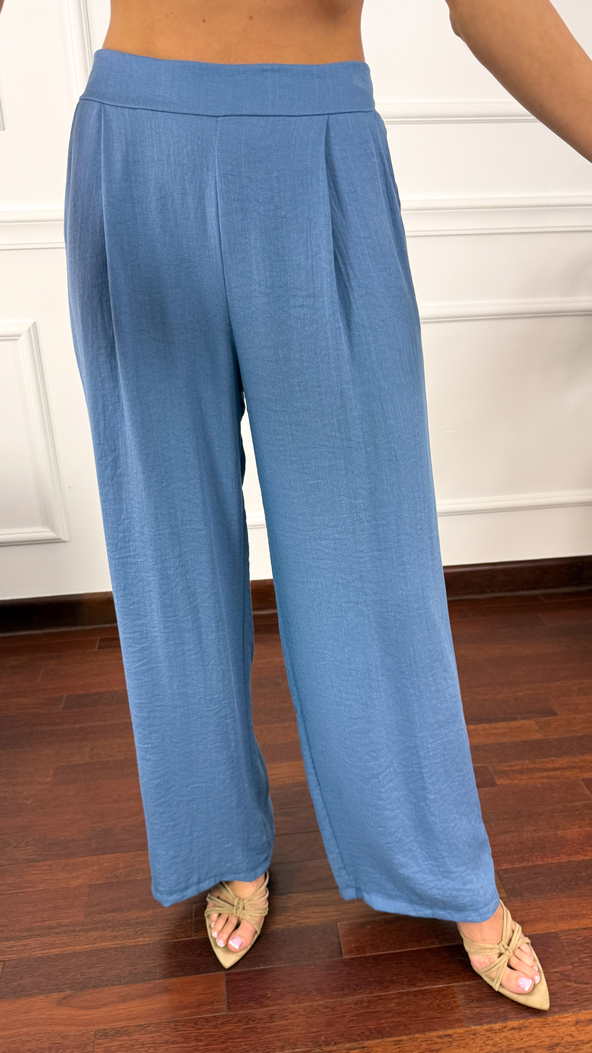 Model sprawdzi się na sylwetkę w rozmiarze od S do L. Wiskozowy komplet składający się z przekładanej bluzki oraz spodni. Przewiązywana bluzka z dekoltem kopertowym. Spodnie mają wszytą gumkę w pasie. Nogawki są bardzo szerokie. Komplet idealnie sprawdzi się w cieplejsze dni.