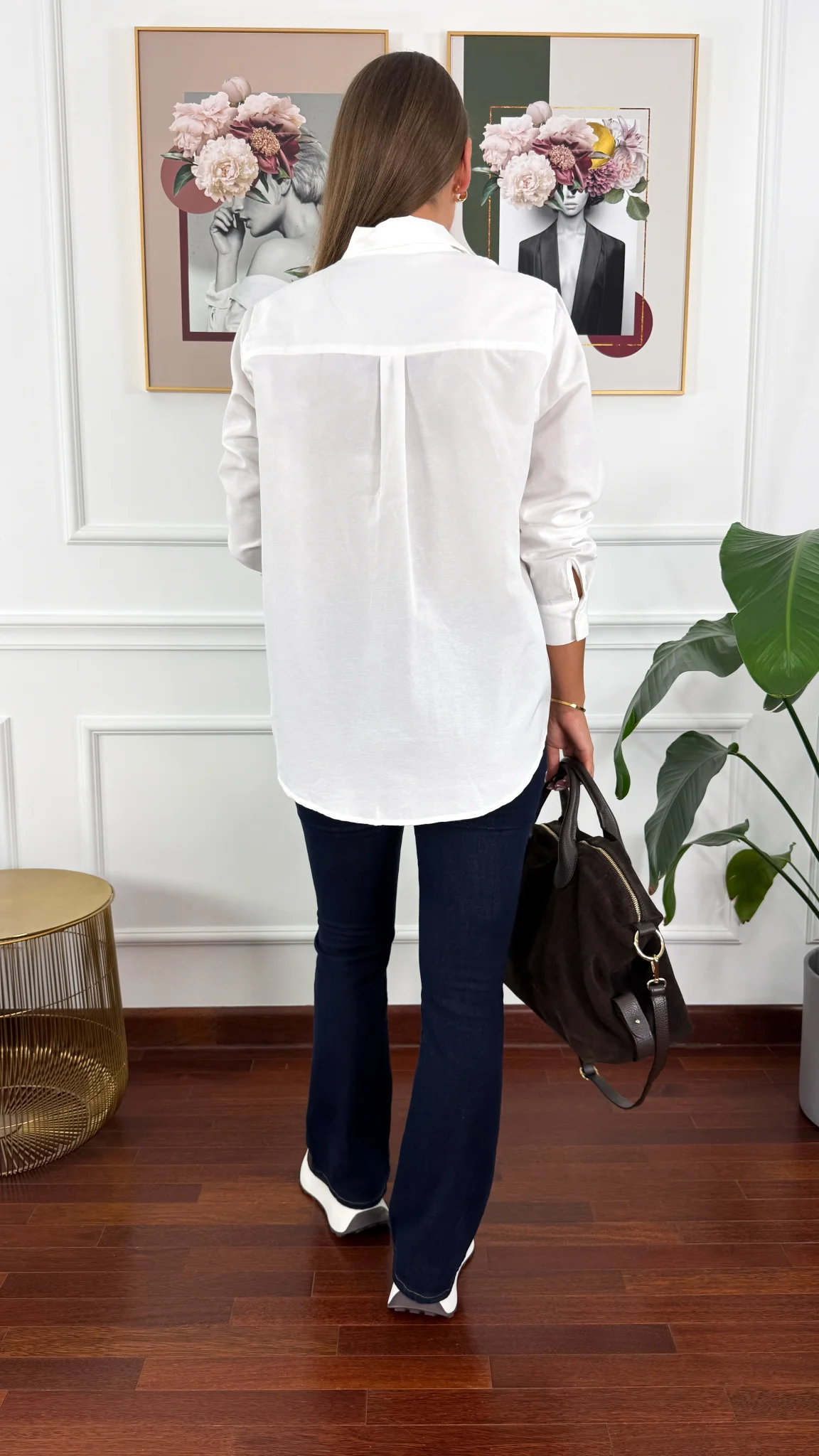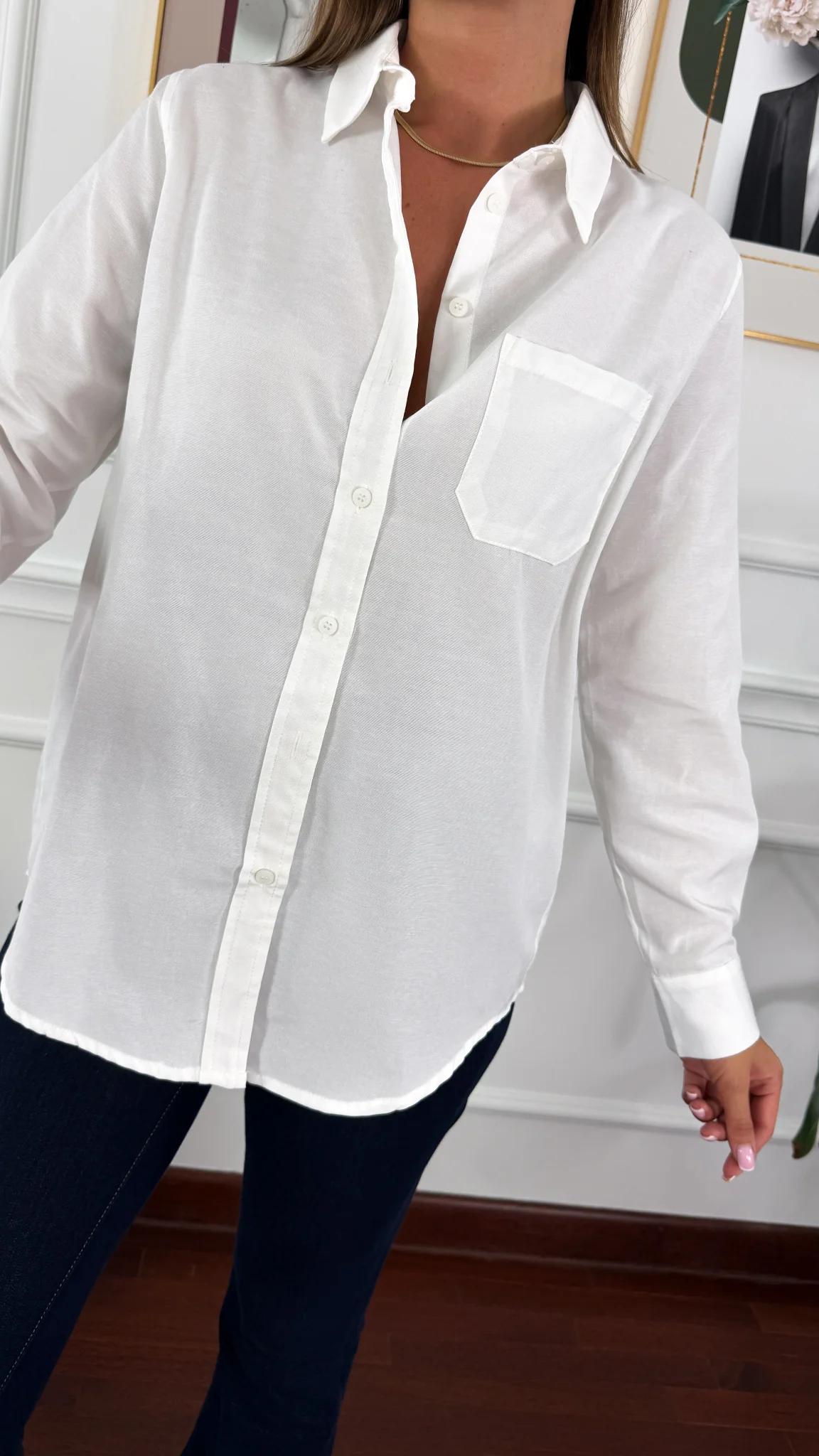 Bawełniana koszula z kołnierzykiem. Rękaw zakończony mankietem zapinanym na guzik.