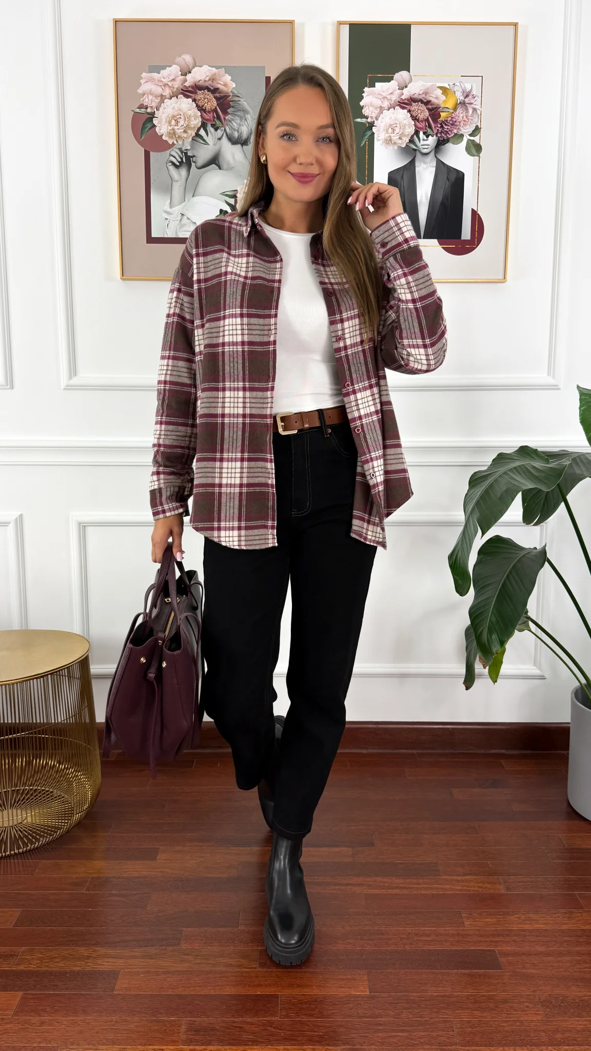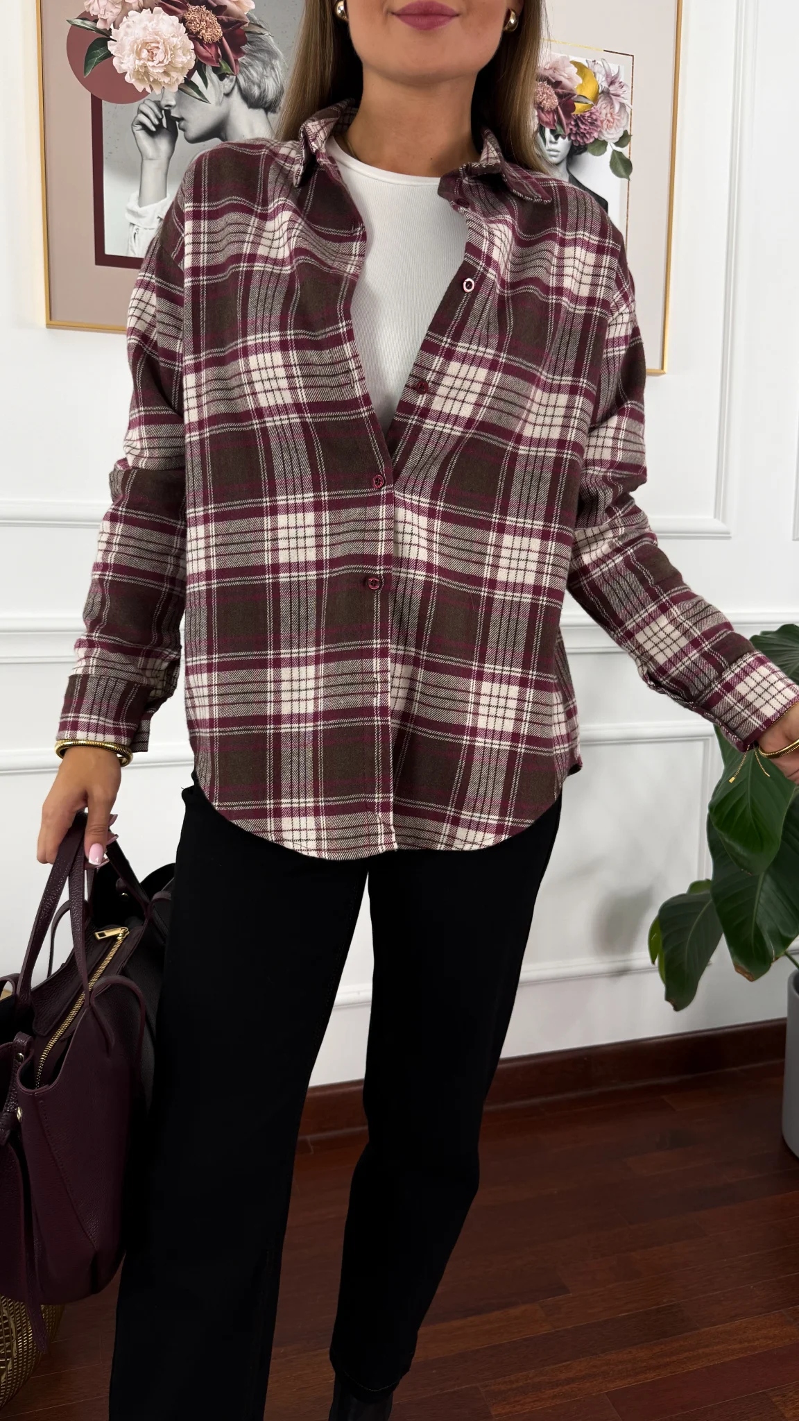Model sprawdzi się na sylwetkę w rozmiarze od S do L. Bawełniana koszula w kratę z kołnierzykiem zapinana na guziki. Rękawy zakończone krótkim mankietem zapinanym na guzik.