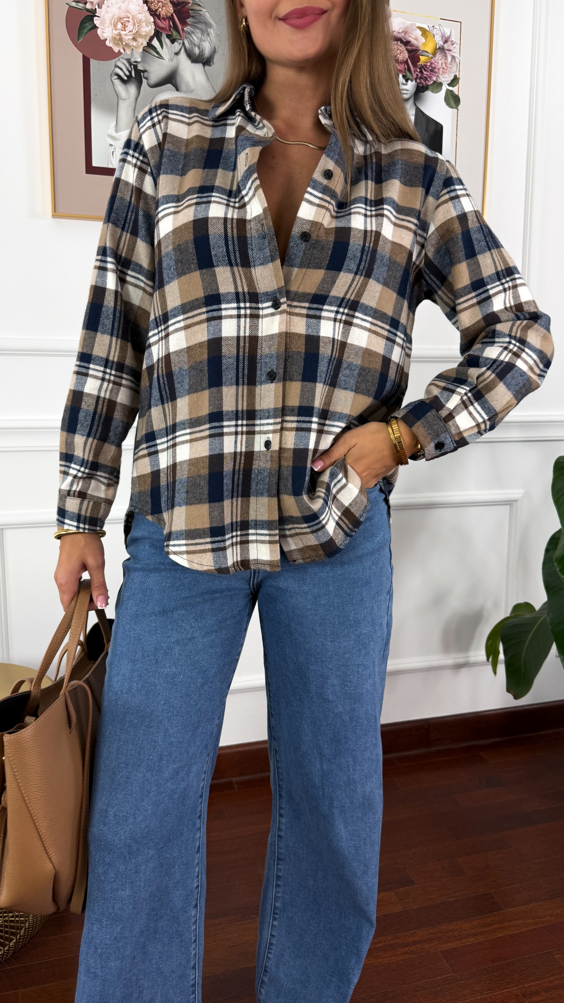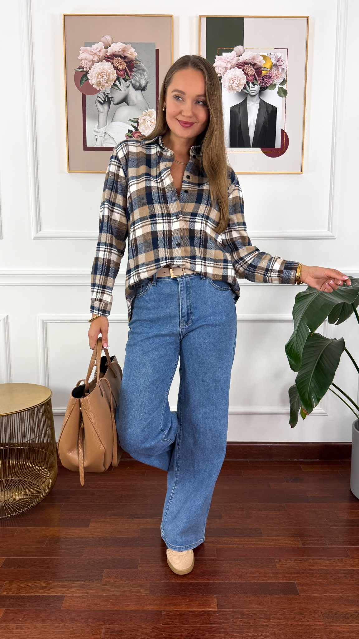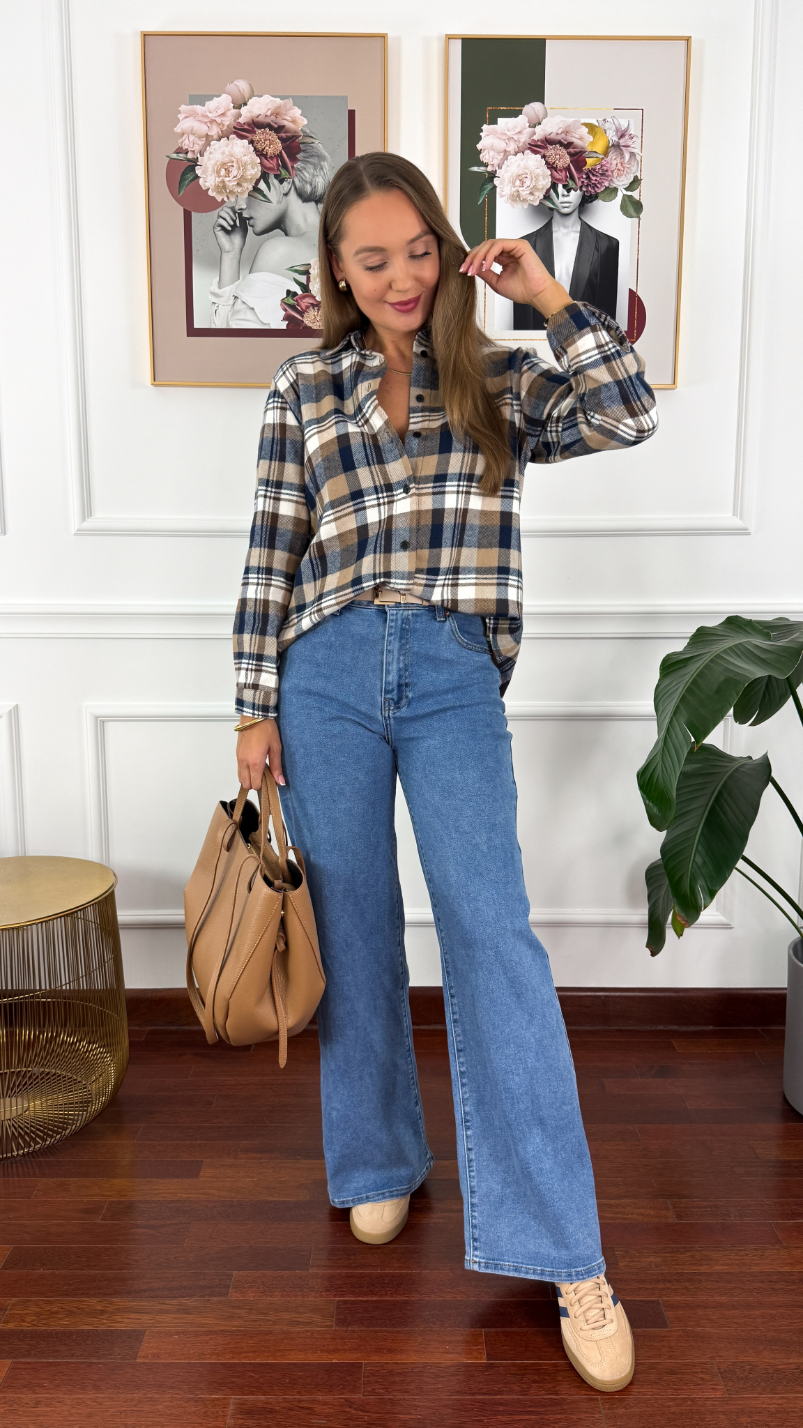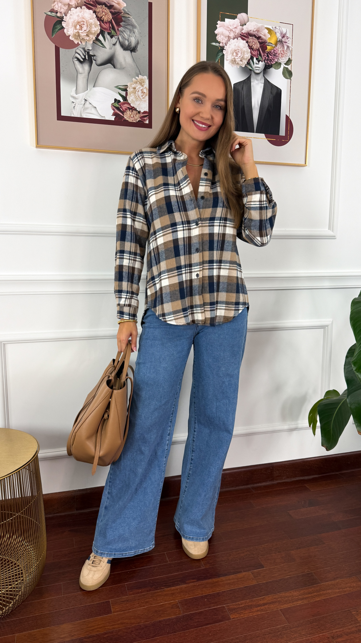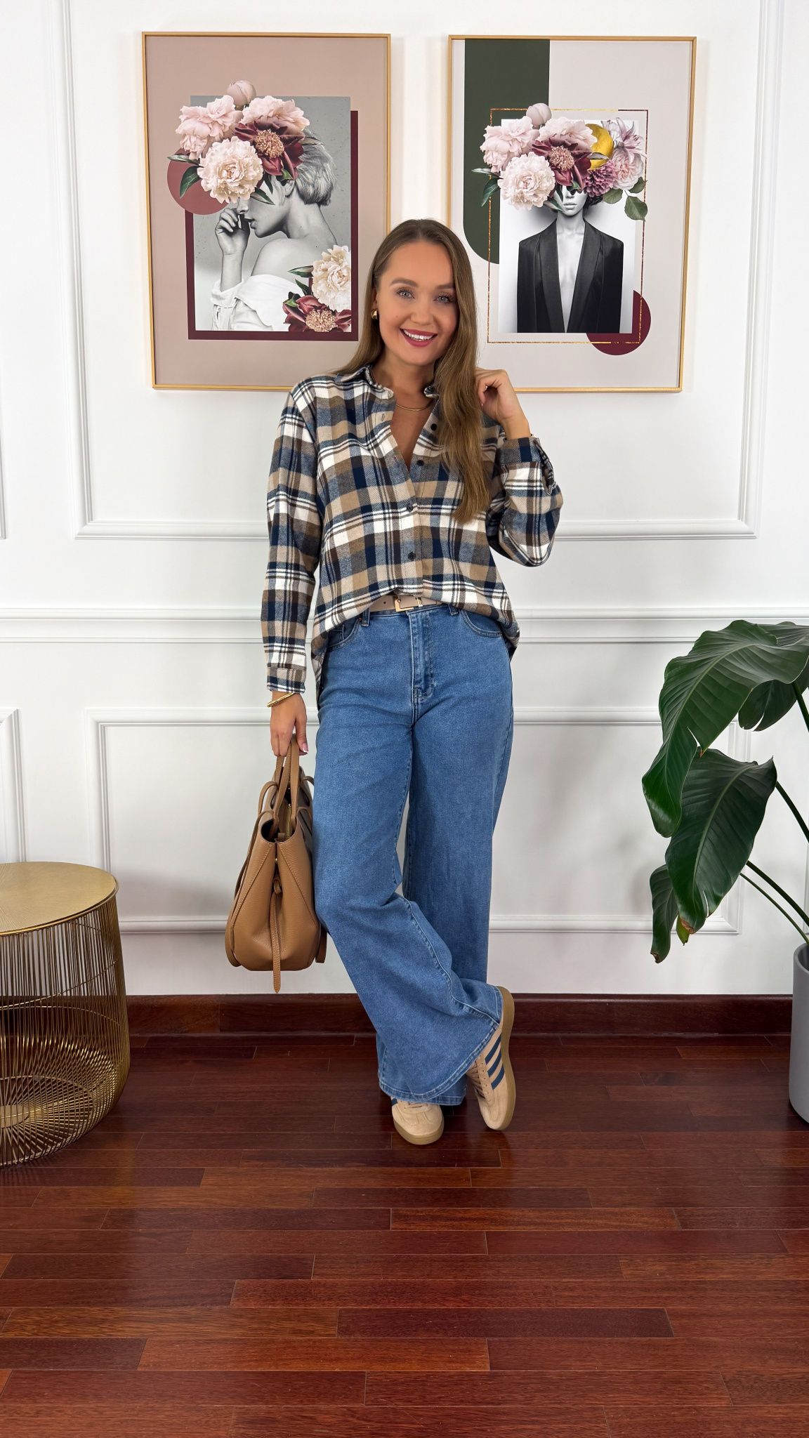 Model sprawdzi się na sylwetkę w rozmiarze od S do L. Bawełniana koszula w kratę z kołnierzykiem zapinana na guziki. Rękawy zakończone krótkim mankietem zapinanym na guzik.