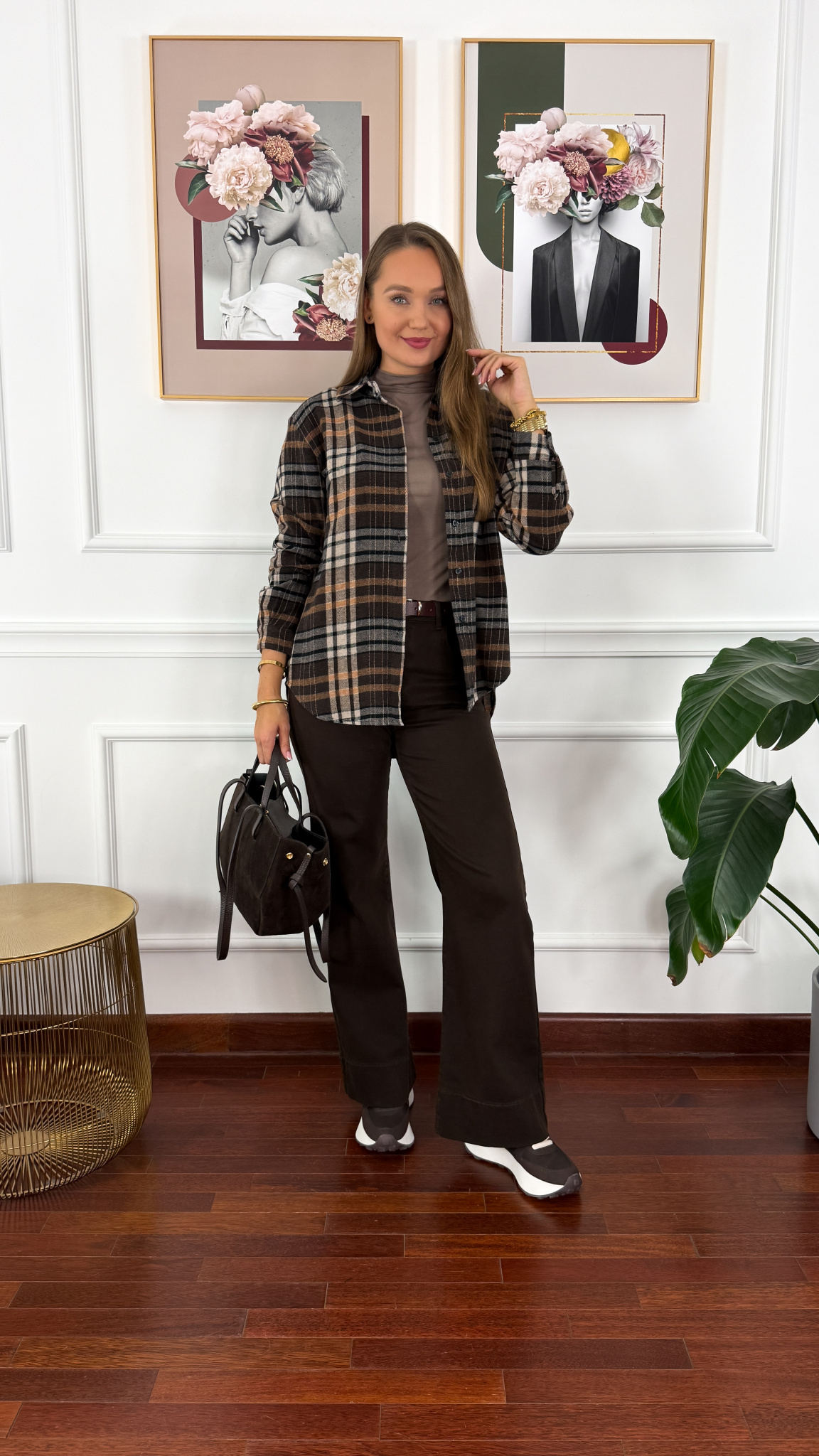 Model sprawdzi się na sylwetkę w rozmiarze od S do L. Bawełniana koszula w kratę z kołnierzykiem zapinana na guziki. Rękawy zakończone krótkim mankietem zapinanym na guzik.