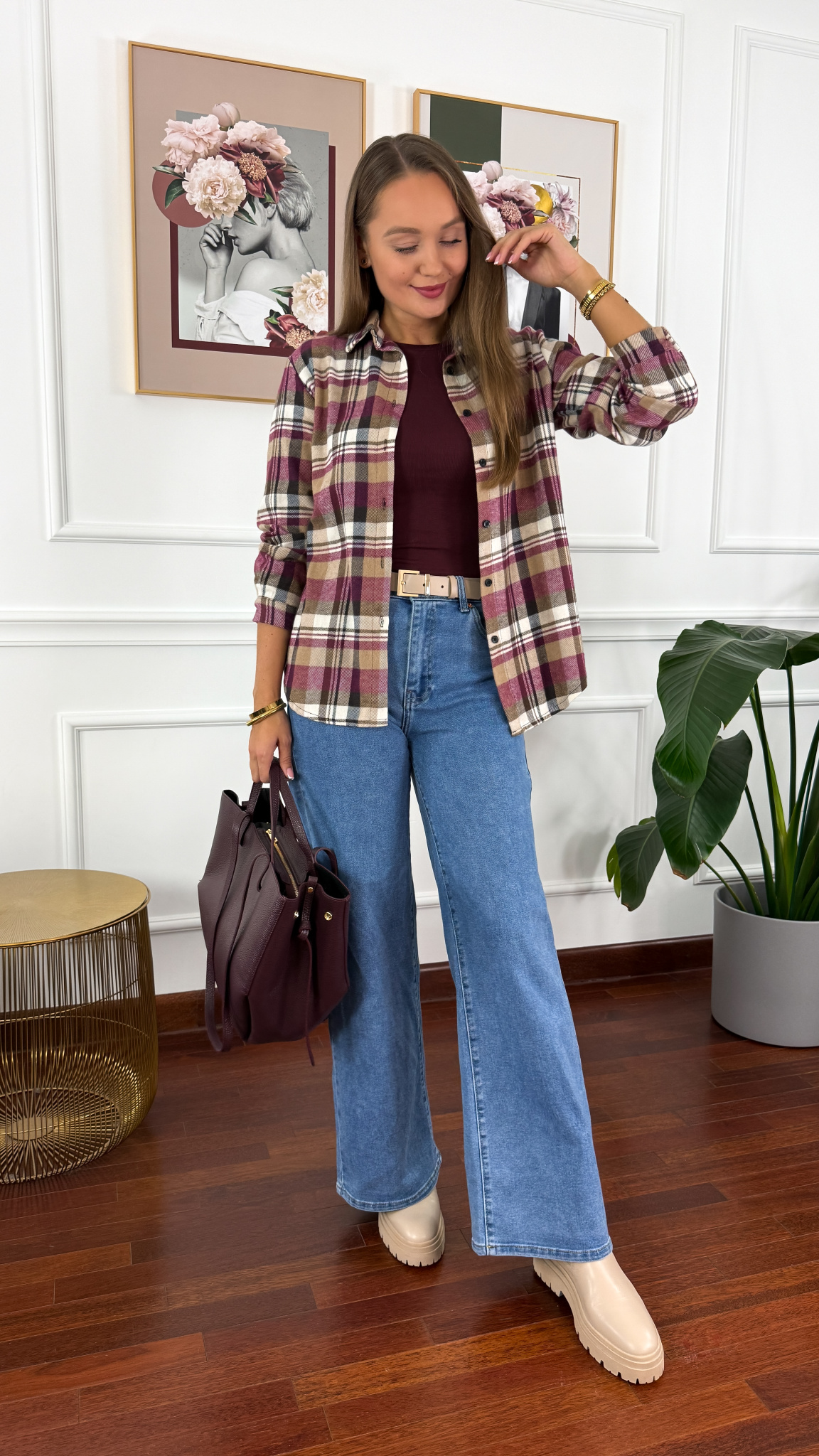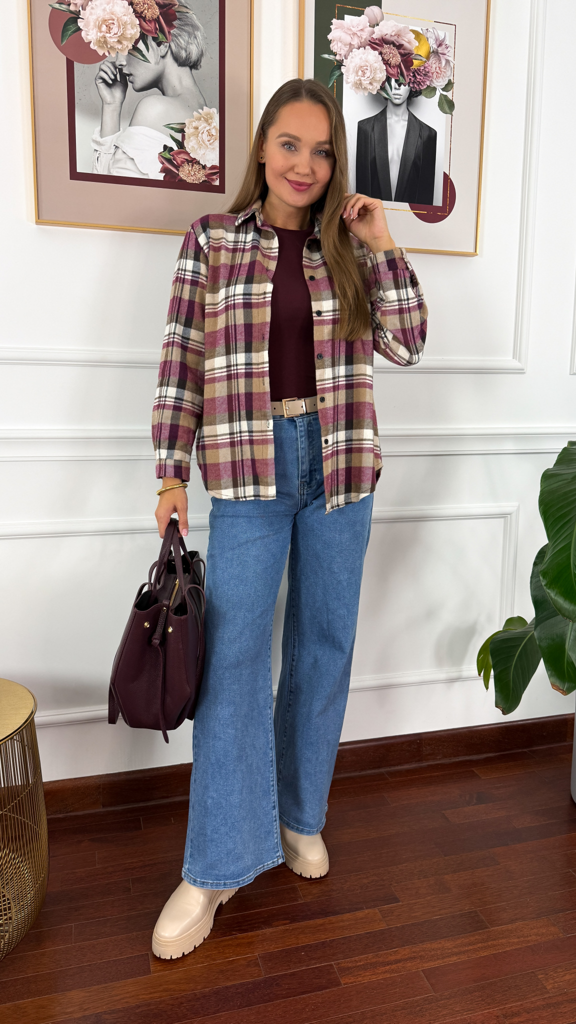 Model sprawdzi się na sylwetkę w rozmiarze od S do L. Bawełniana koszula w kratę z kołnierzykiem zapinana na guziki. Rękawy zakończone krótkim mankietem zapinanym na guzik.