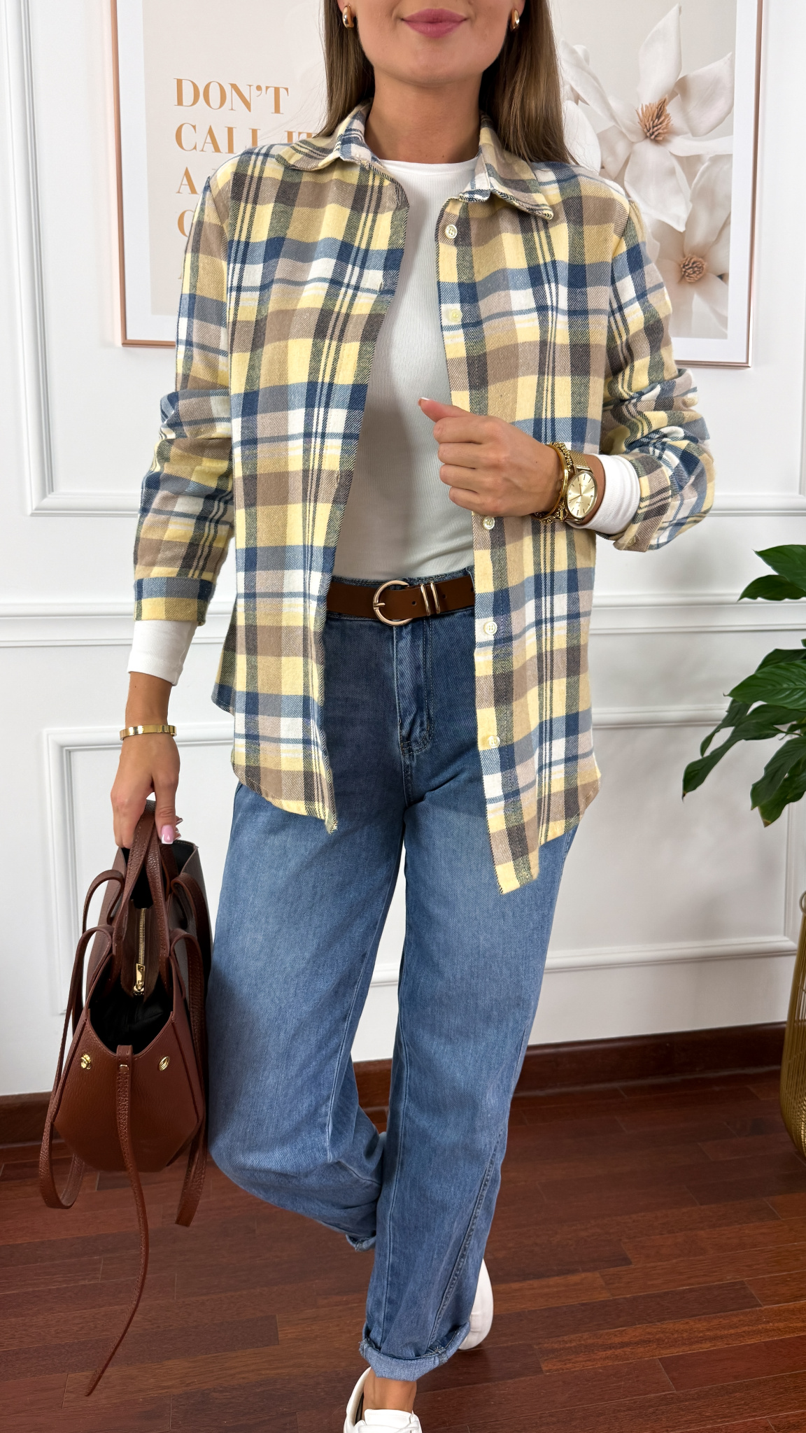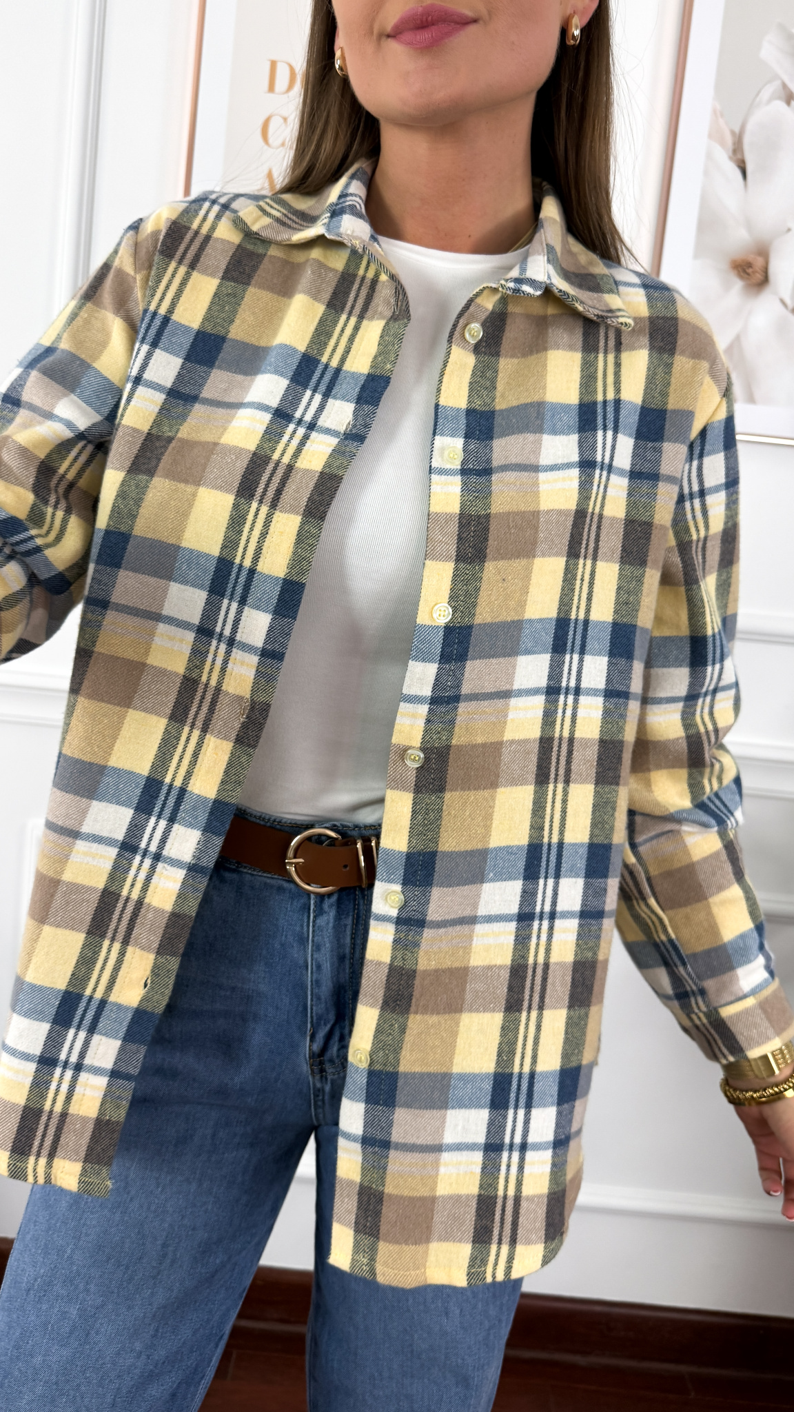 Koszula w kratę Grina niebiesko-żółta