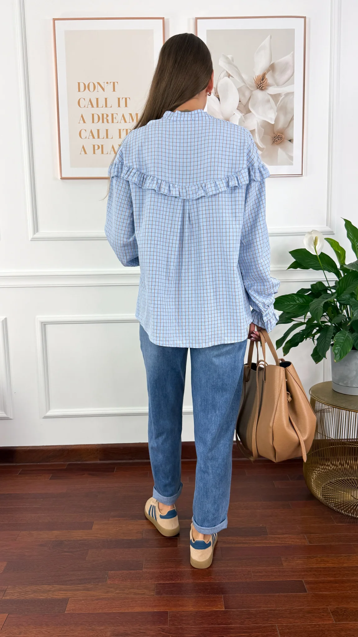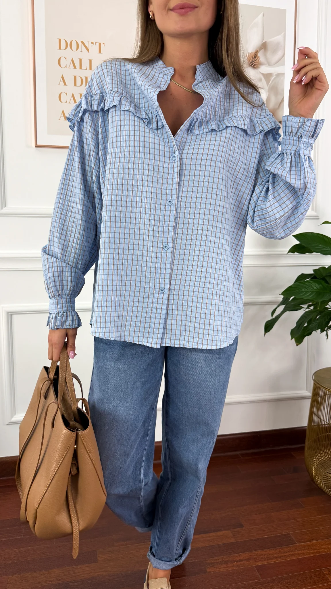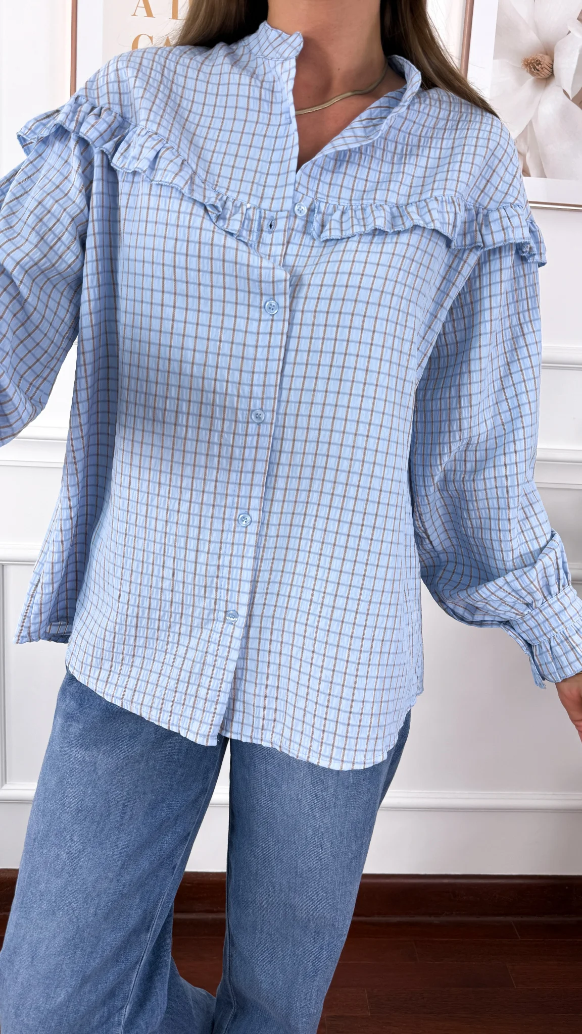 Koszula z falbanką Annis błękitna w kratkę