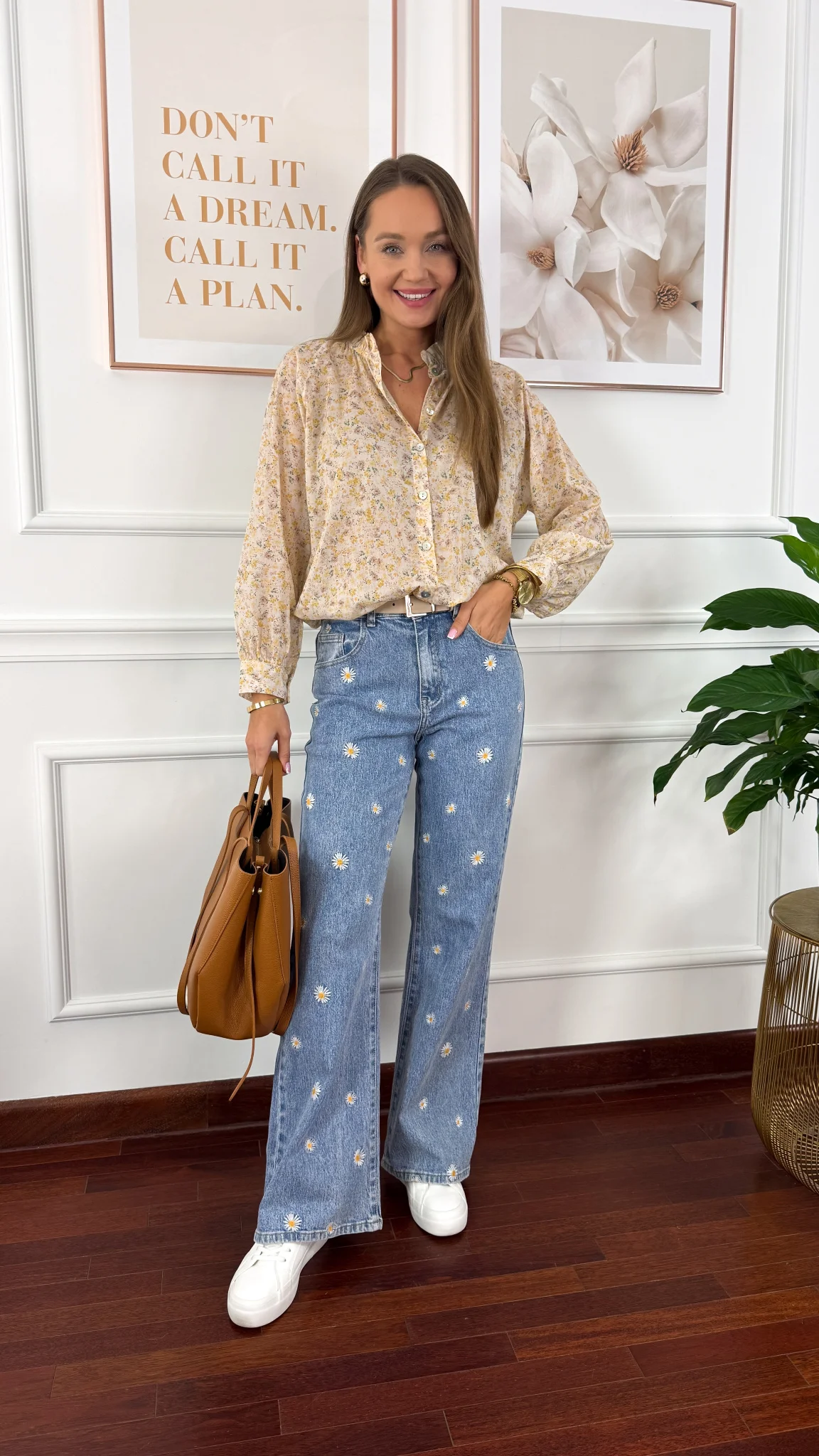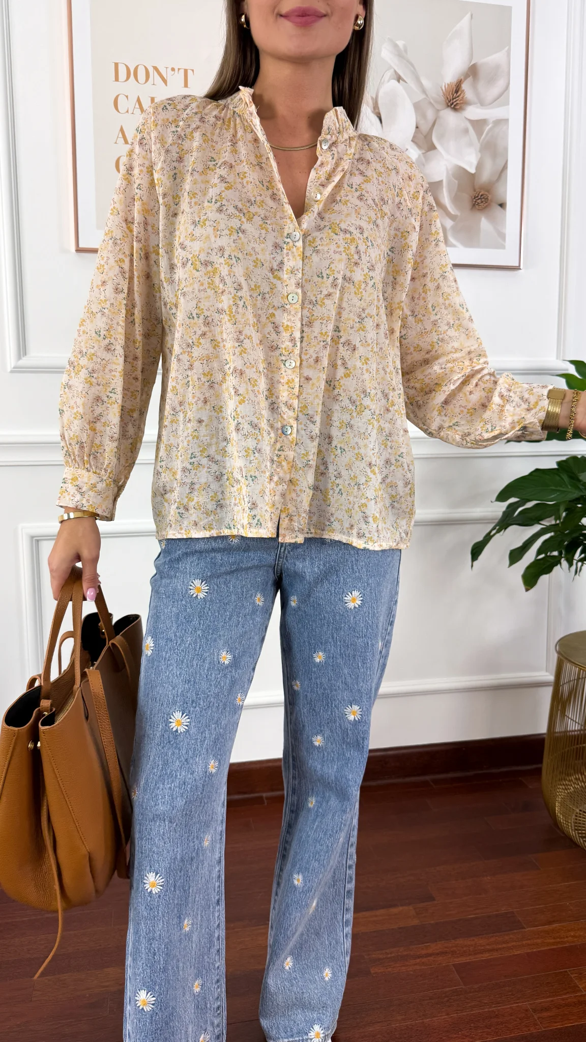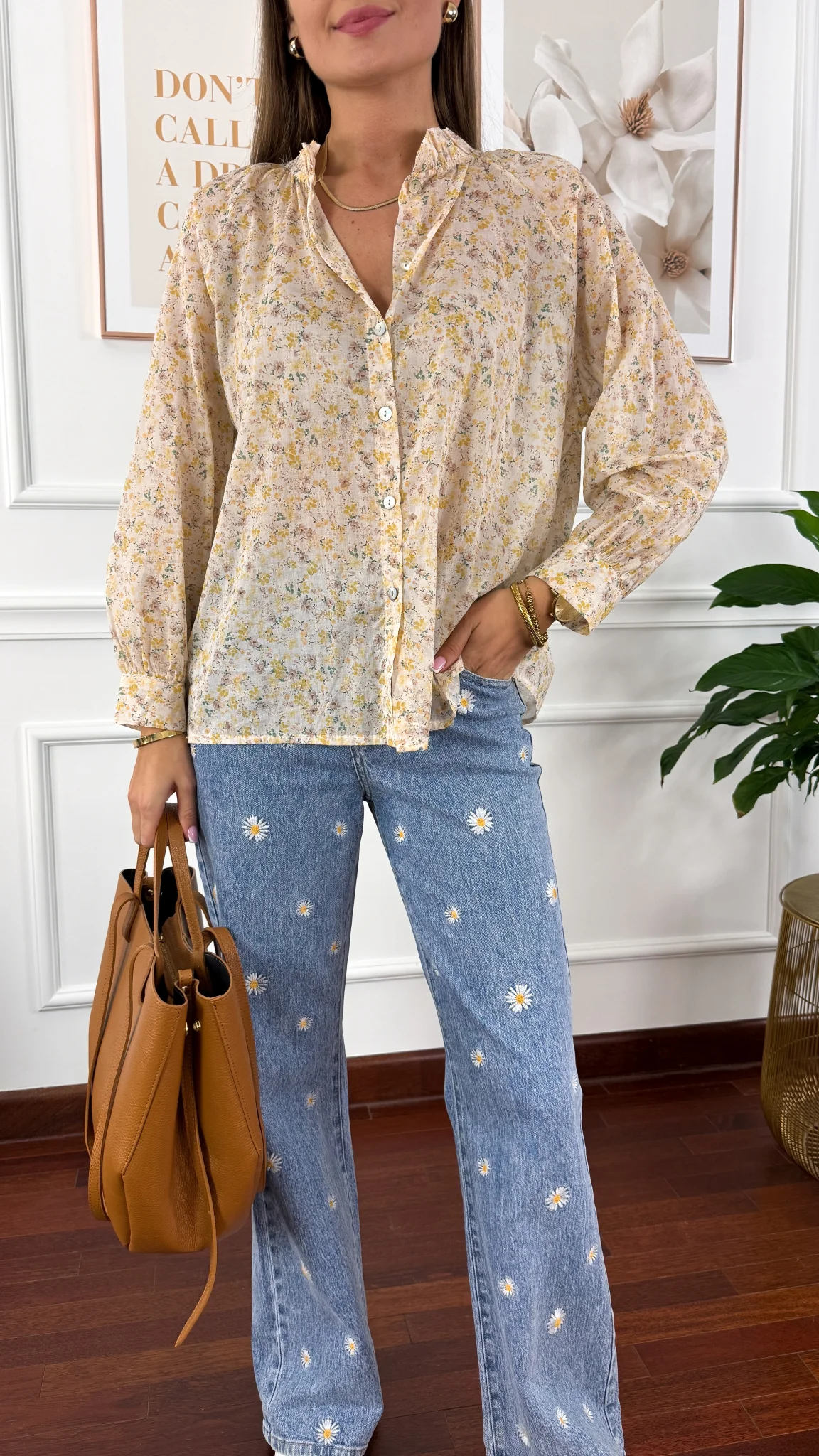 Bawełniana koszula w kwiaty Betta żółta