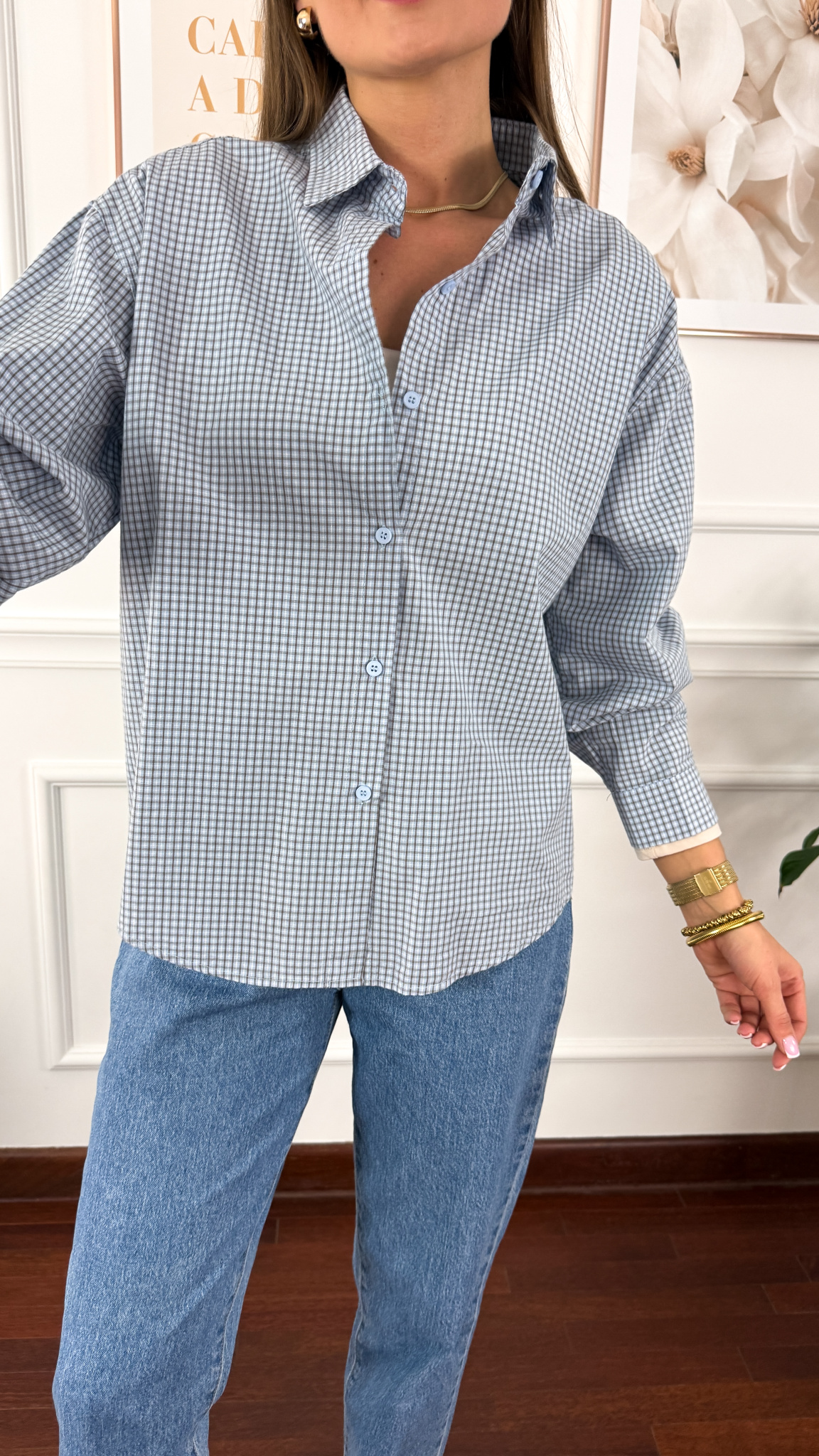 Model sprawdzi się na sylwetkę w rozmiarze od S do XL. Bawełniana koszula w kratę z kołnierzykiem zapinana na guziki. Rękawy zakończone krótkim mankietem zapinanym na guzik.