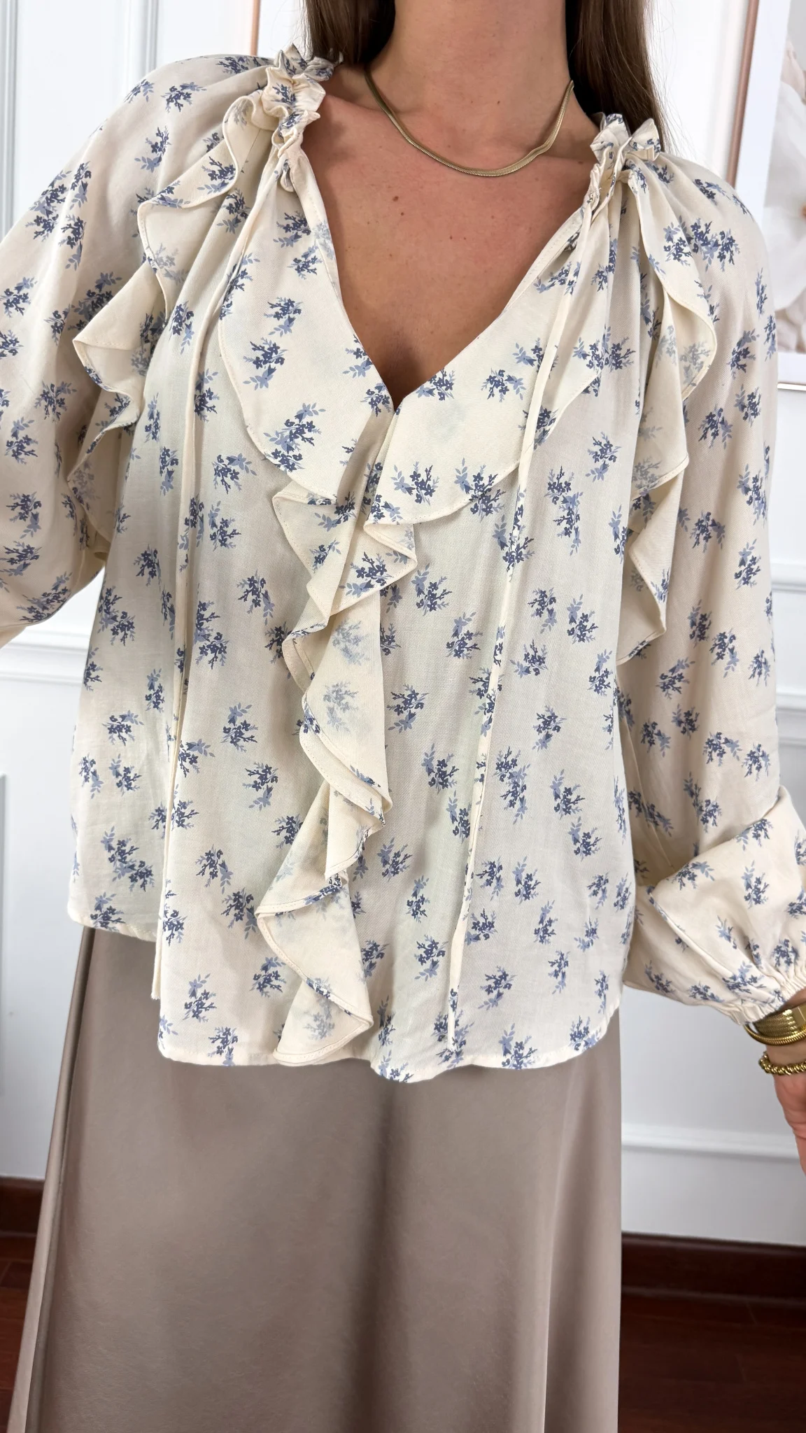 Koszula z falbanką Marta ecru z kwiatami