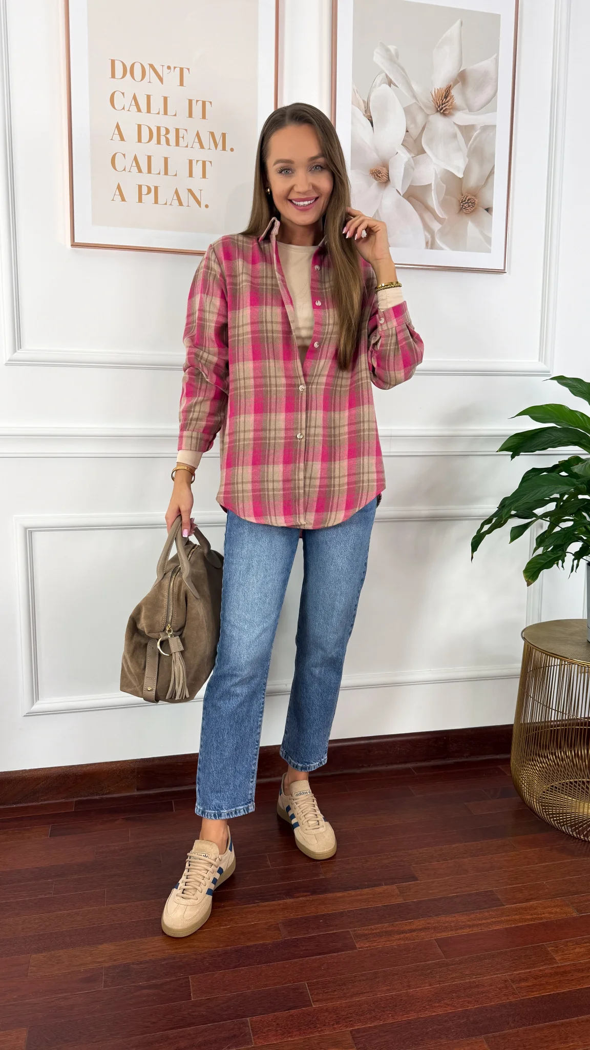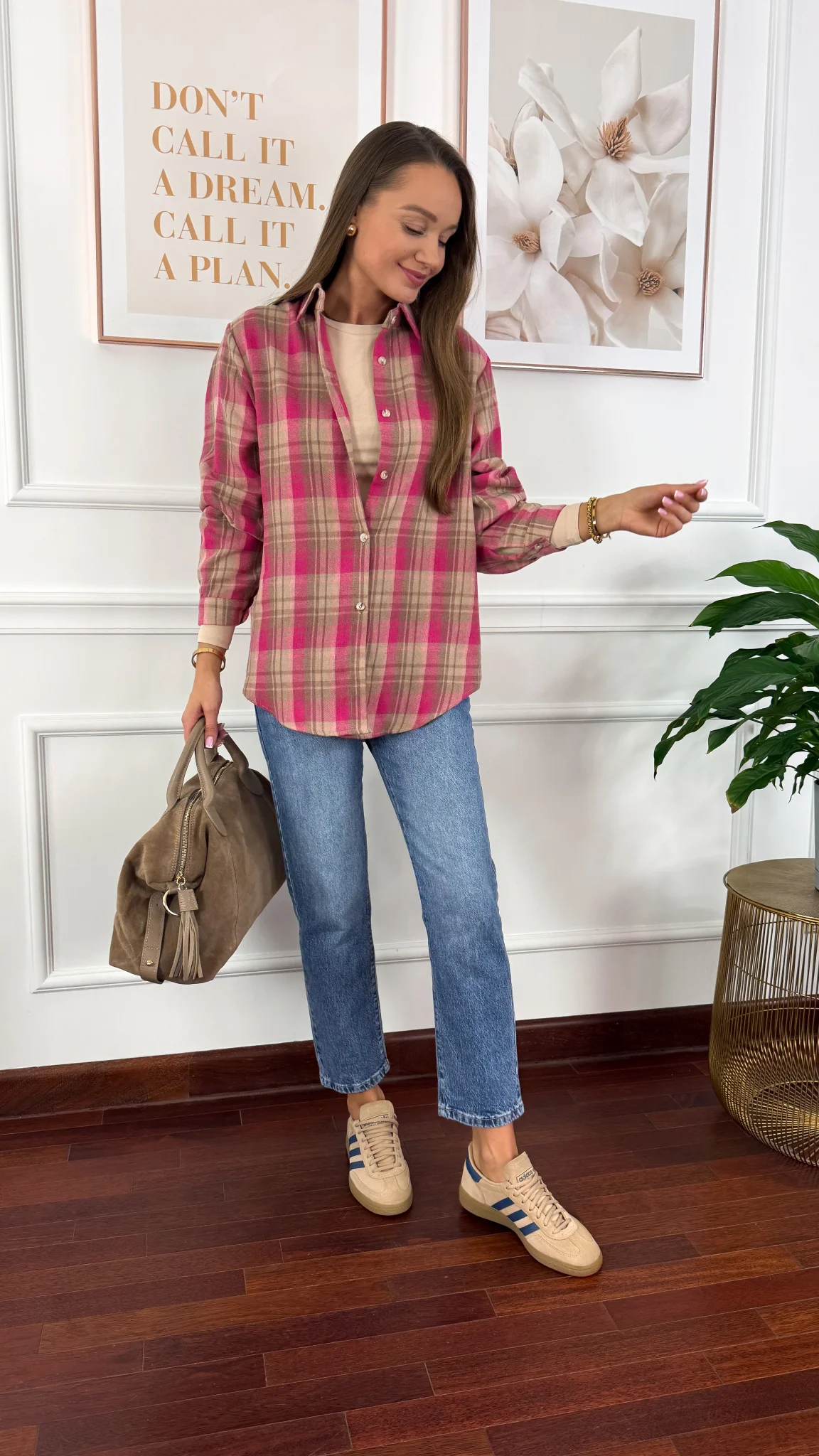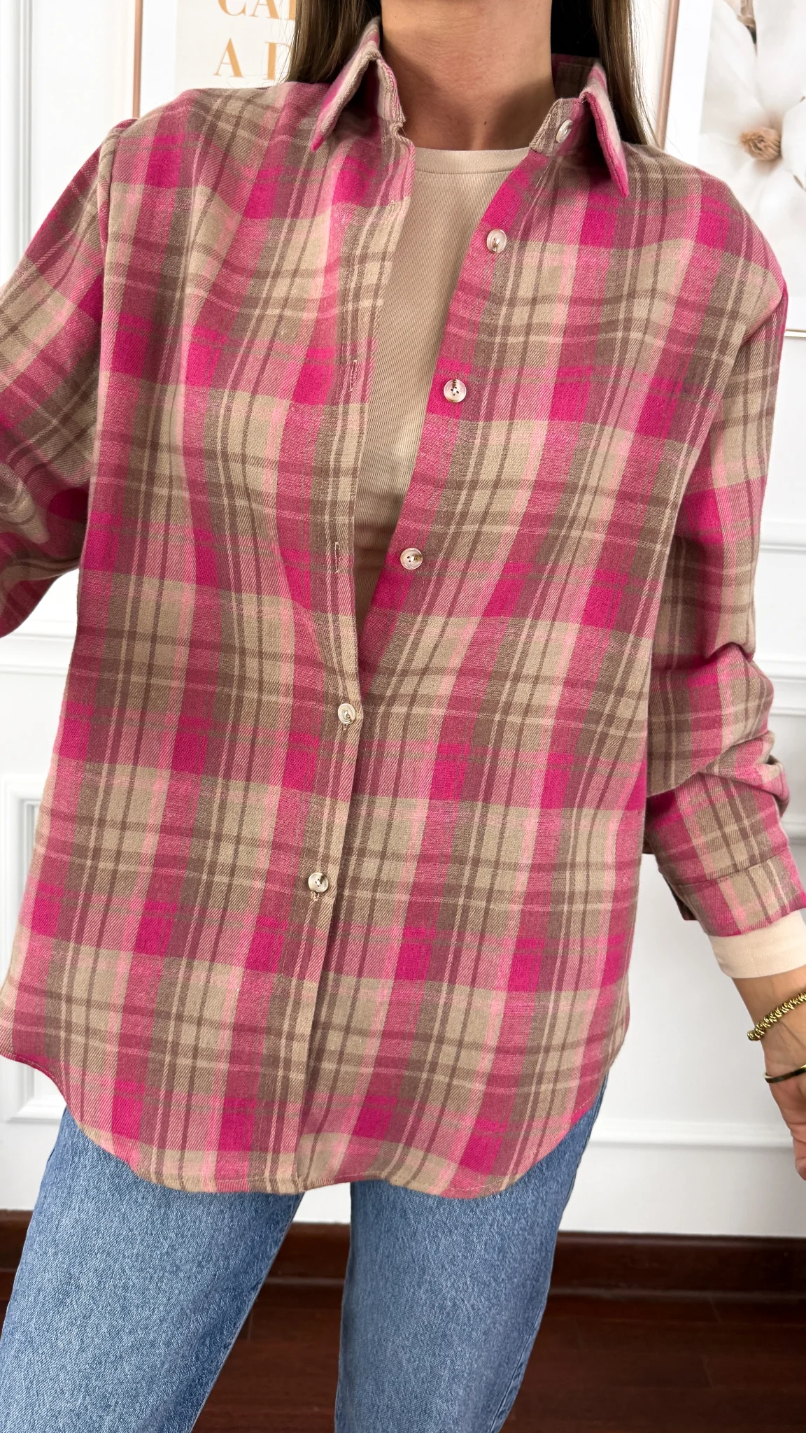 Koszula w kratę Calesia beż-fuksja