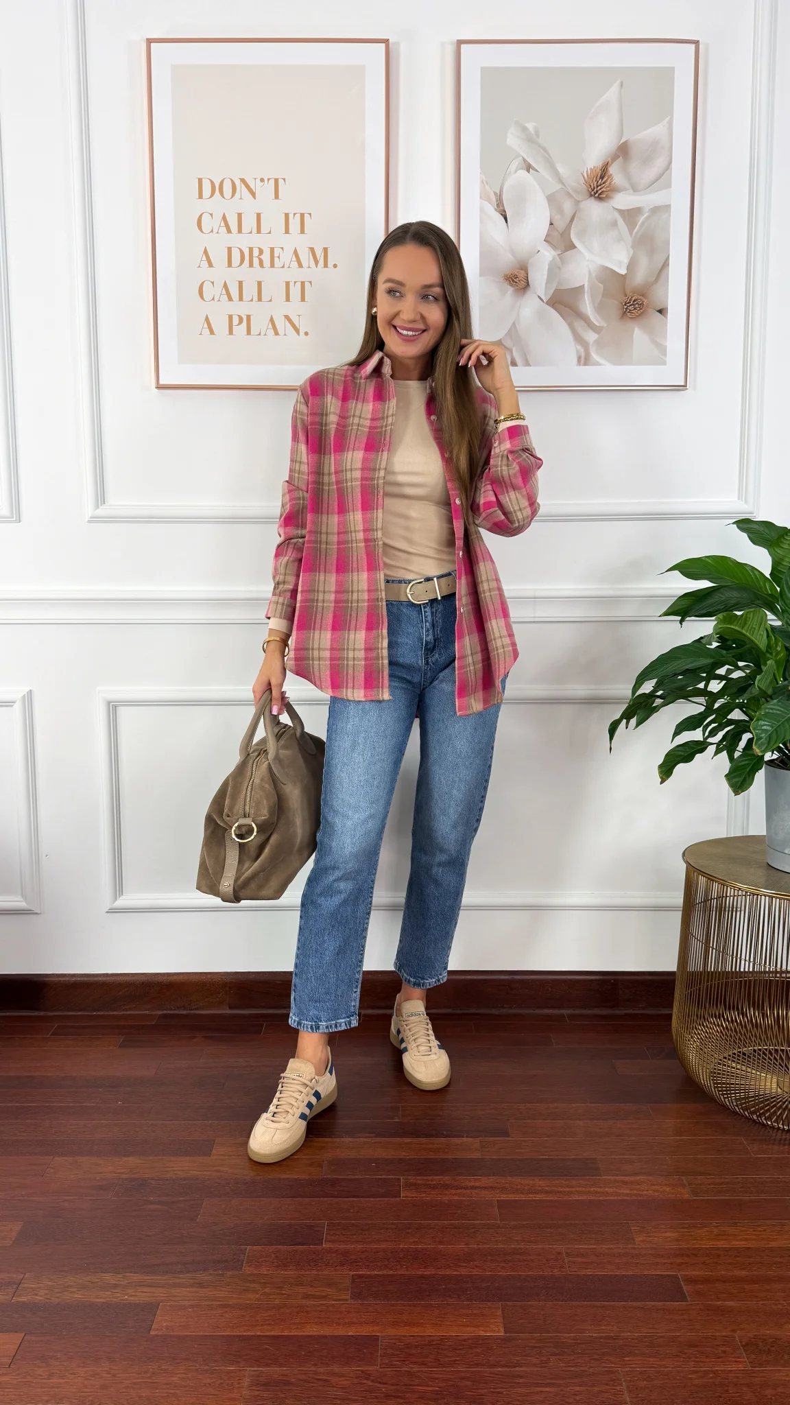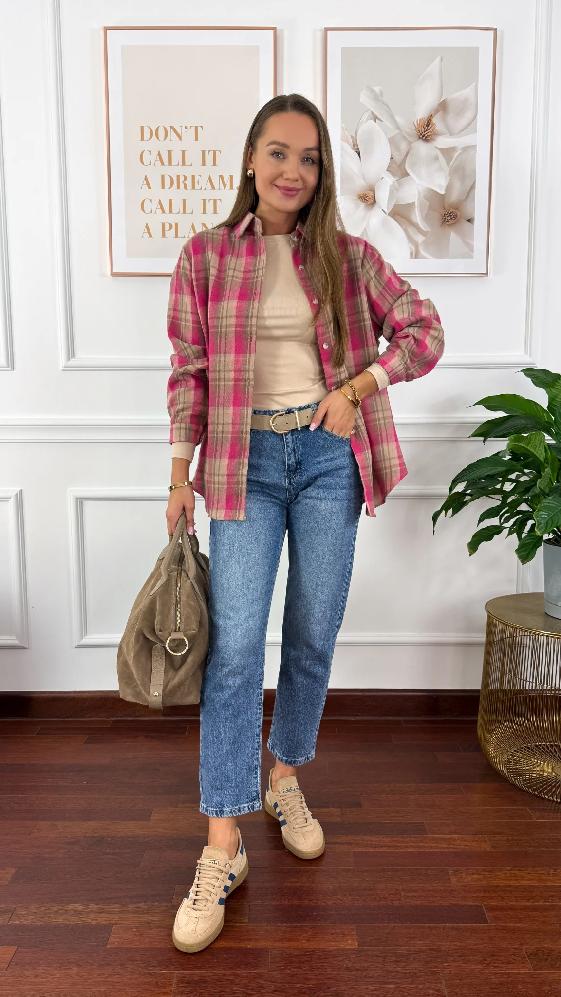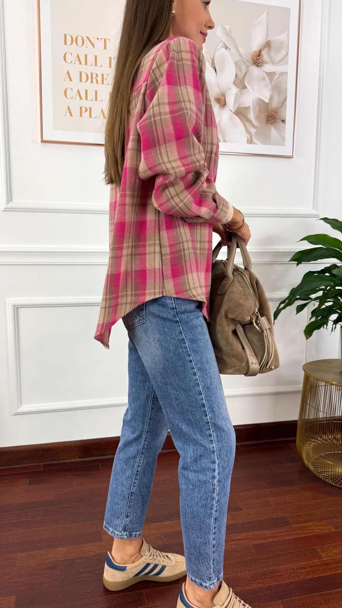 Koszula w kratę Calesia beż-fuksja