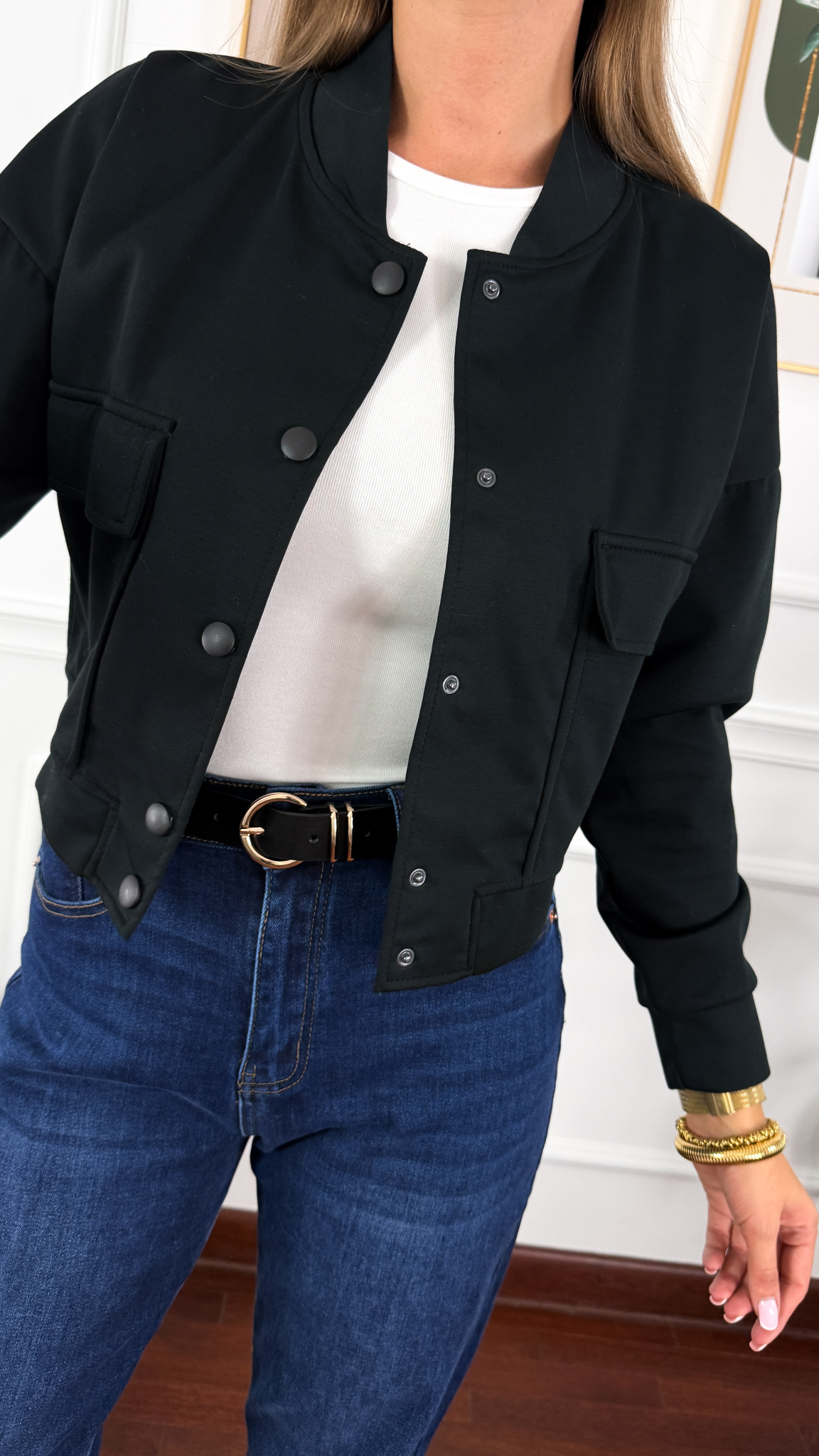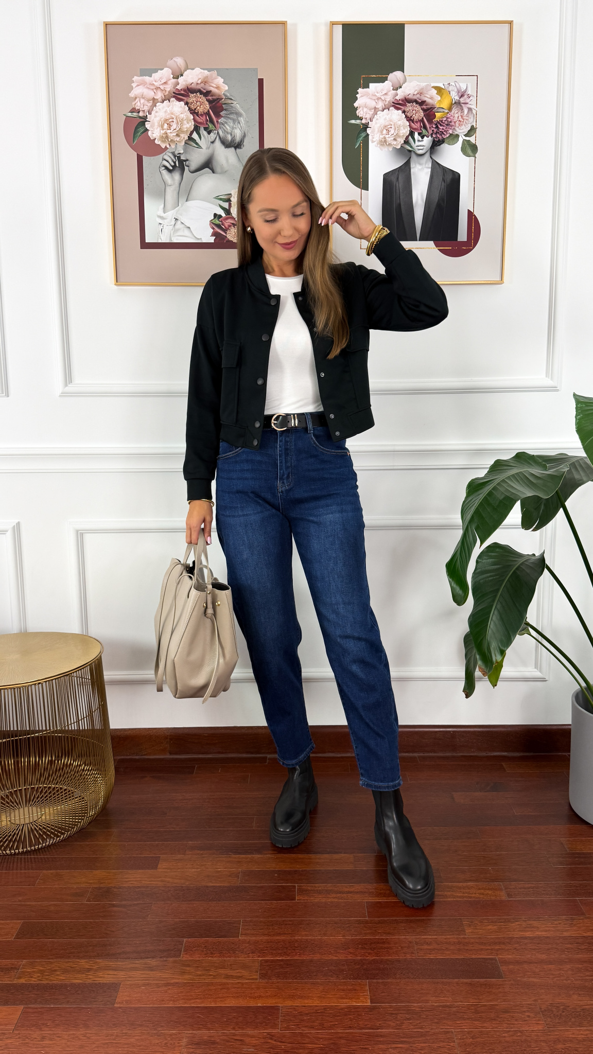 Model sprawdzi się na sylwetkę w rozmiarze od S do L. Bomberka zapinana na zatrzaski. Krótszy fason, który sięga do bioder. Posiada praktyczne kieszonki. Dół oraz rękawy zakończone ściągaczem.