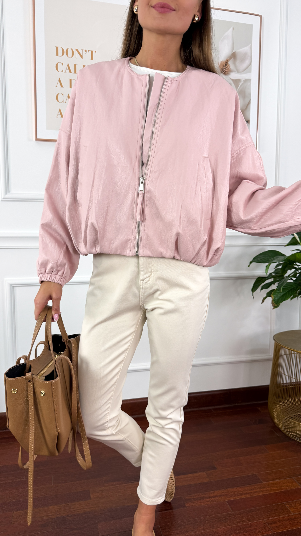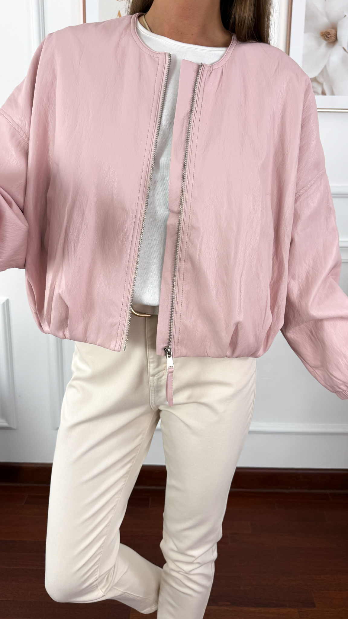 Model sprawdzi się na sylwetkę od S do XL. A'la skórzana bomberka zapinana na zamek. Posiada praktyczne kieszonki. Rękaw oraz dół zakończony gumką.
