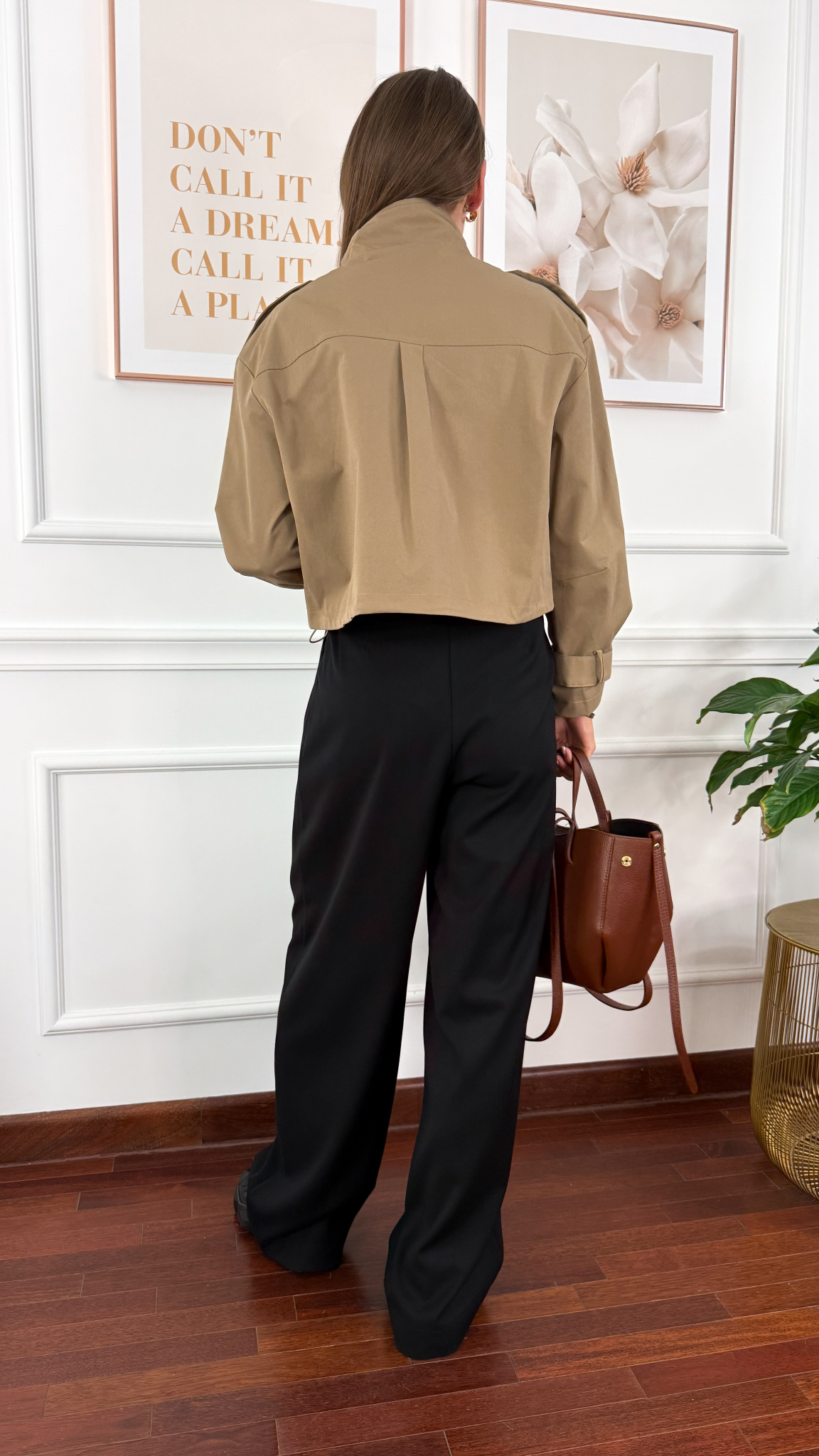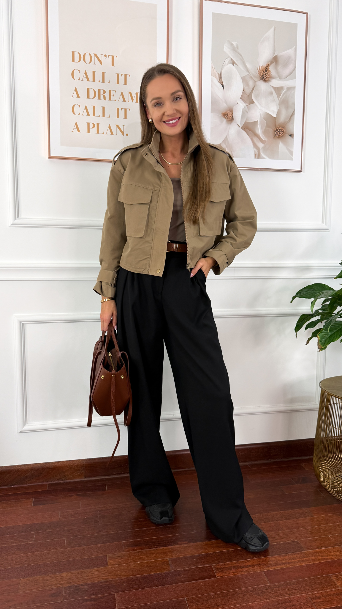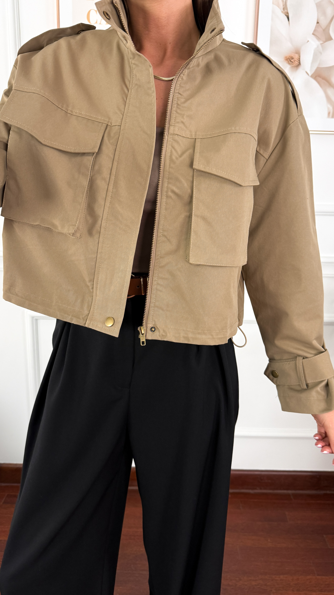Kurtka zapinana na zamek oraz zatrzaski Posiada ozdobne pagony na ramionach oraz praktyczne kieszenie. Od wewnątrz na dole, gumka do regulowania.