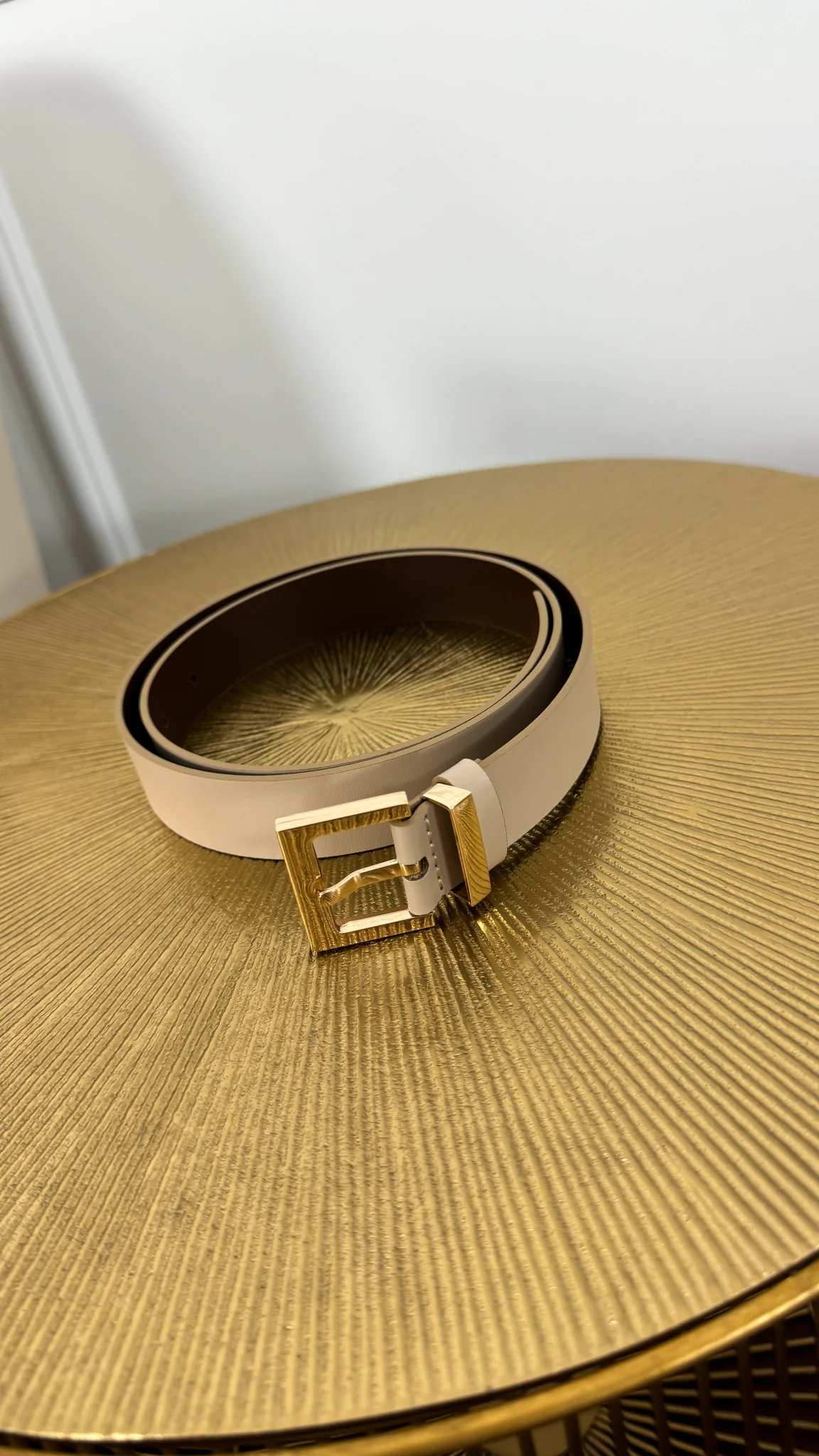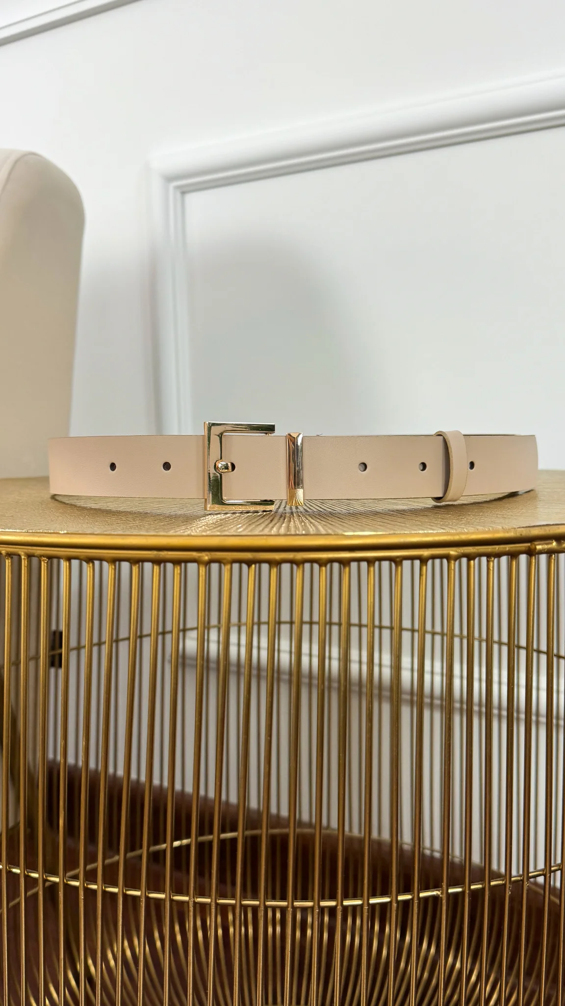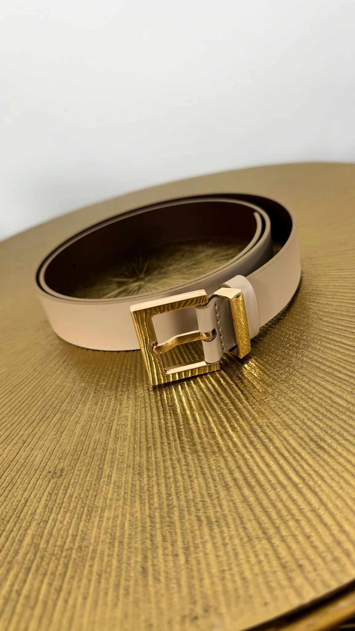 Pasek skórzany Harlow beżowo-złoty