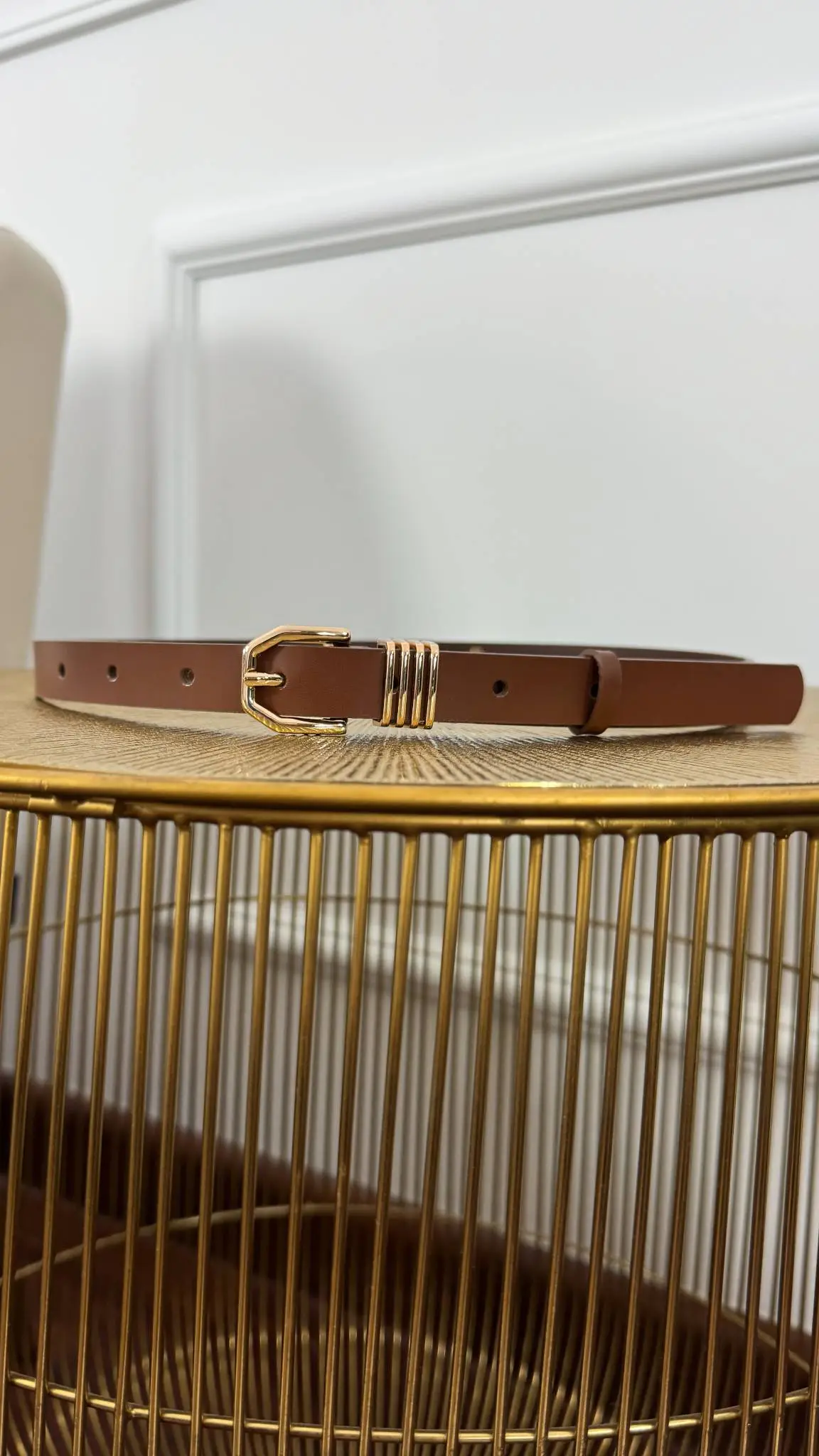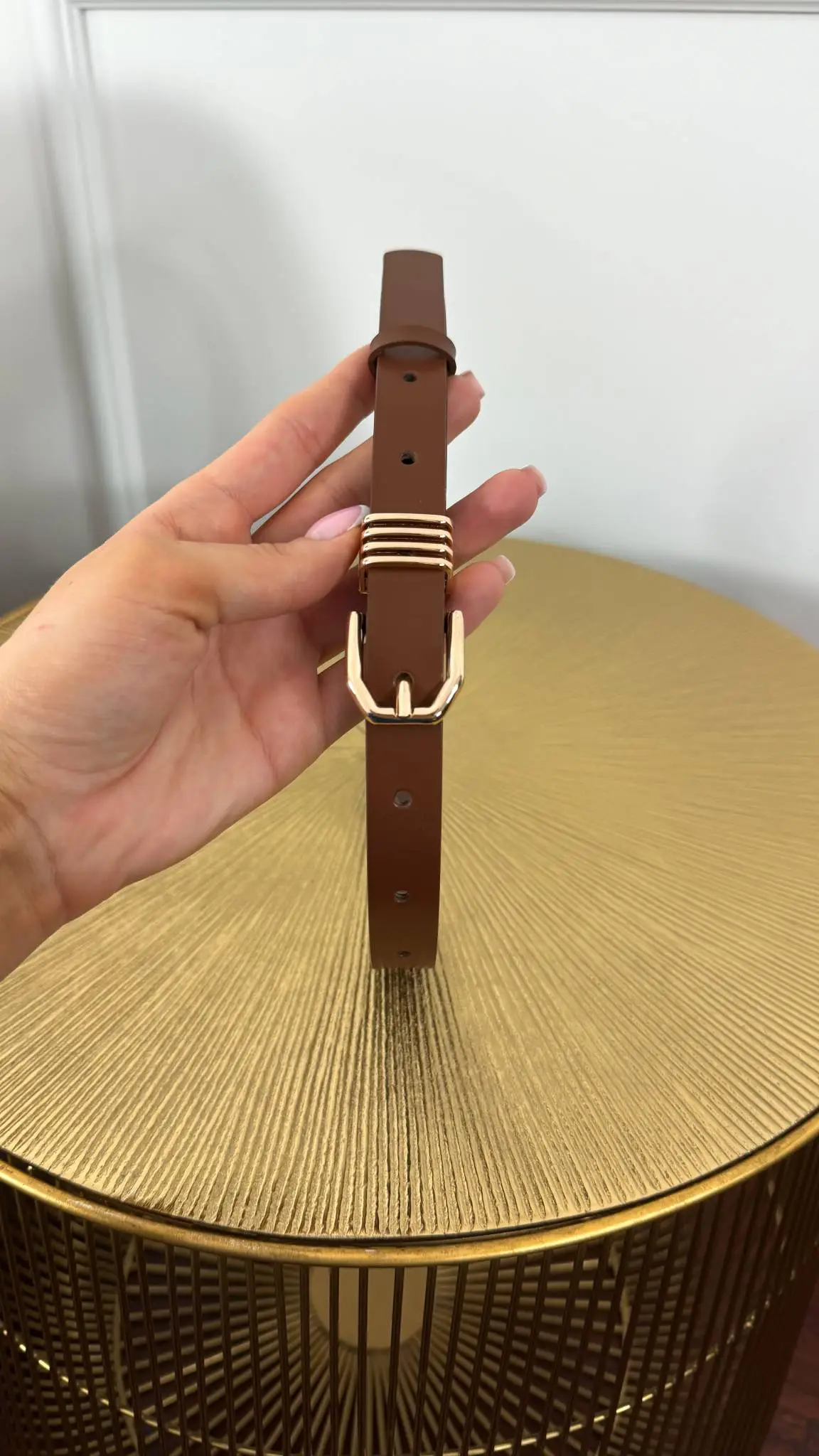 Pasek skórzany Erin brązowy-złoty