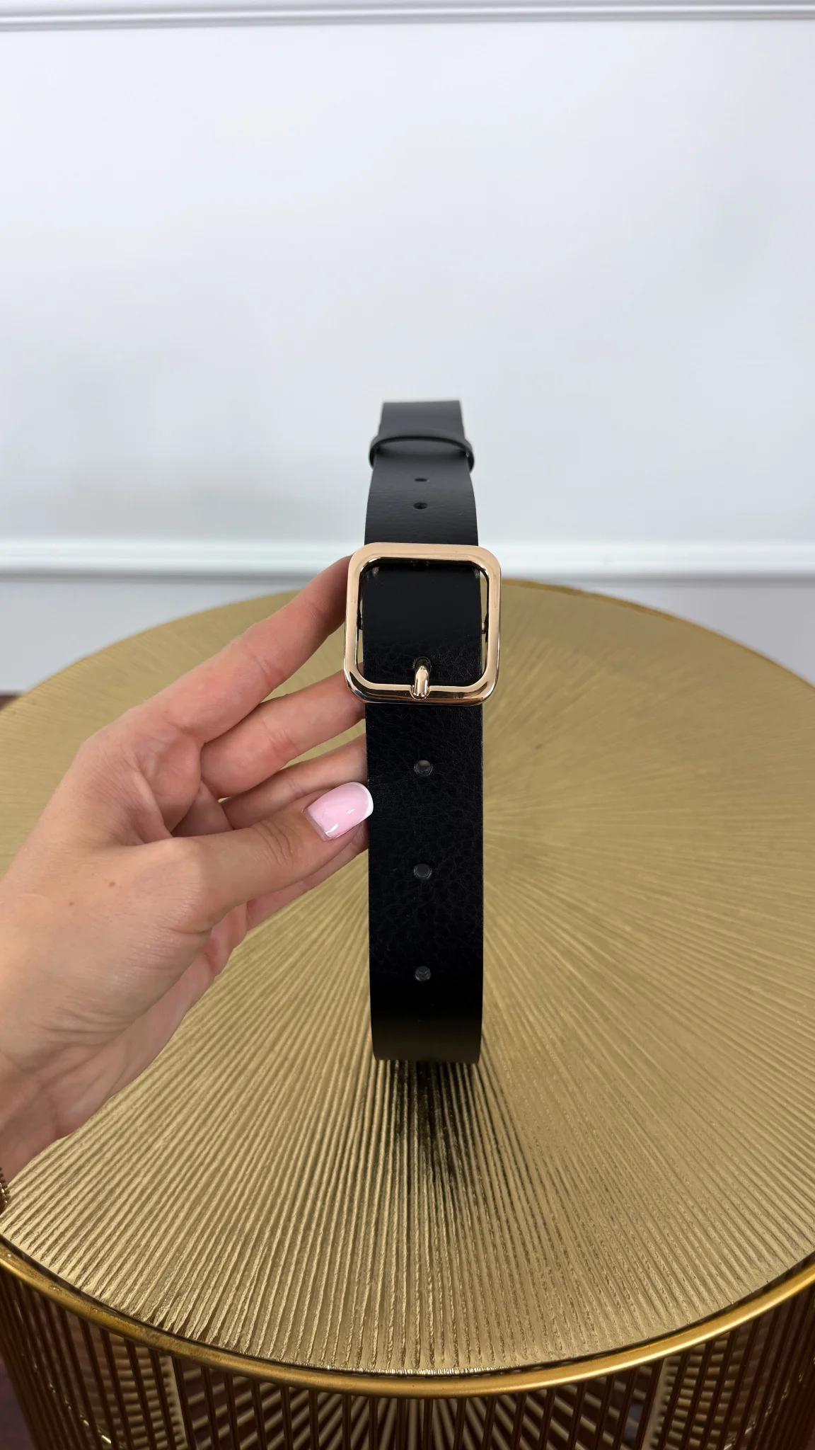 Pasek skórzany Stacy czarny-złoty