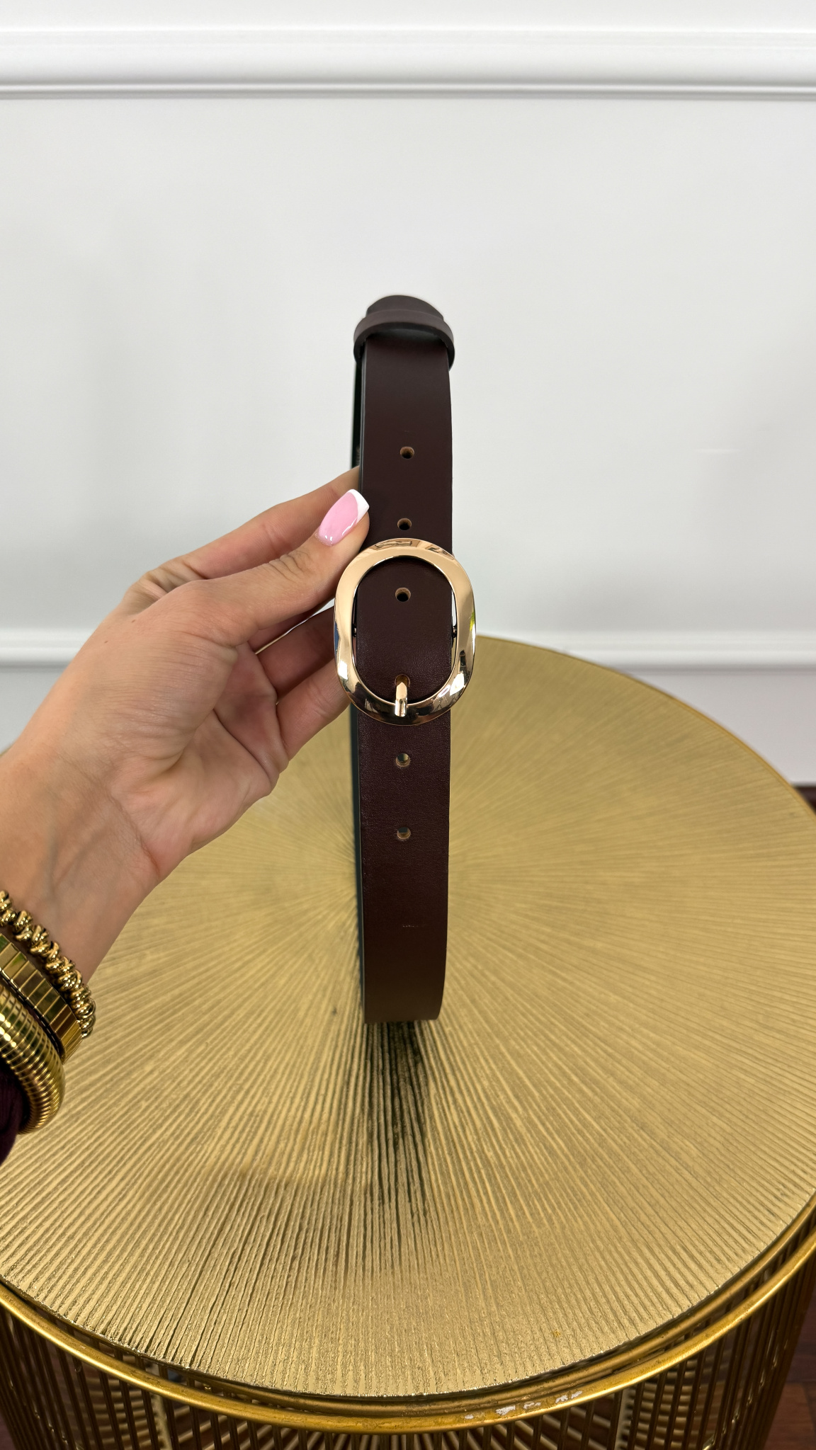 Stylowy pasek polskiej produkcji wykonany z skóry naturalnej z pozłacaną klamrą. Rewelacyjna jakość.
