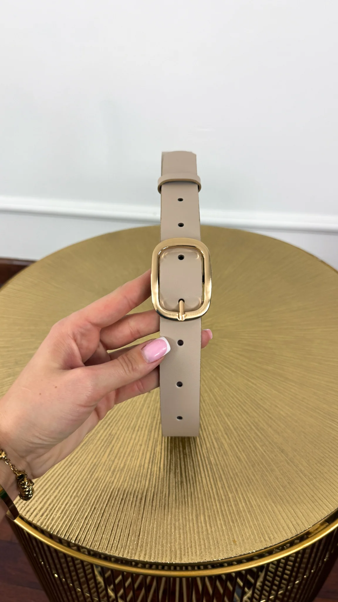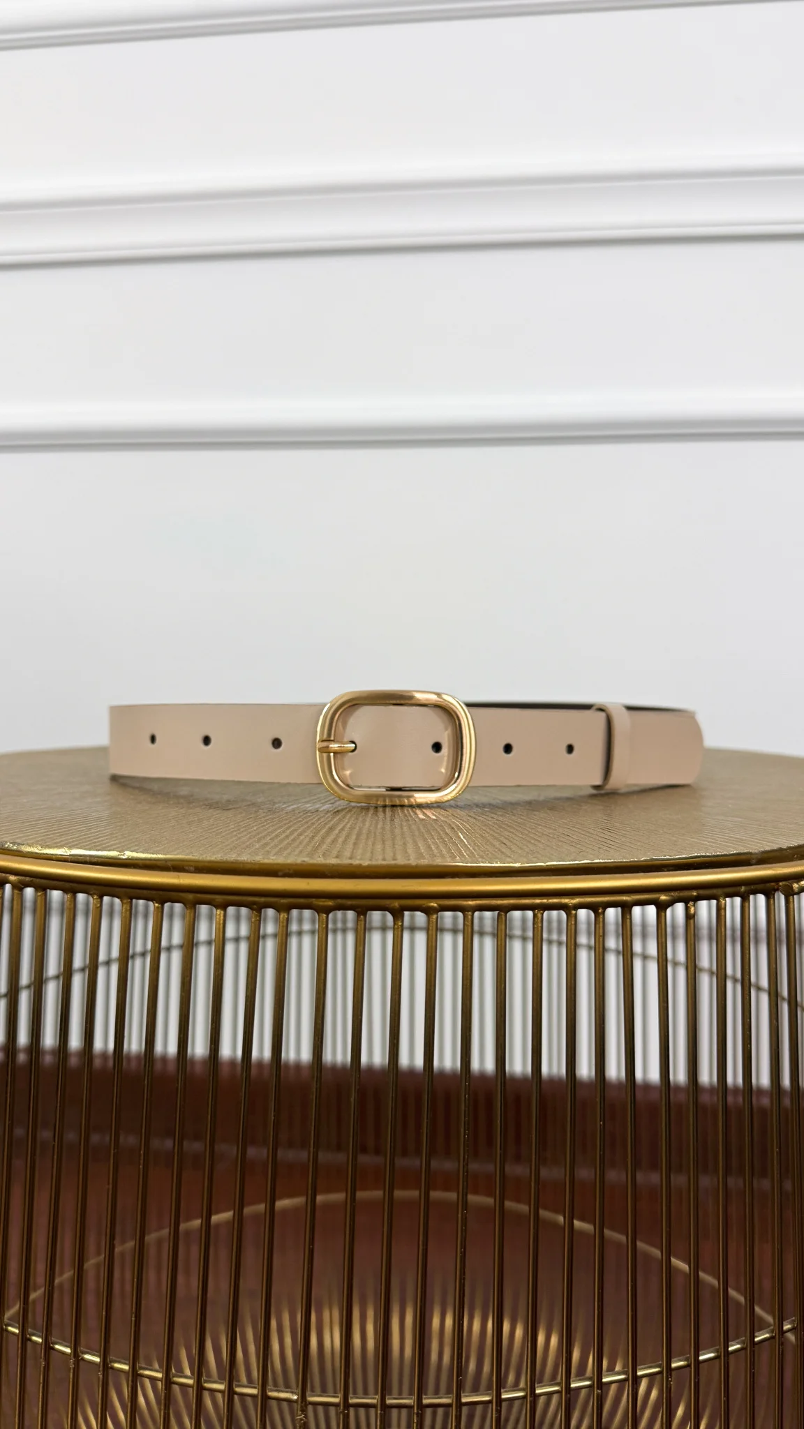 Skórzany pasek Nila beżowo-złoty