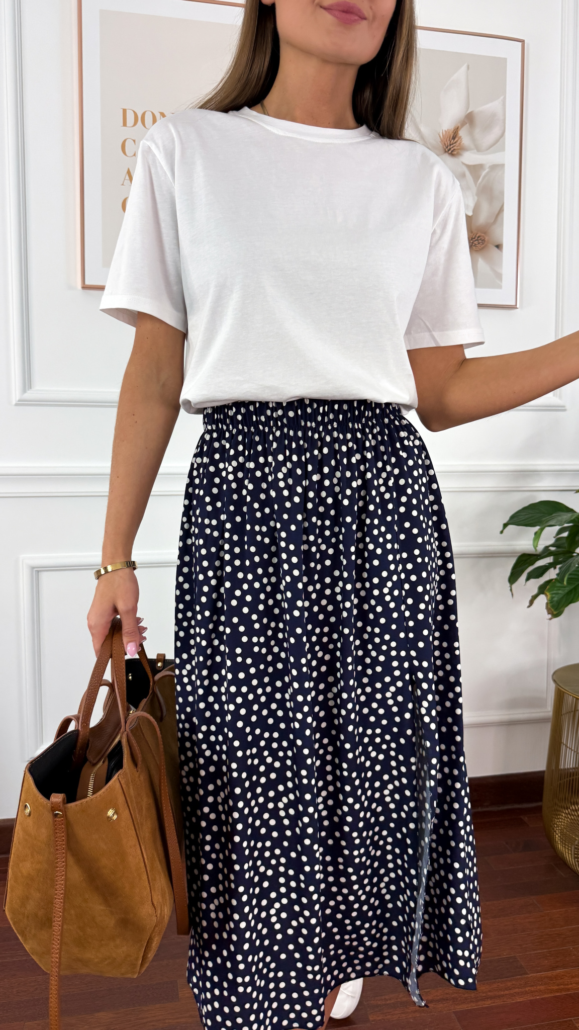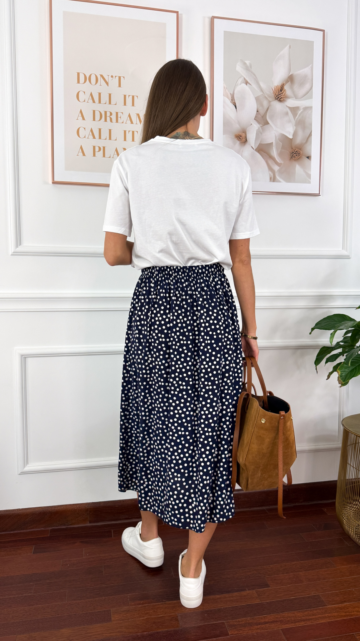 Wiskozowa spódnica Dani granatowa w kropki