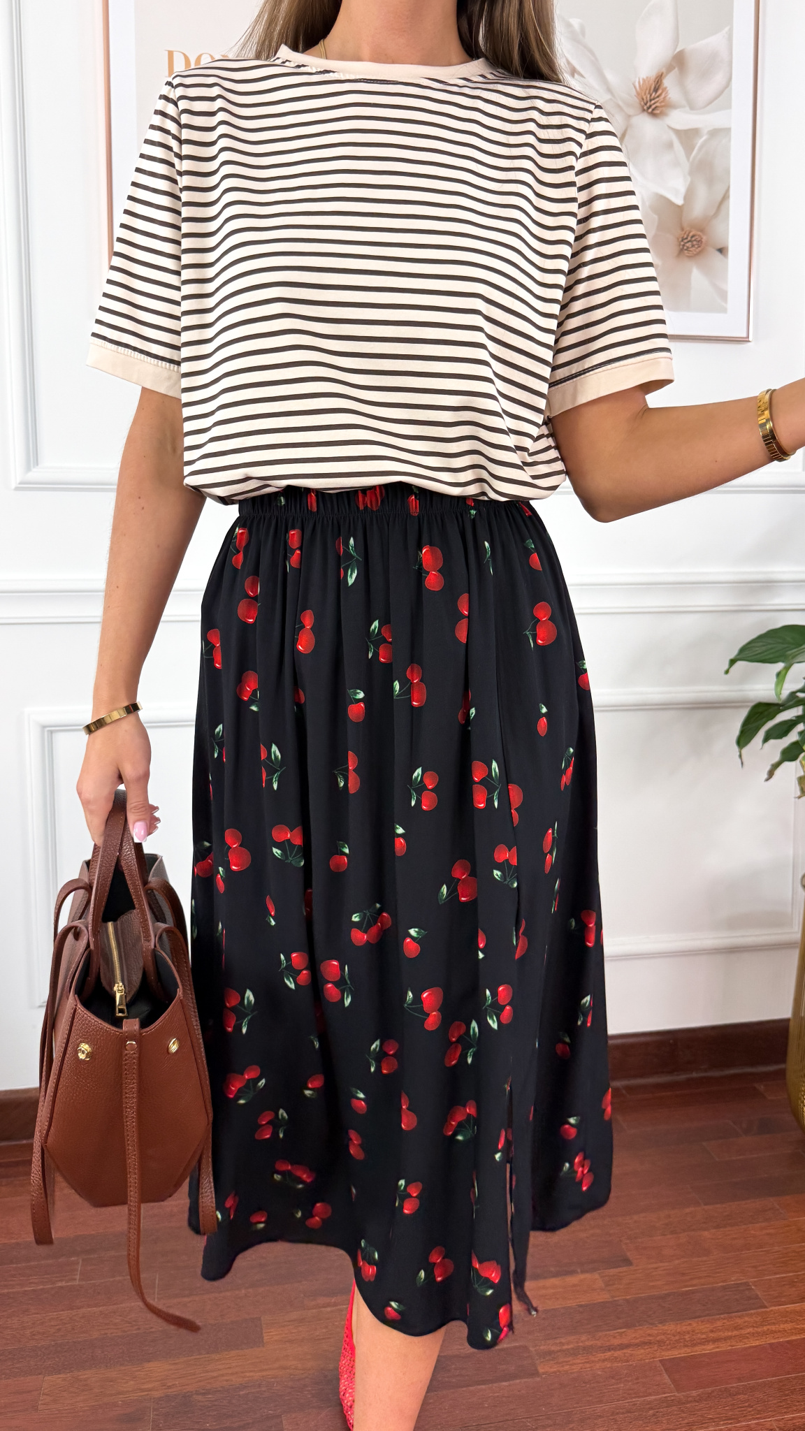 Wiskozowa spódnica Dani czarna w wiśnie