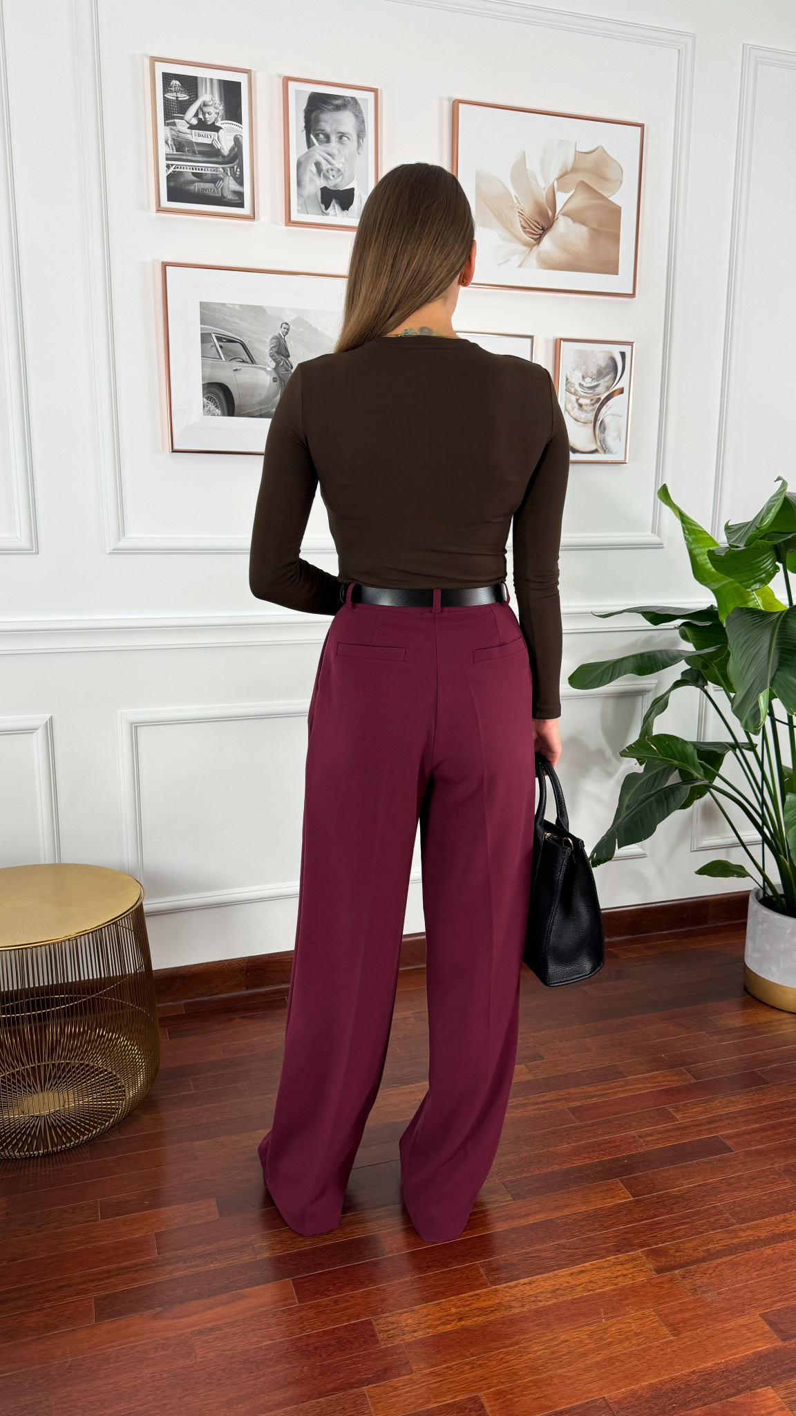 Wiskozowe szerokie spodnie Stay burgundowe
