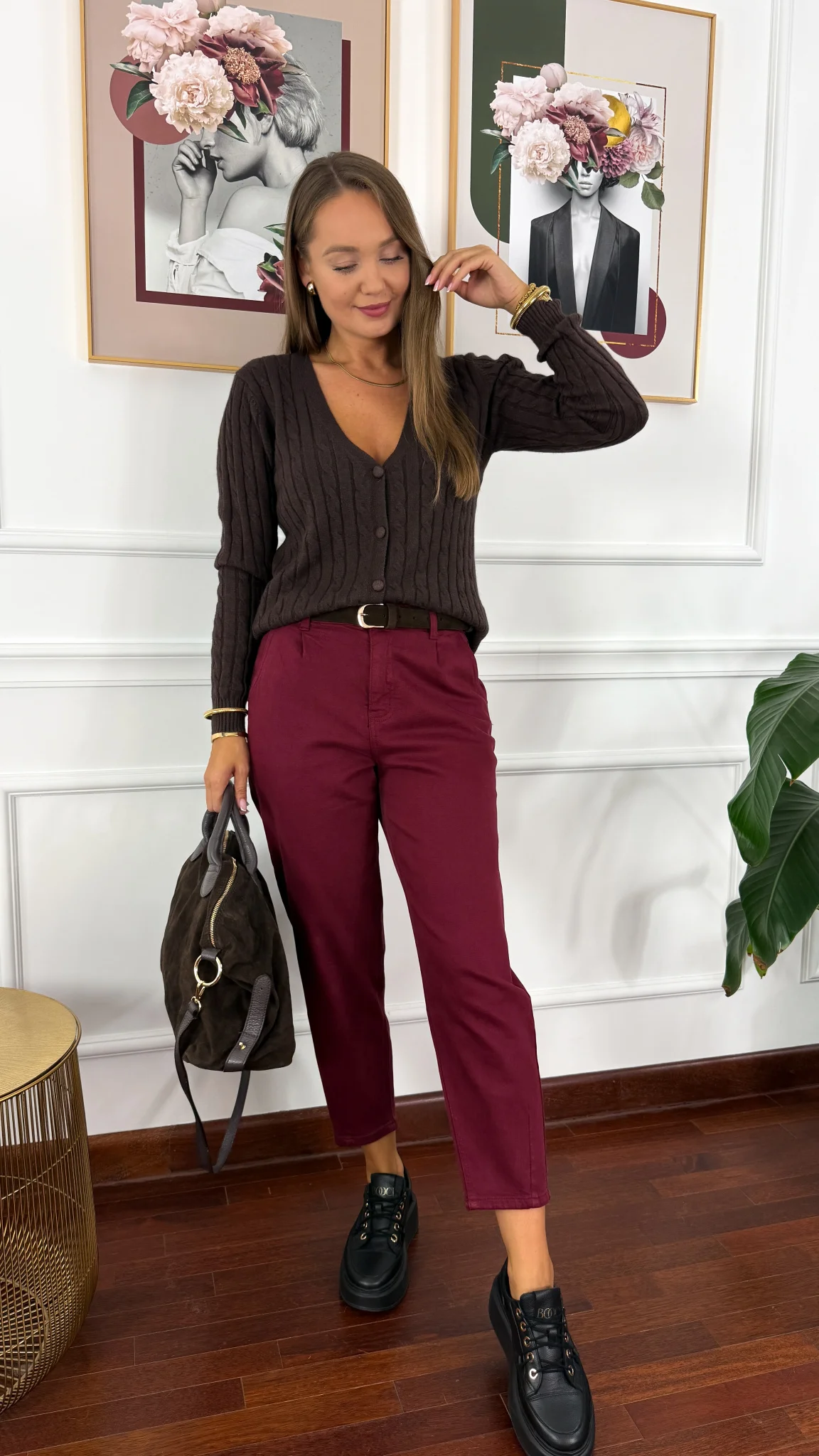 Materiałowe spodnie typu balloon z wysokim stanem.