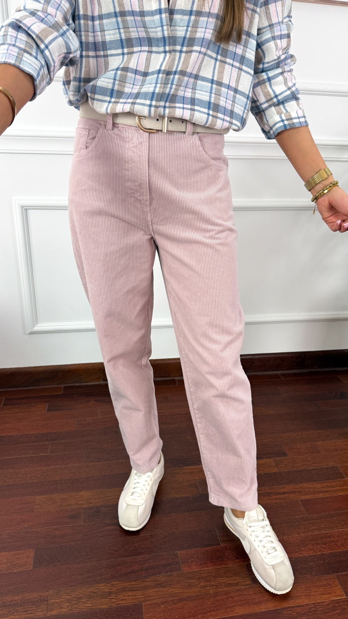 Bawełniane spodnie mom fit. Posiadają Praktyczne kieszonki. Materiał nie prześwitujący.