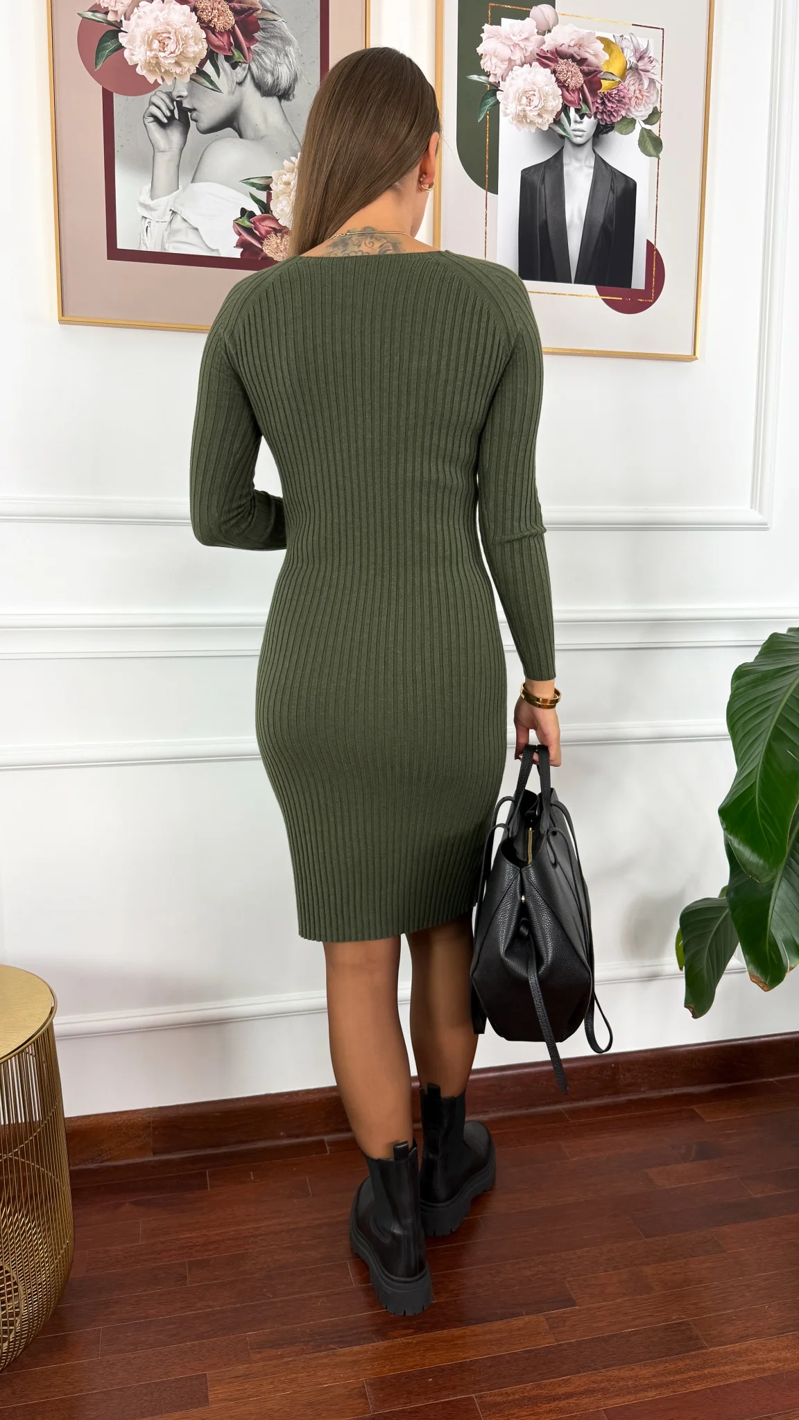 Model sprawdzi się na sylwetkę od S do XL. Dopasowana dzianinowa sukienka z długim rękawem oraz okrągłym dekoltem przy szyi. Bardzo elastyczny prążkowany materiał.