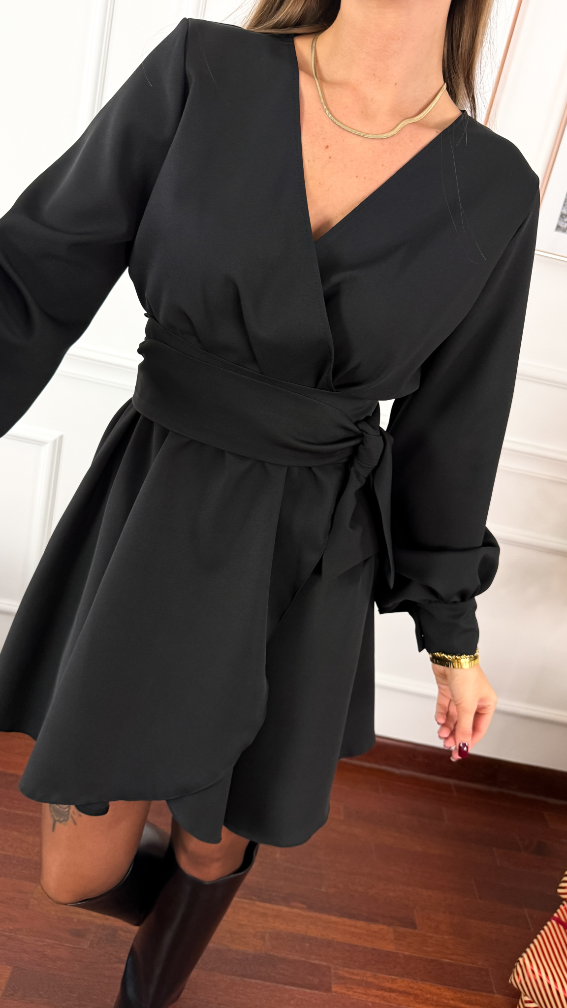 Model sprawdzi się na sylwetkę od S do L. Jest to model przekładany, który pozwala idealnie dopasować szerokość sukienki do sylwetki. Pod żebrami wszyta guma. Rękawy zakończone mankietem zapinane na złote guziki.