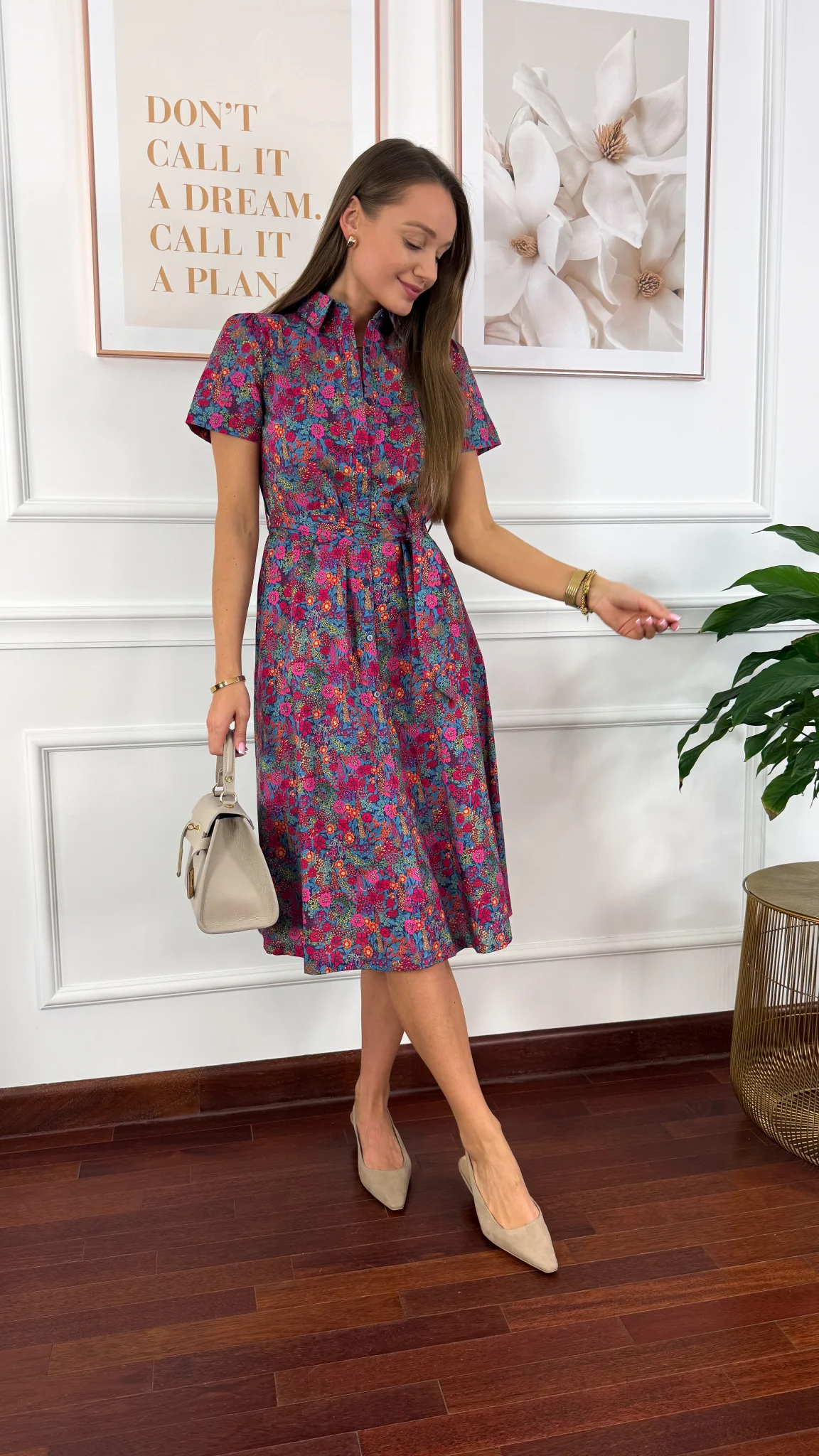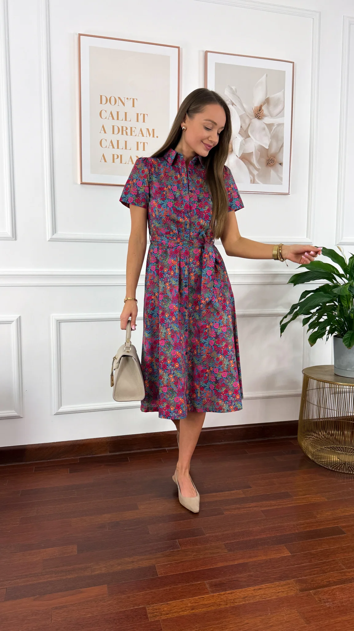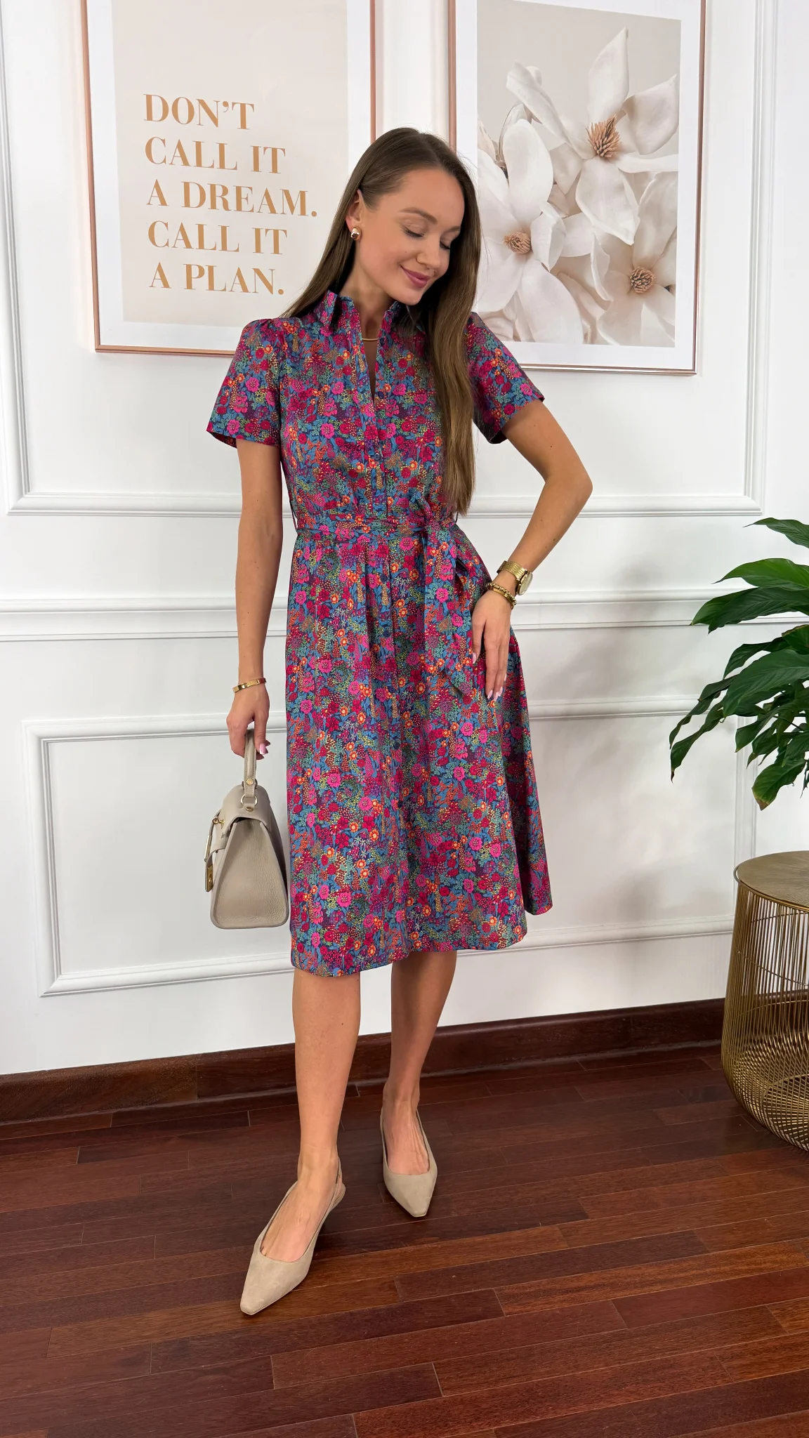Bawełniana sukienka zapinana przez całą długość na guziki. Posiada praktyczne kieszonki. Sprzedawana w zestawie z paskiem.