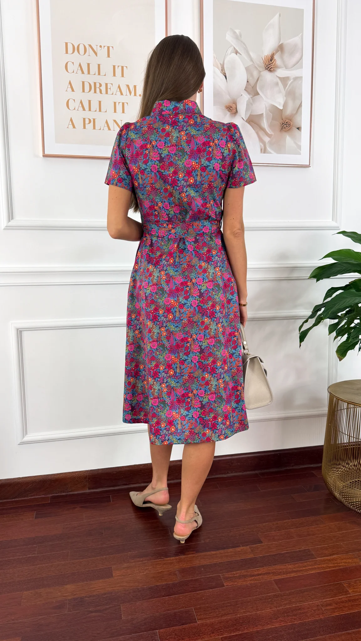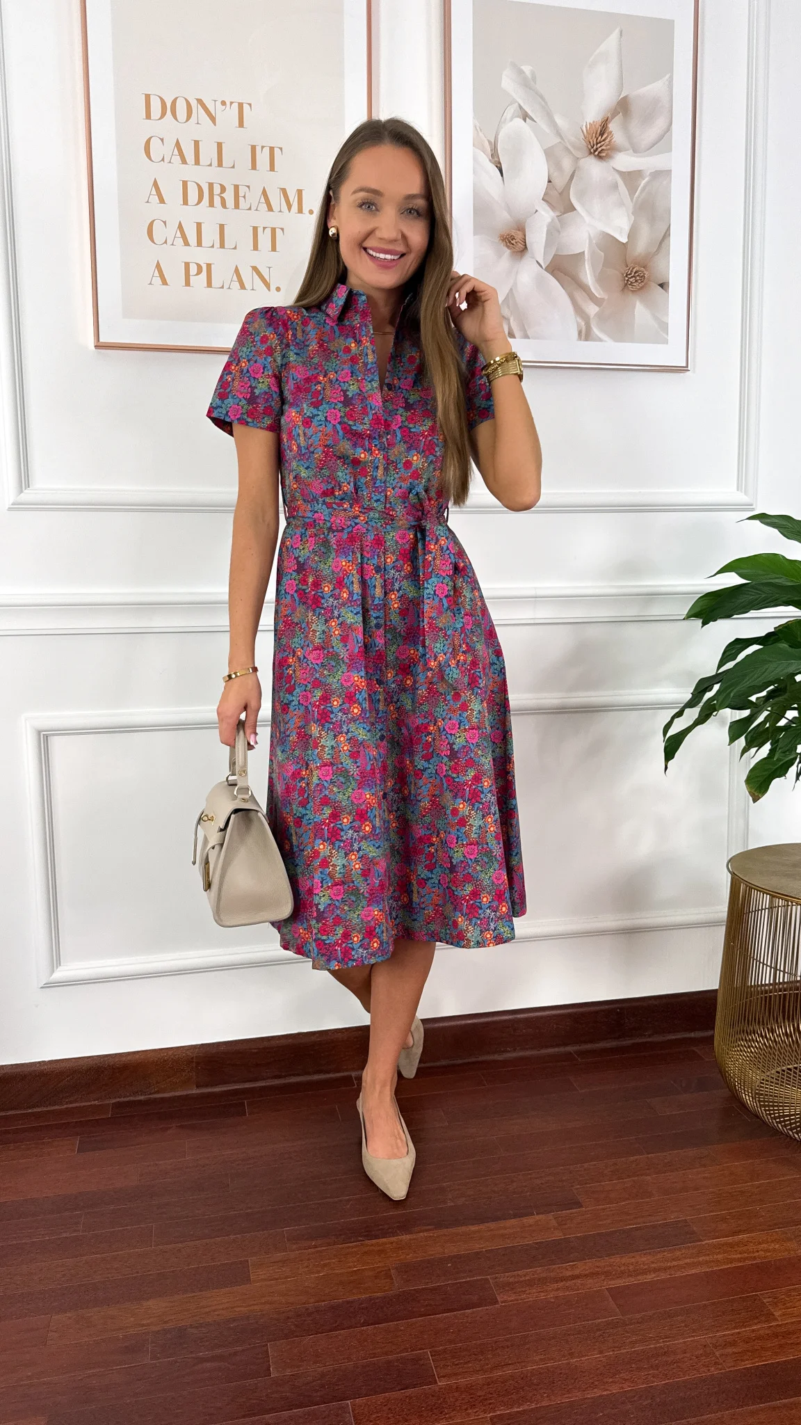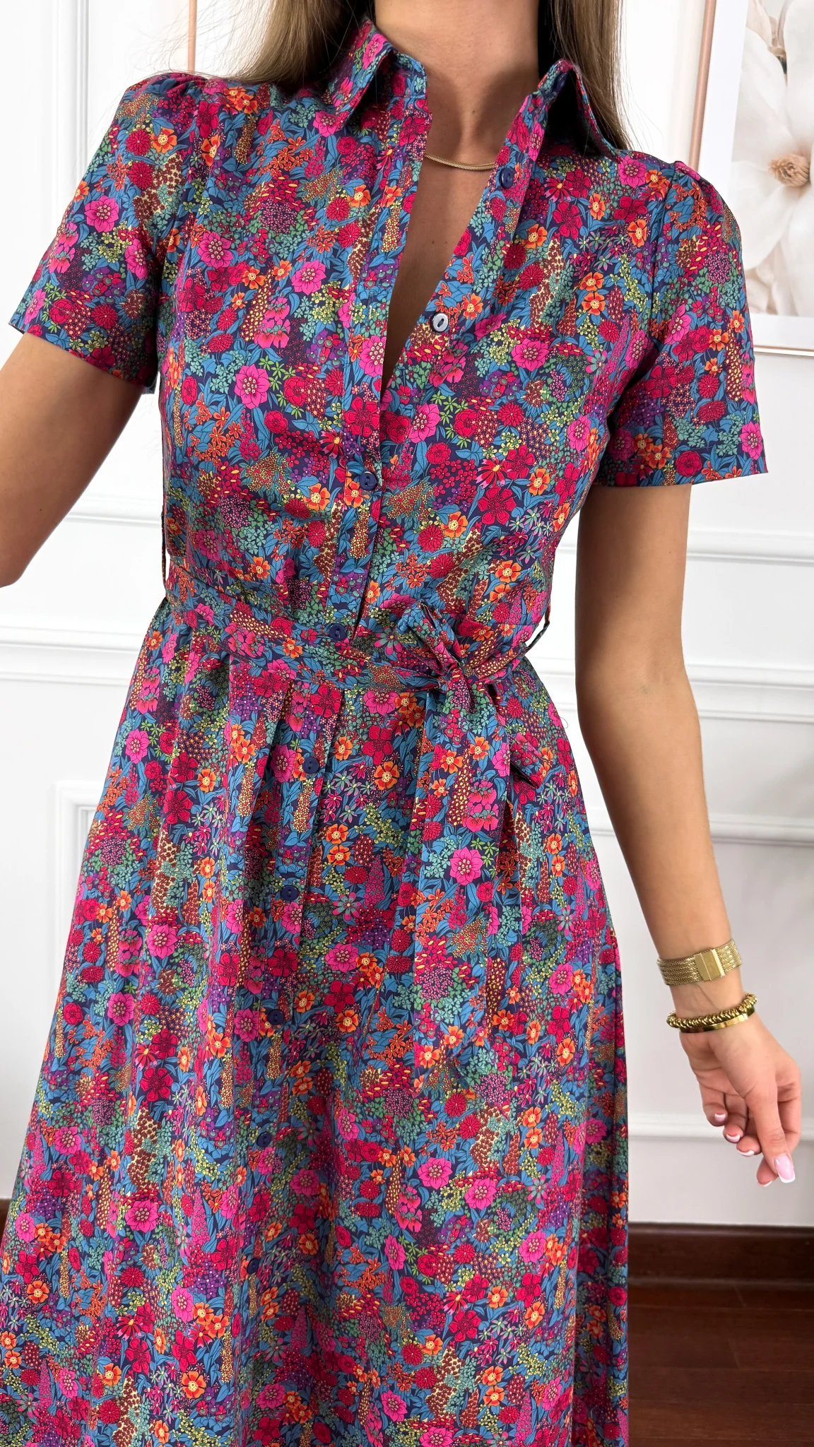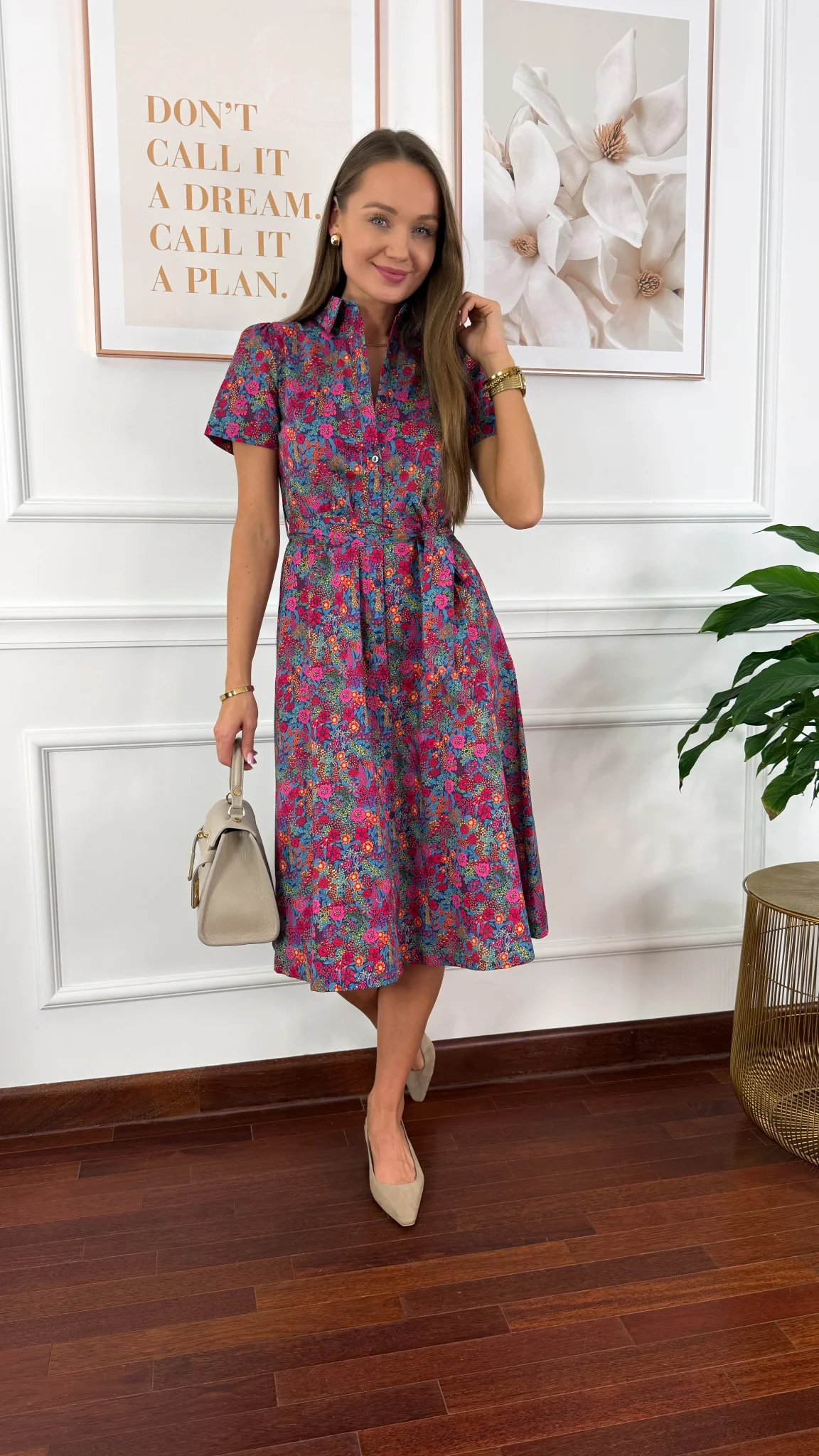 Bawełniana sukienka zapinana przez całą długość na guziki. Posiada praktyczne kieszonki. Sprzedawana w zestawie z paskiem.