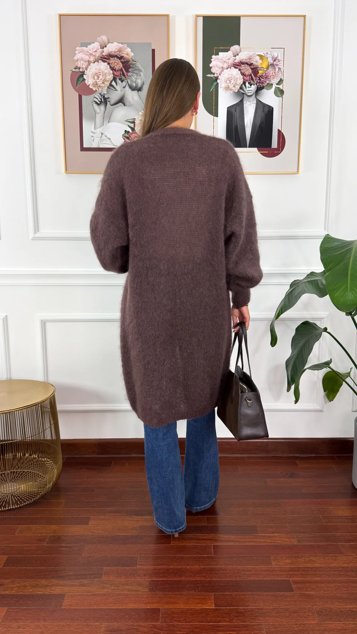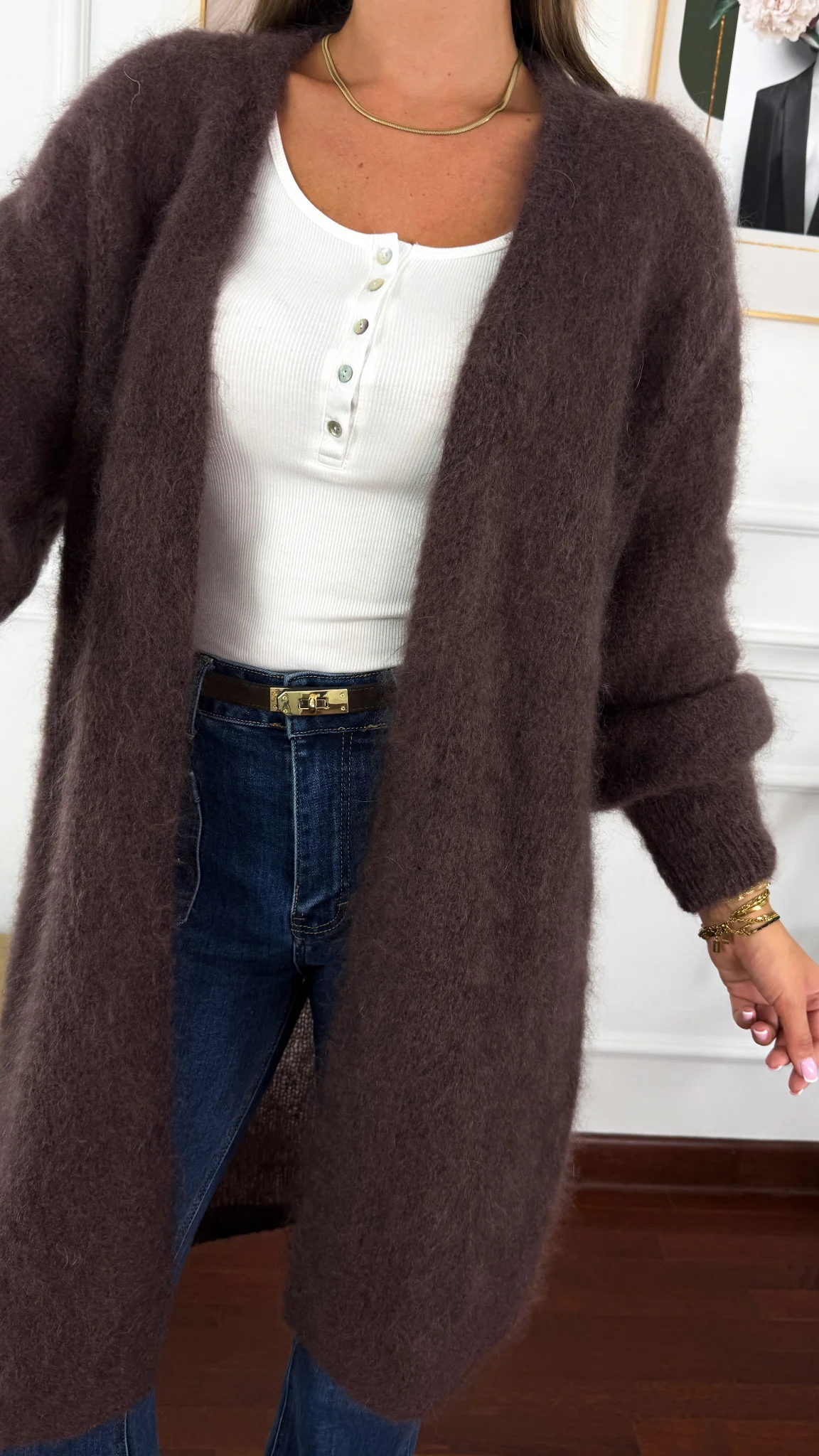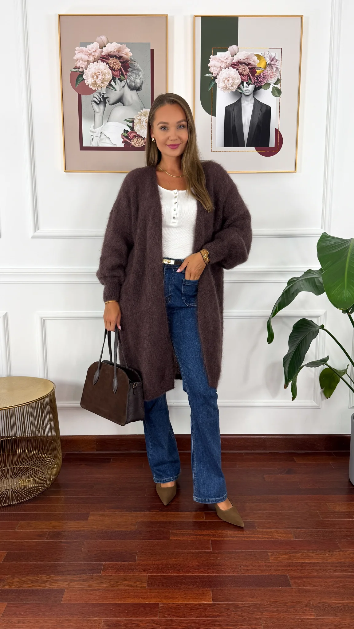 Model sprawdzi się na sylwetkę od S do L. Moherowy długi kardigan. Przez naturalny skład, sweter jest bardzo ciepły, a jednocześnie lekki. Jakość premium.