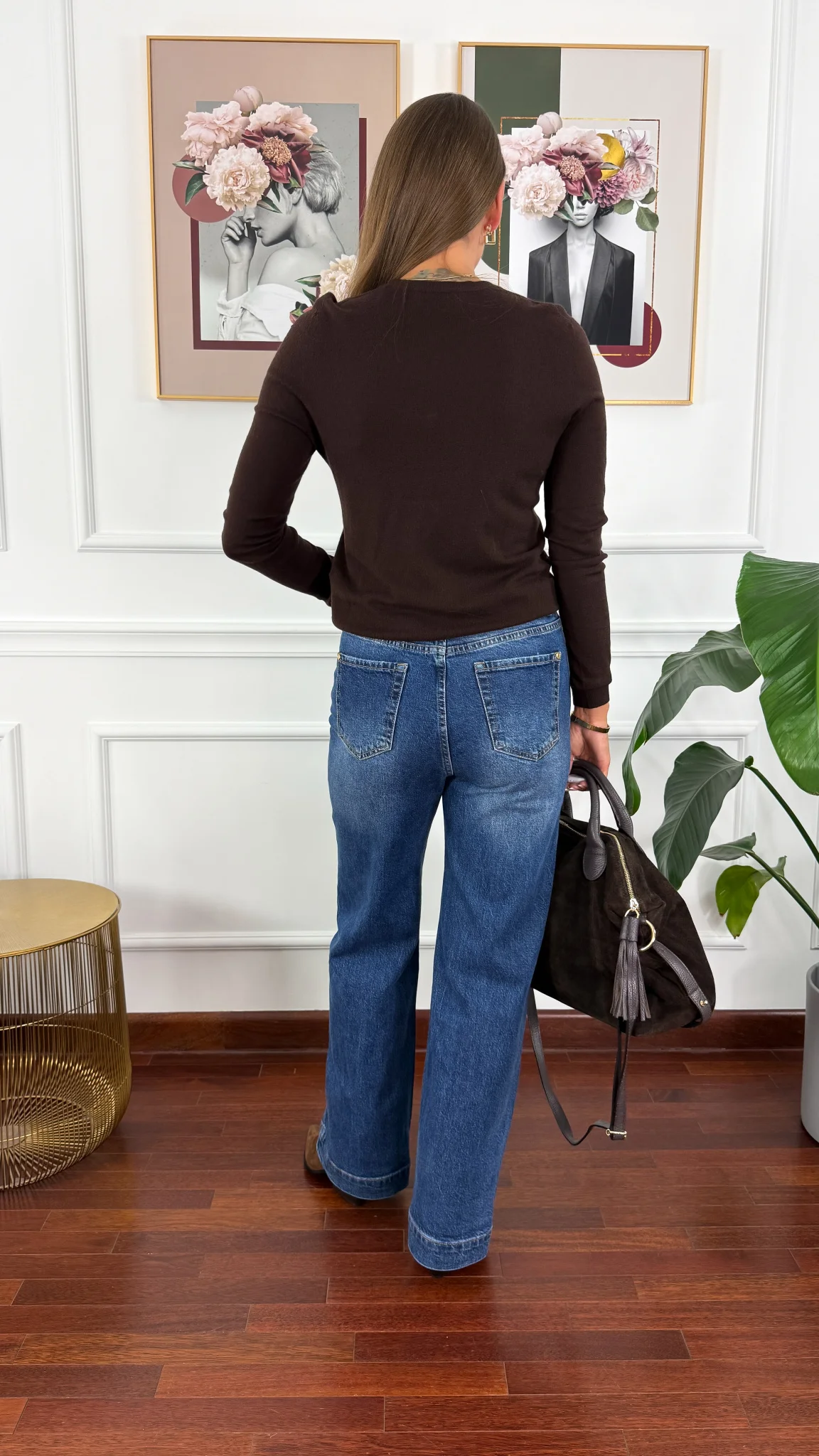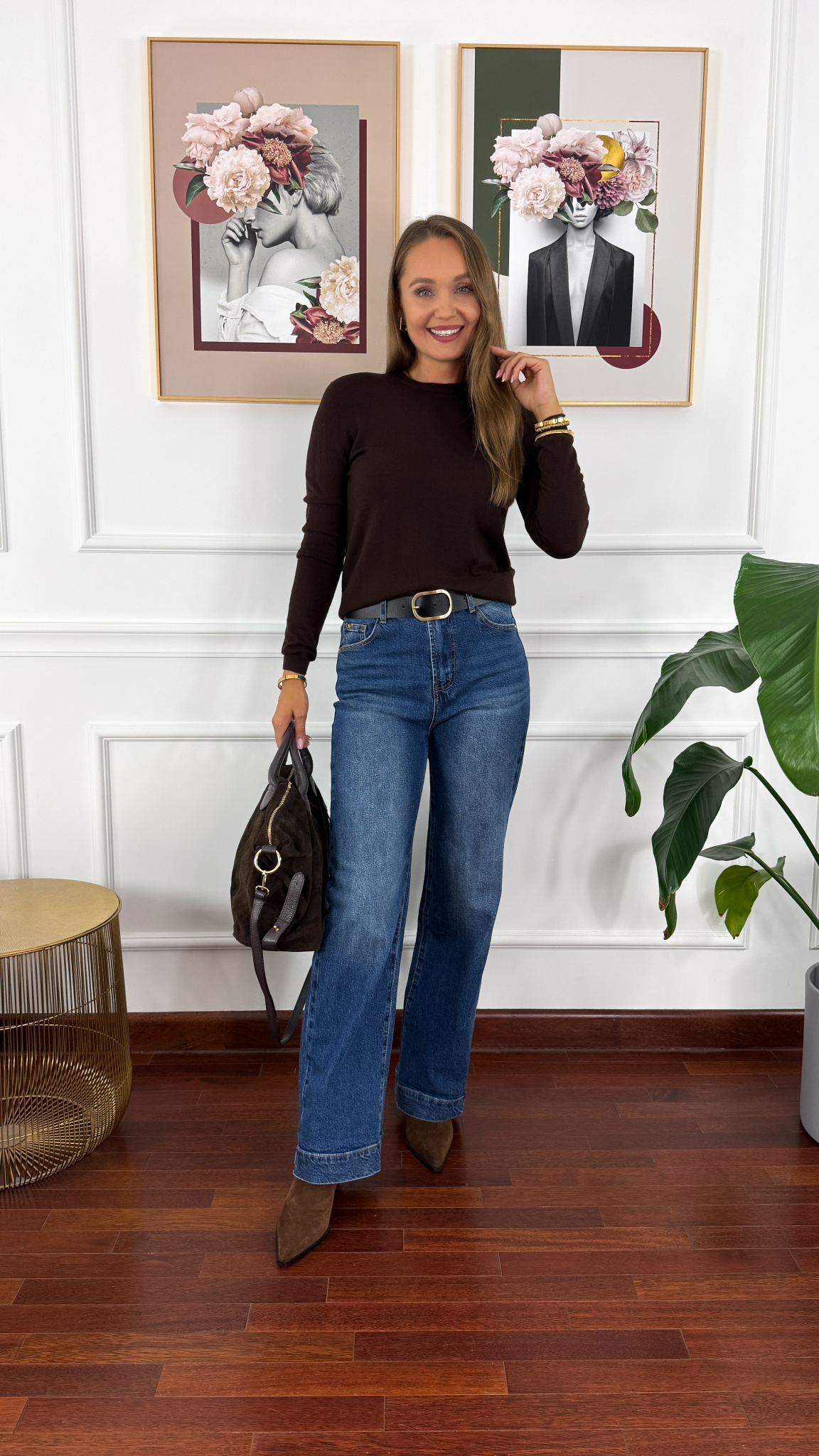 Model sprawdzi się na sylwetkę od S do L. Sweter na długi rękaw z okrągłym dekoldem.