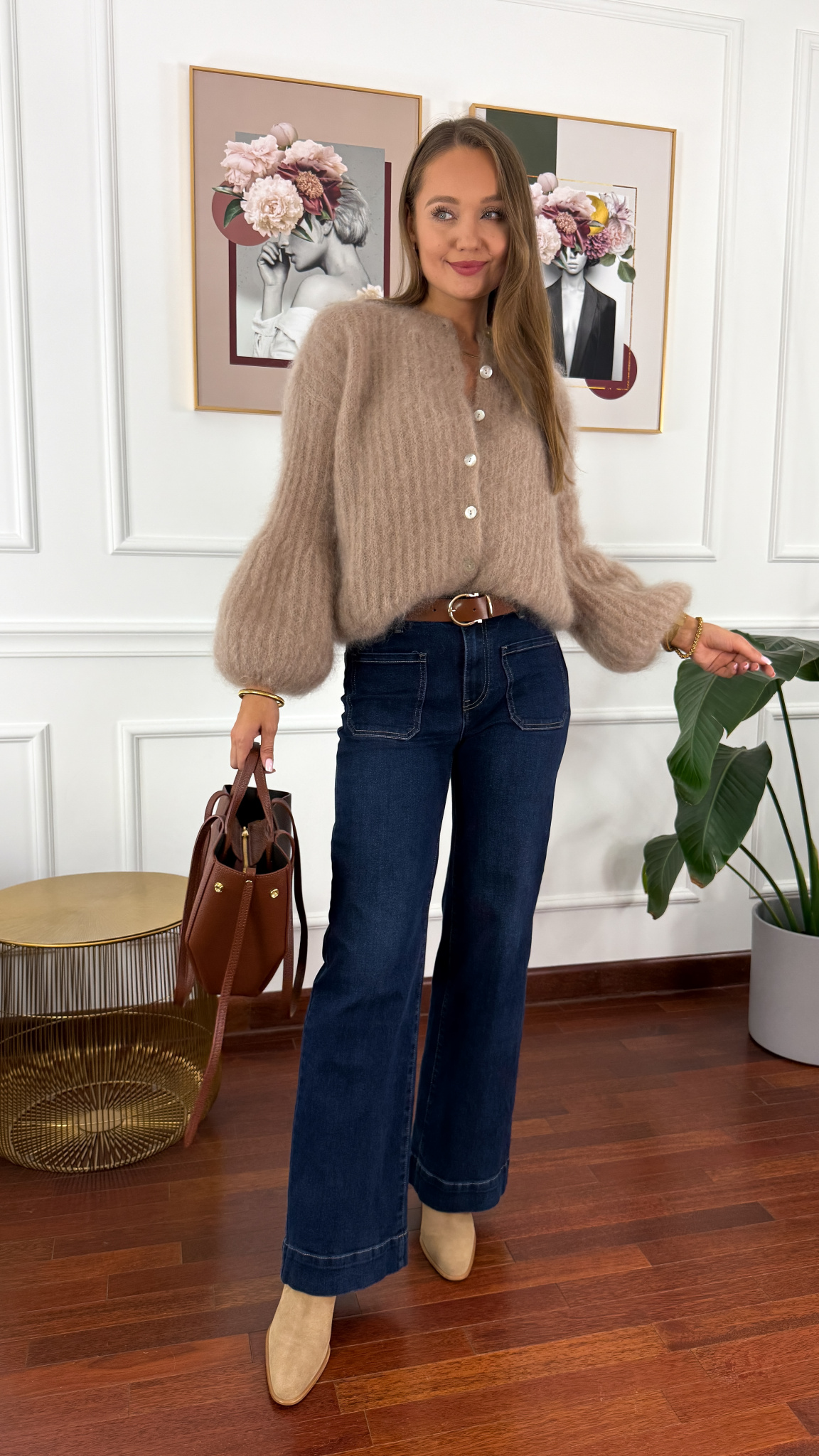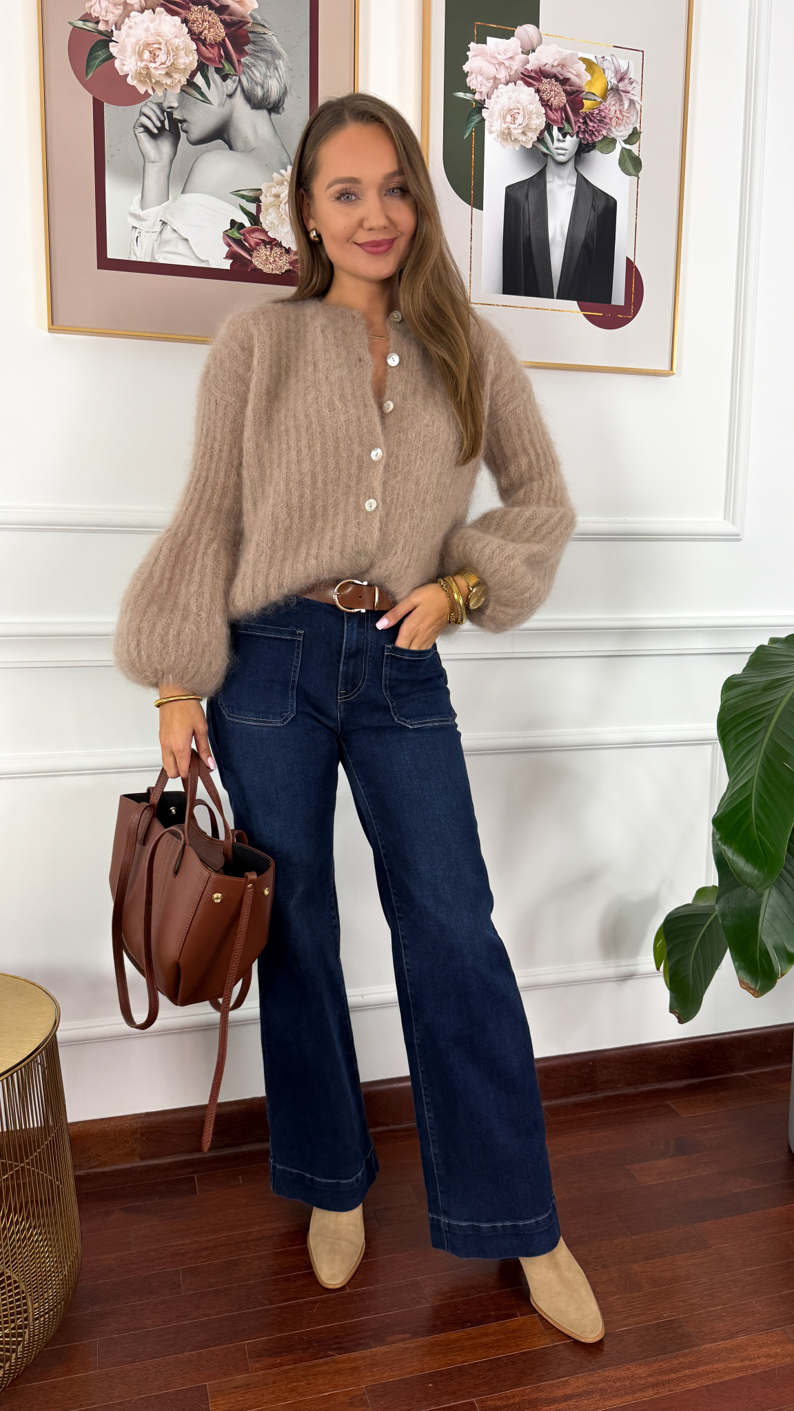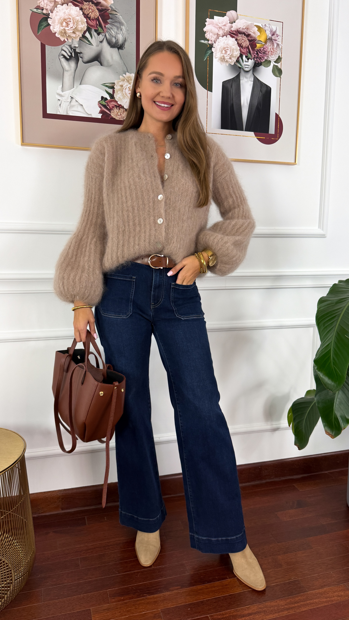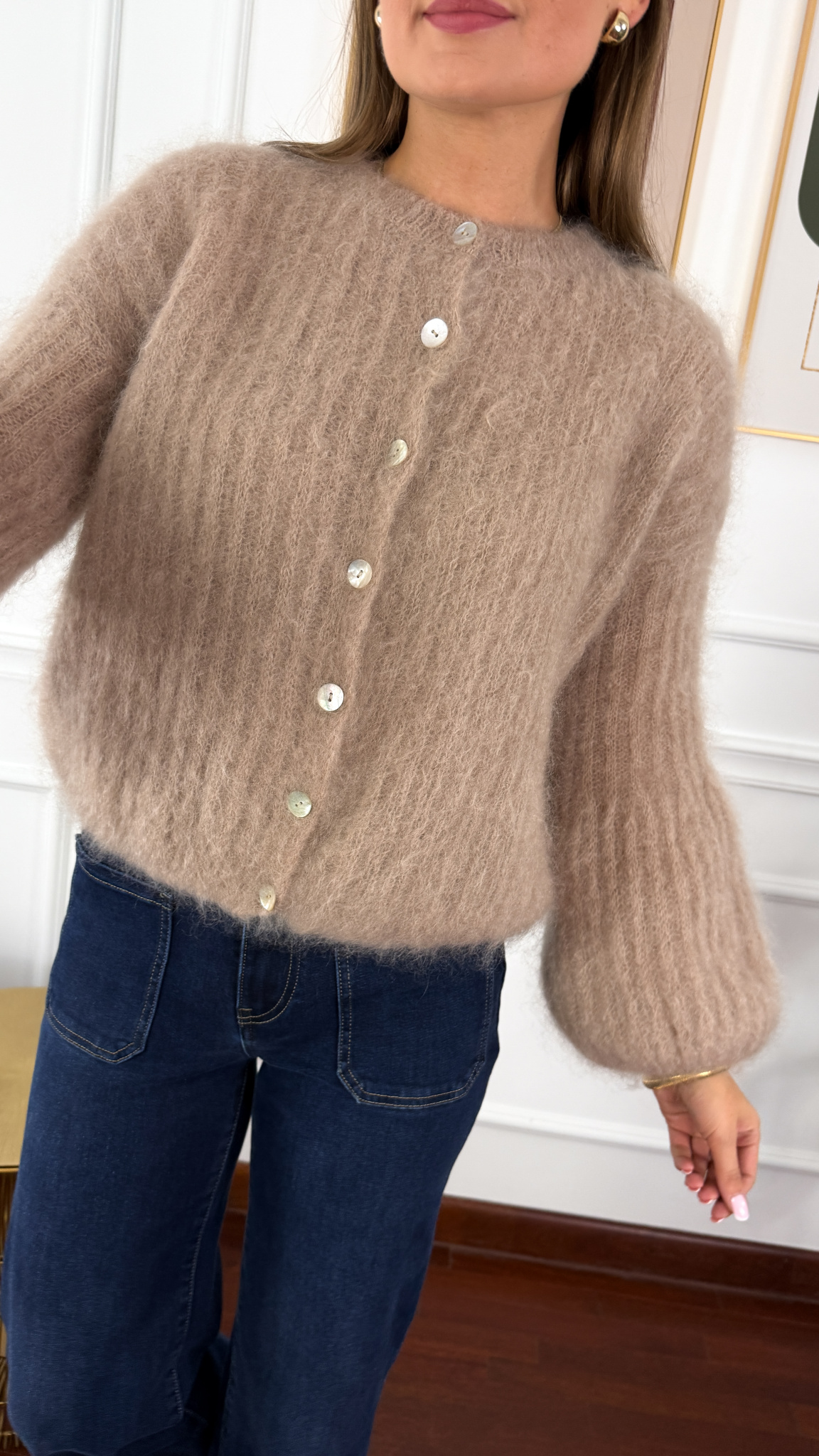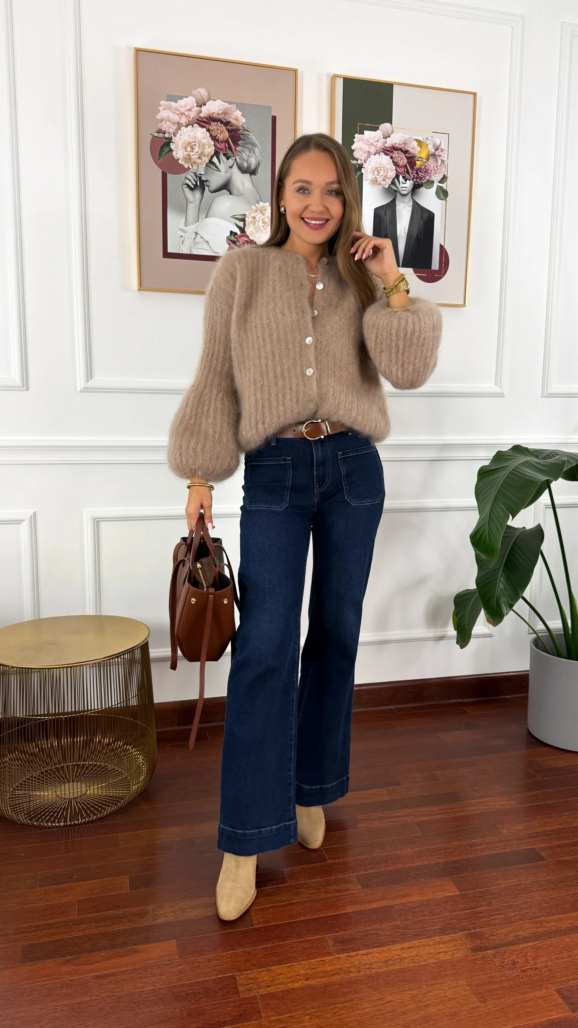 Model sprawdzi się na sylwetkę od S do L. Moherowy kardigan z okrągłym dekoltem. Rękawy zakończone są a'la dzwonkiem. Przez naturalny skład, sweter jest bardzo ciepły, a jednocześnie lekki. Jakość premium.