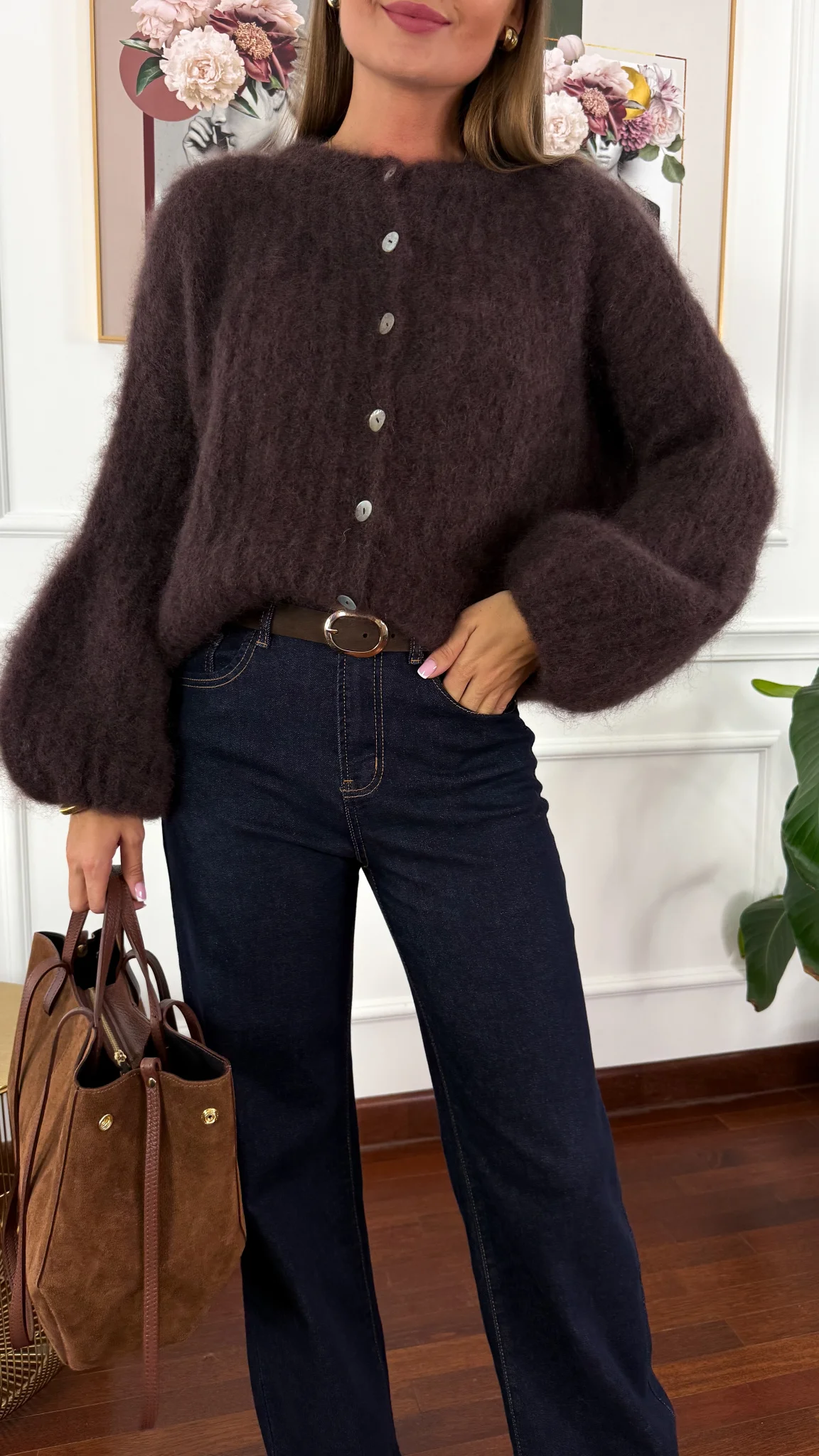 Moherowy kardigan Armina czekoladowy